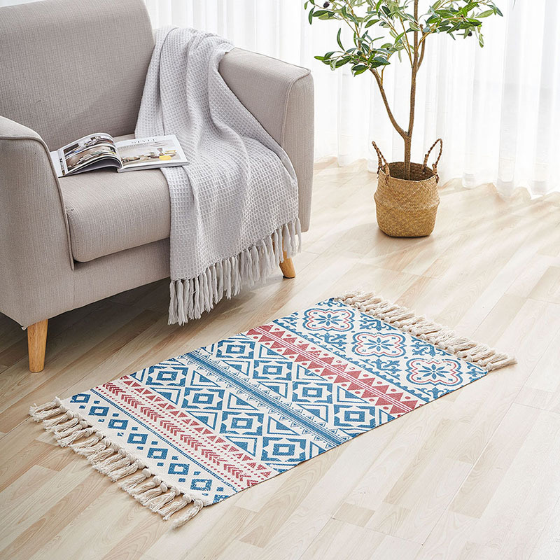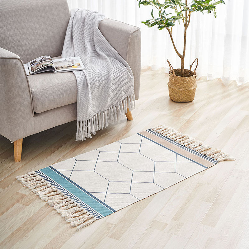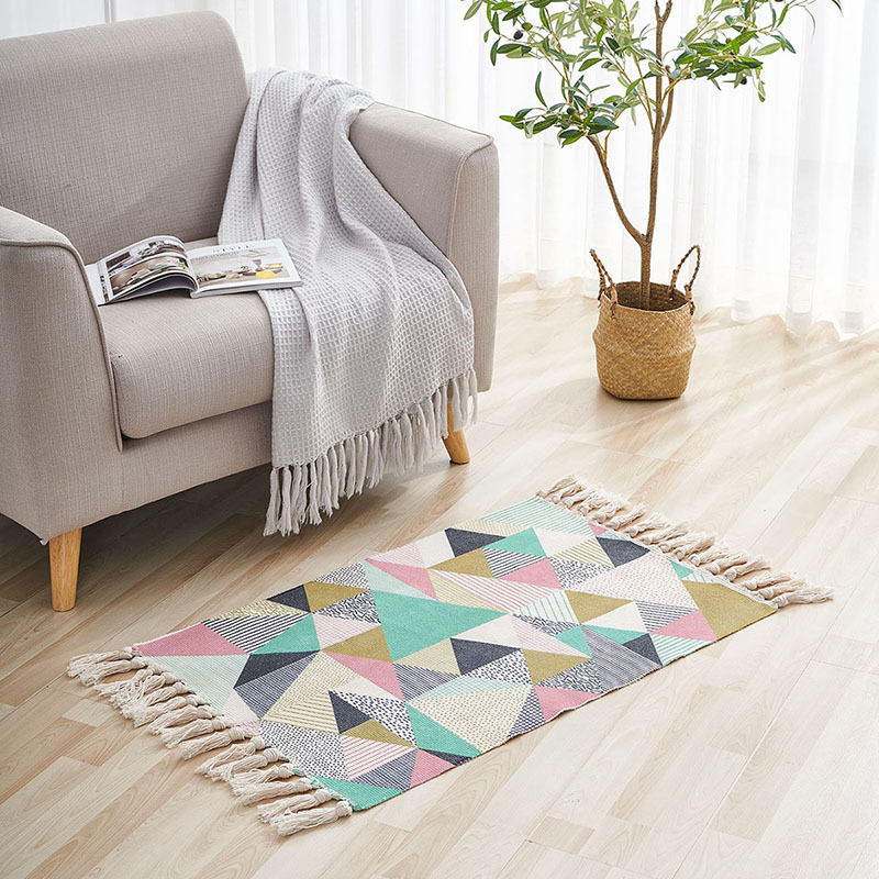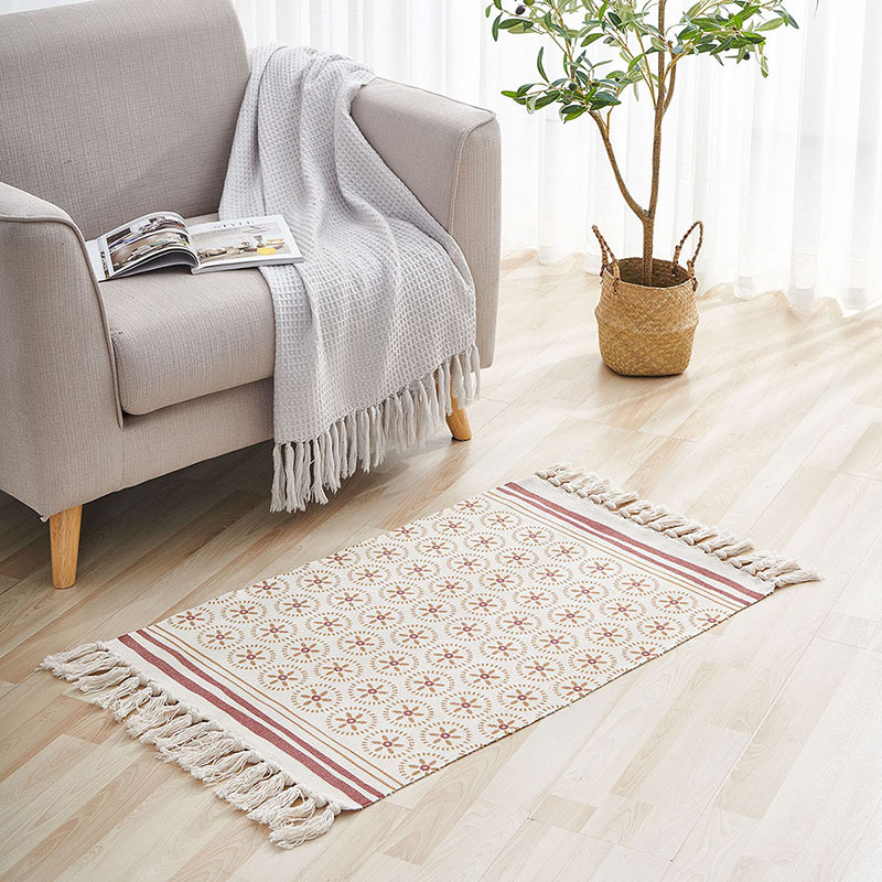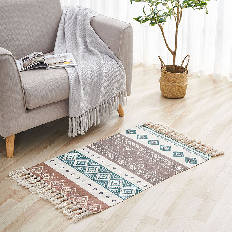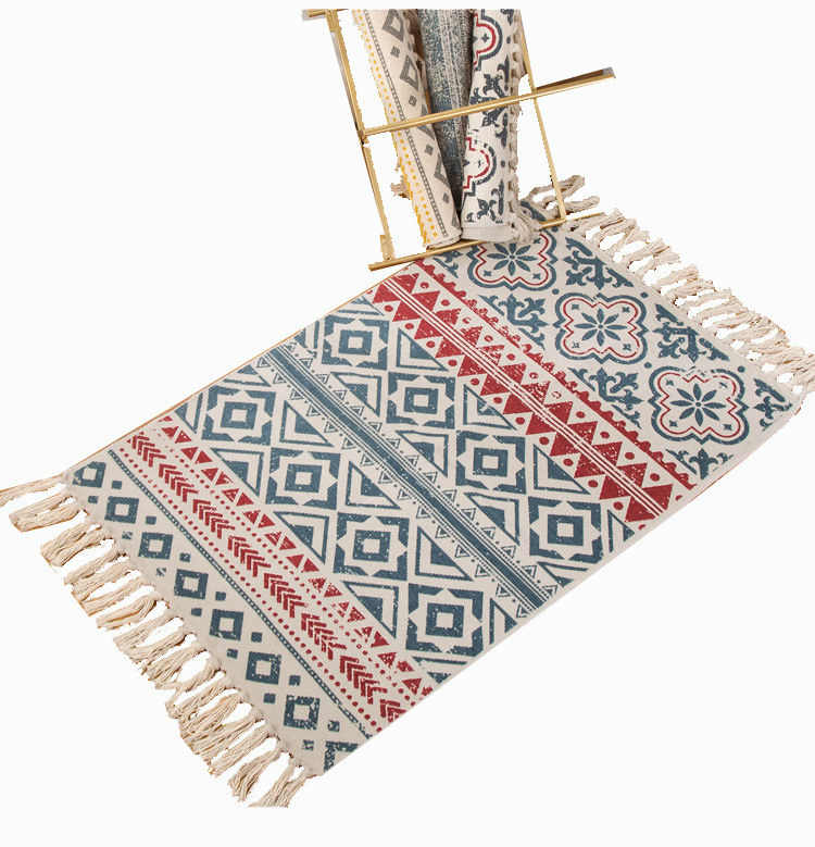 北欧地垫棉线编织家用卧室床边地垫地毯复古民宿地垫厨房脚垫