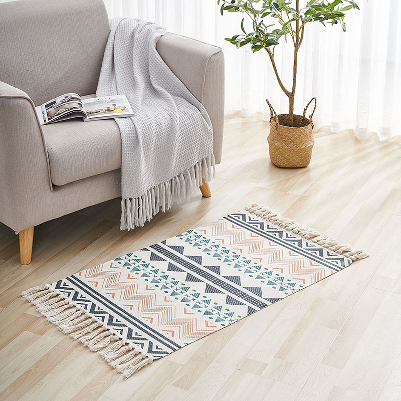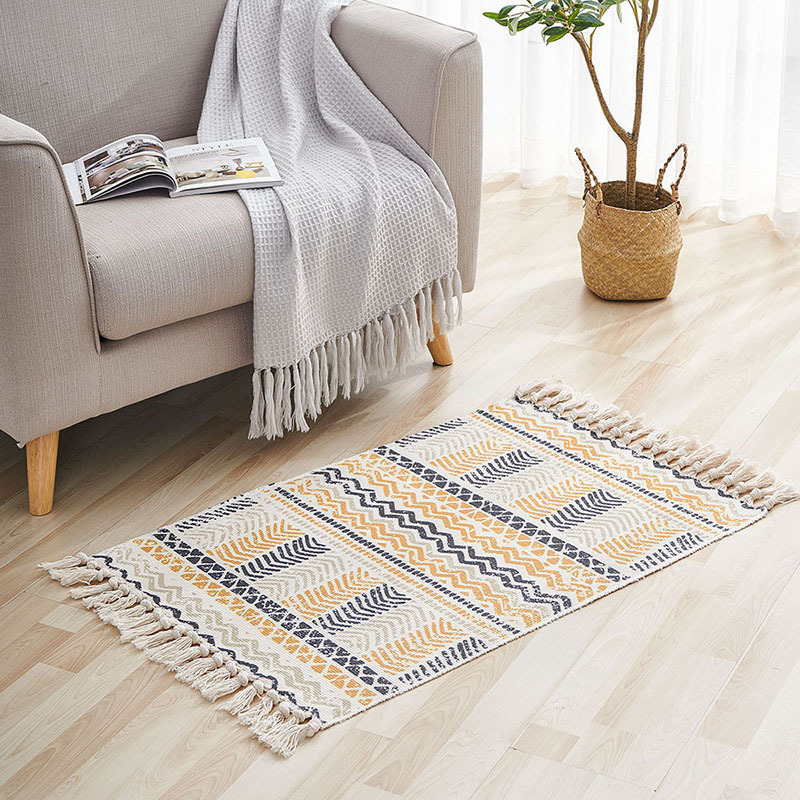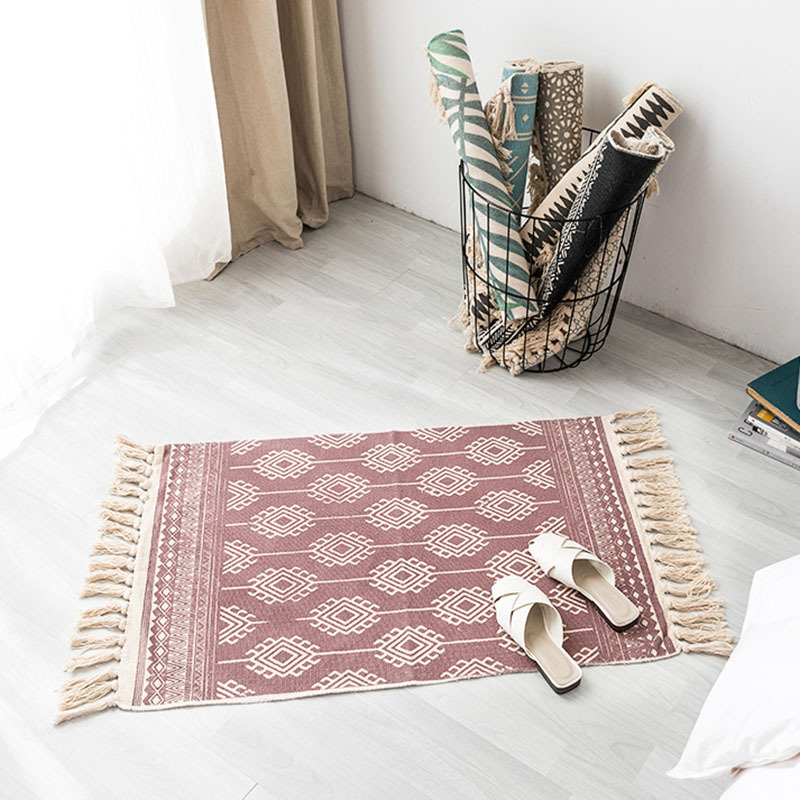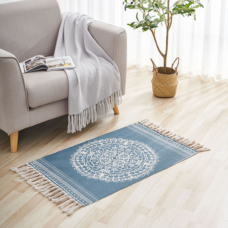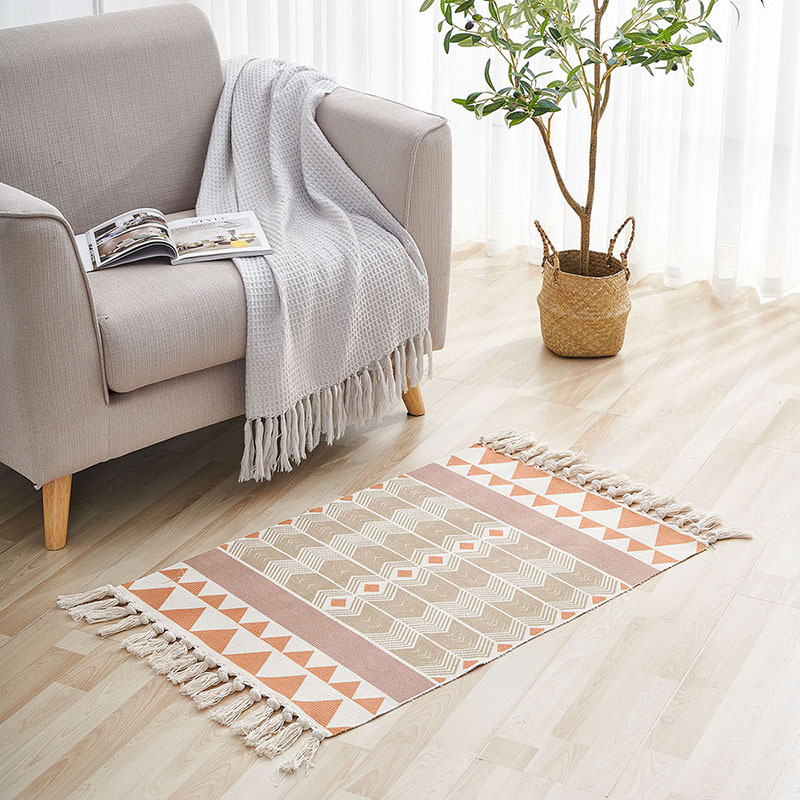 北欧地垫棉线编织家用卧室床边地垫地毯复古民宿地垫厨房脚垫