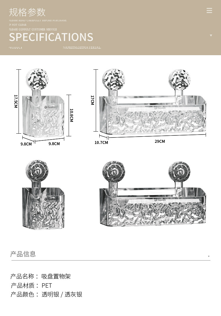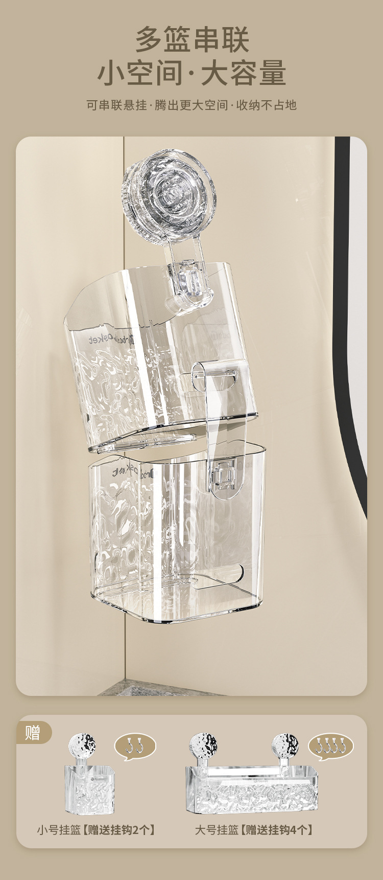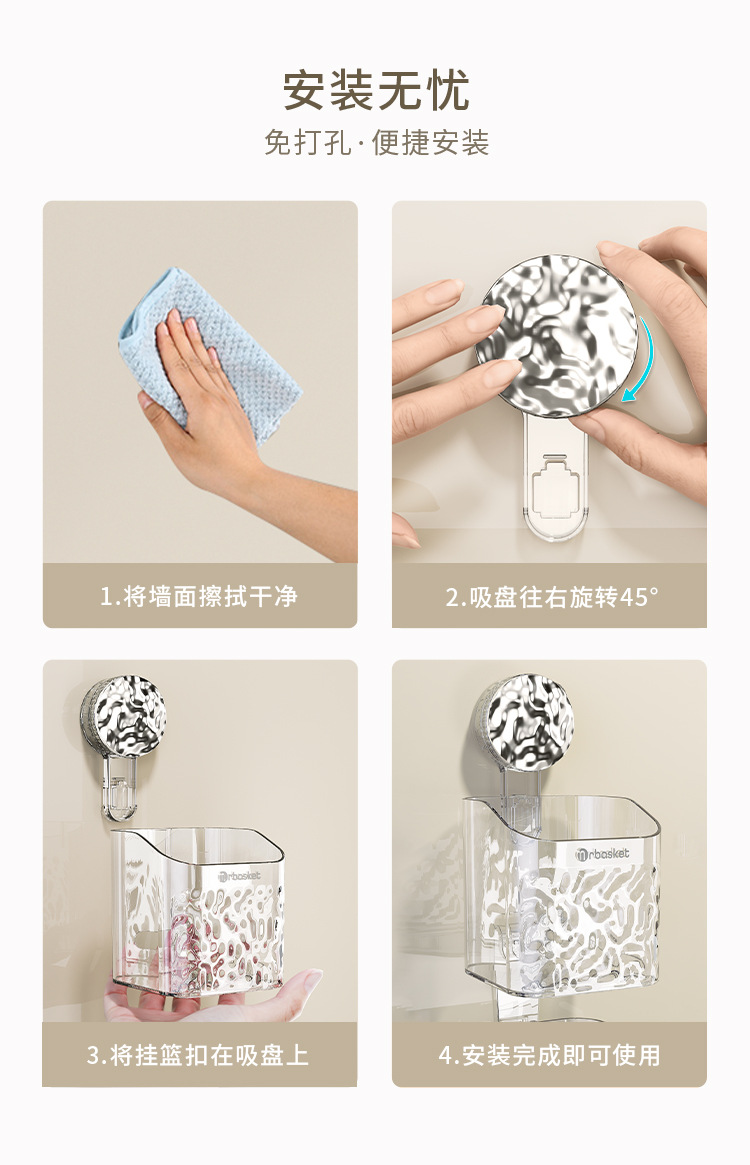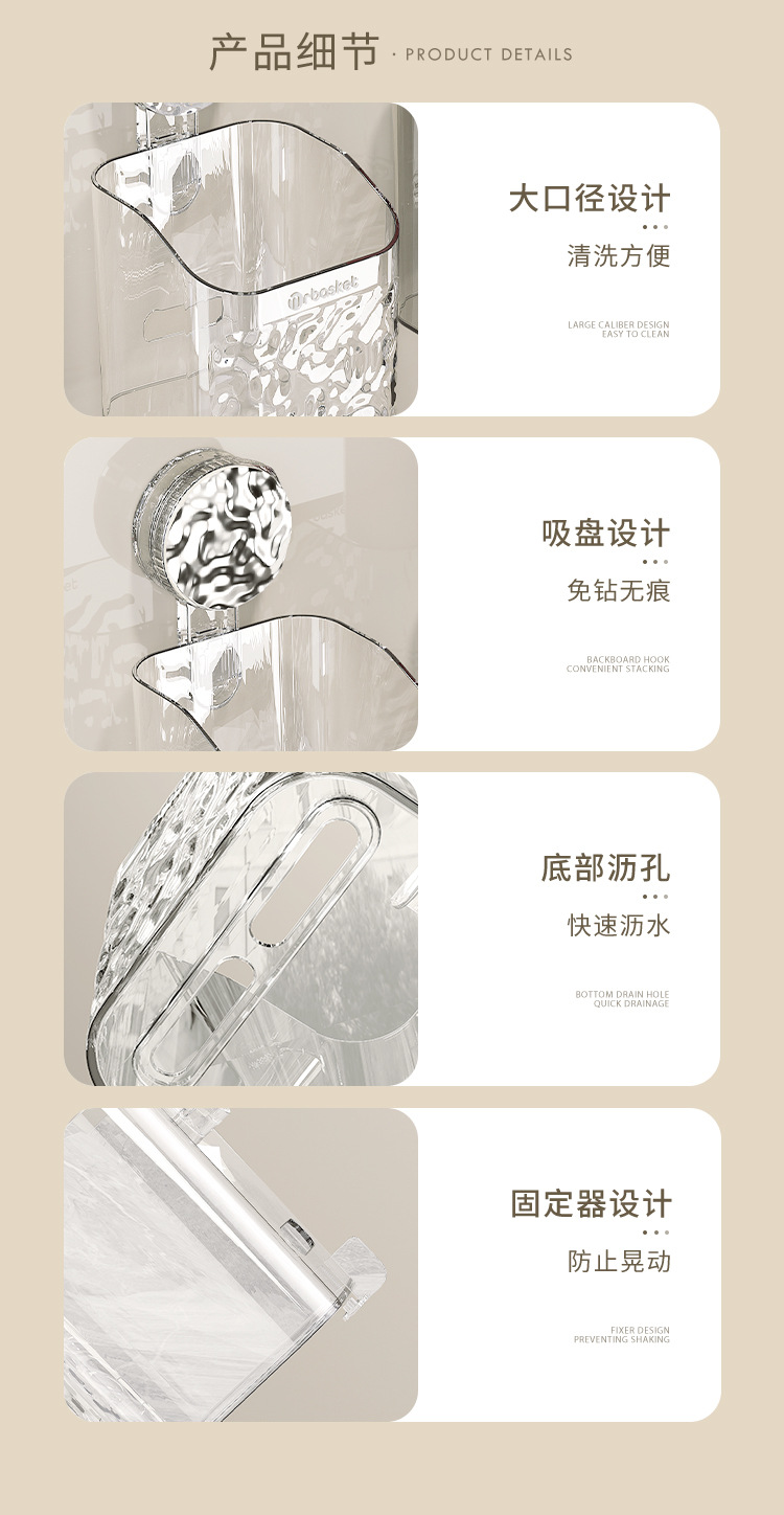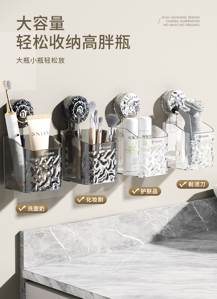 吸盘置物架卫生间浴室架子免打孔洗手间洗漱台挂篮壁挂墙上收纳架