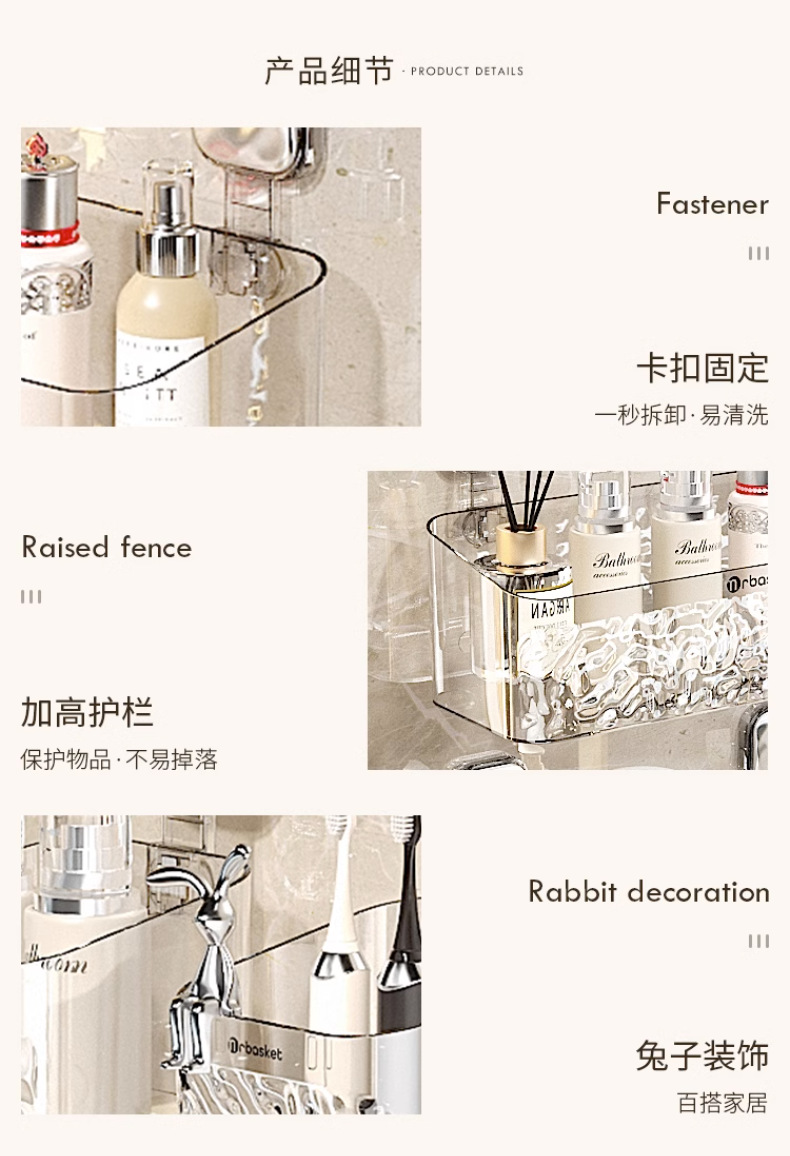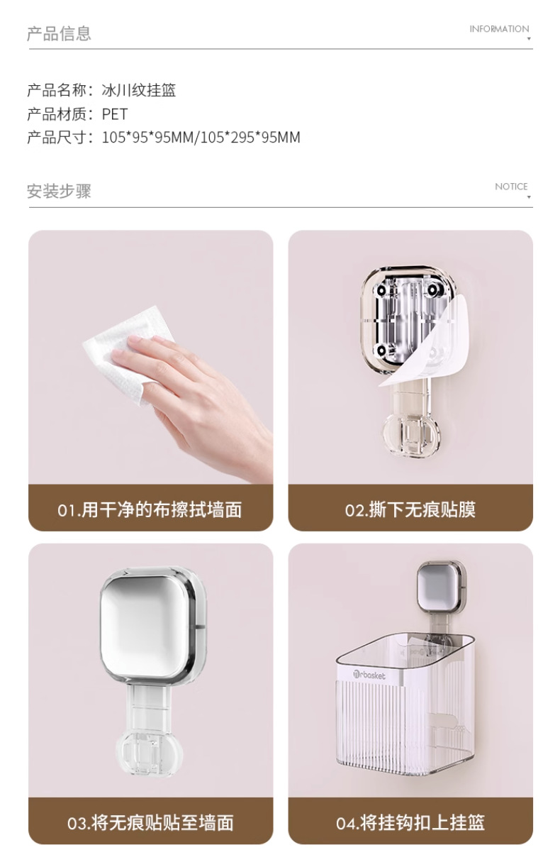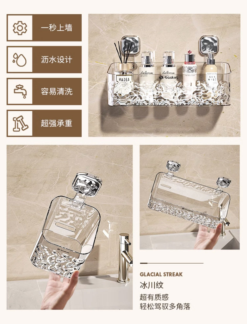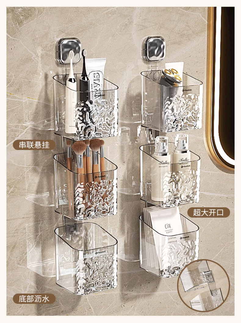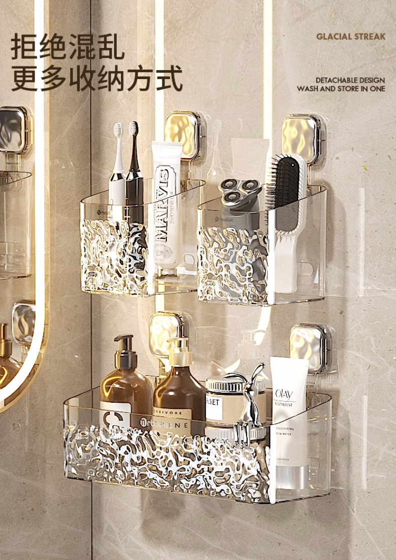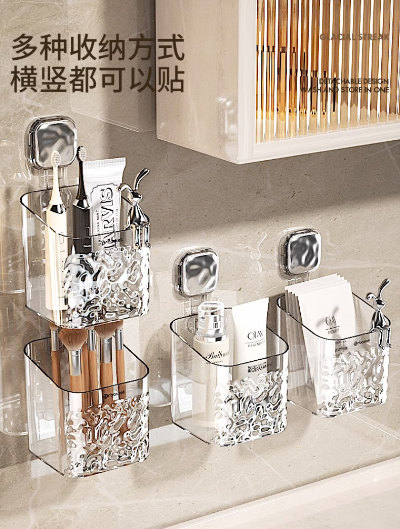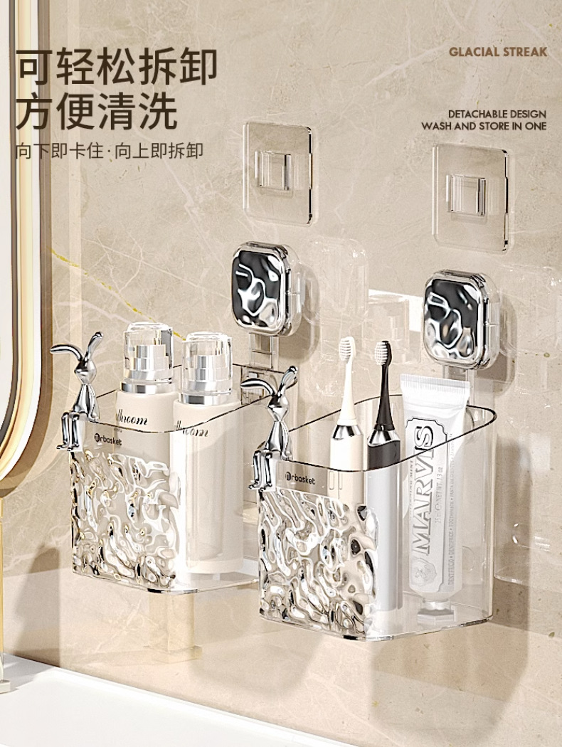 冰川纹卫生间梳子置物架免打孔浴室挂篮壁挂厕所洗漱台牙刷收纳筒