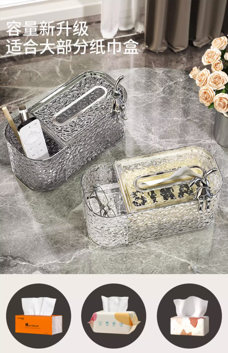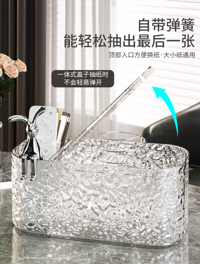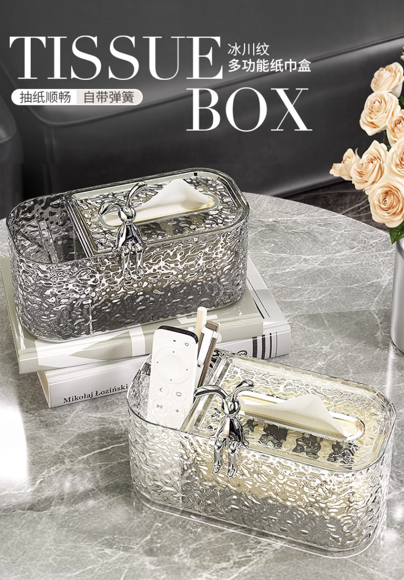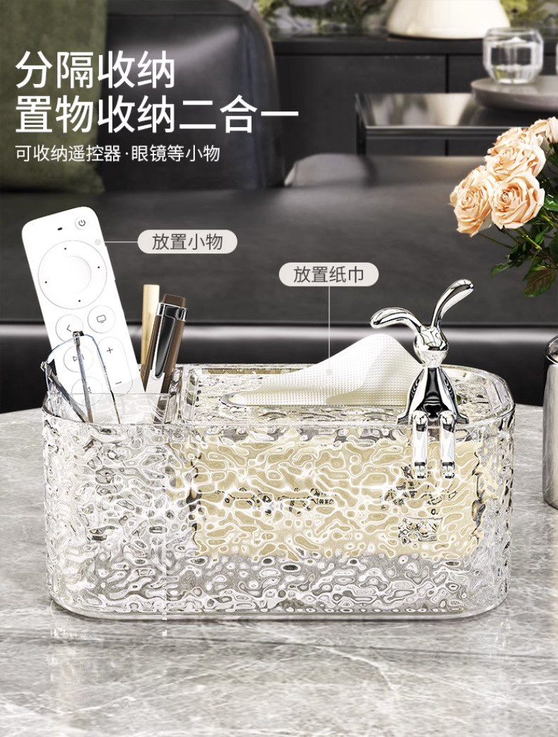 冰川纹纸巾盒客厅高档轻奢纸抽盒茶几多功能遥控器收纳盒抽纸盒子