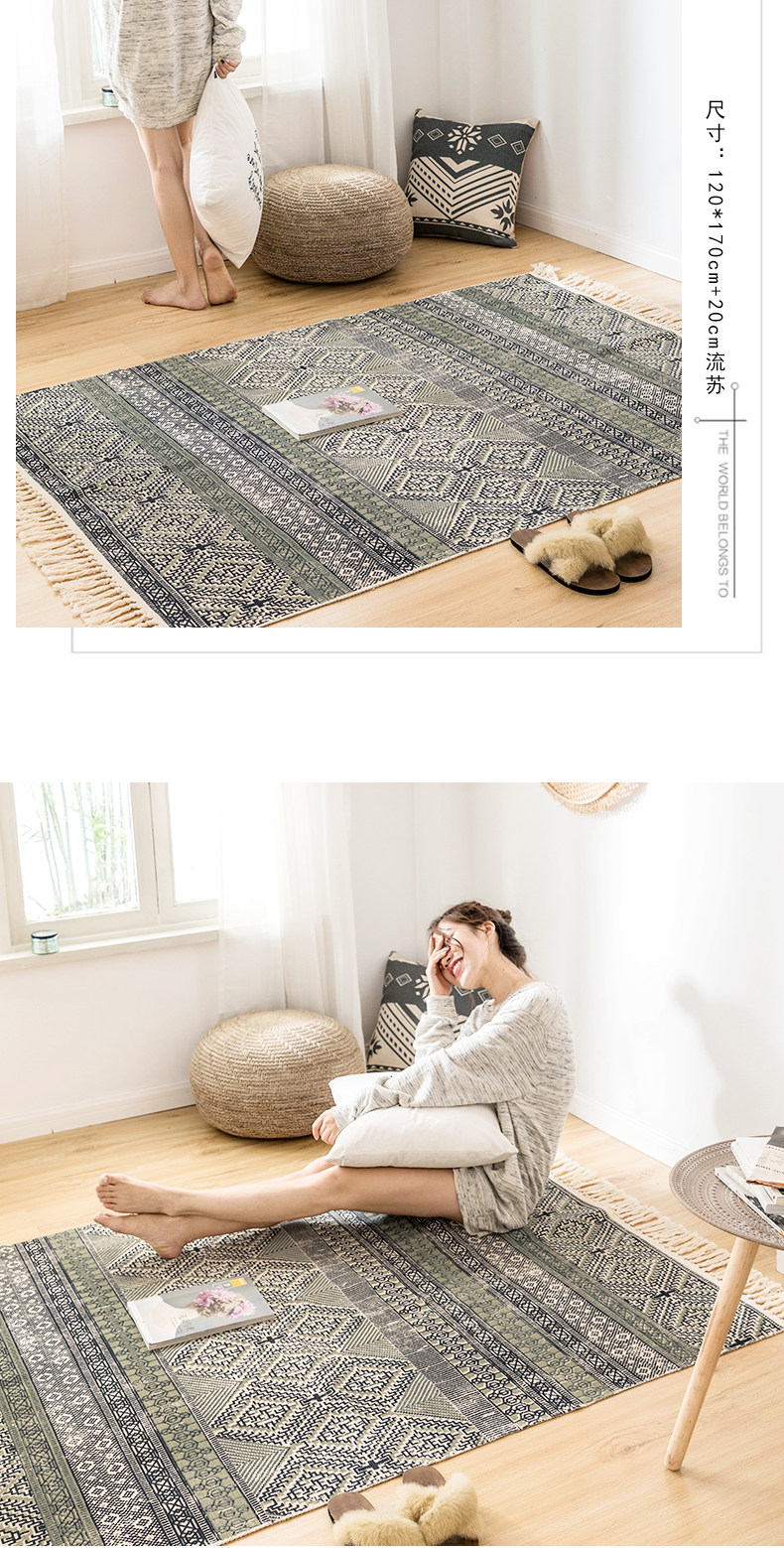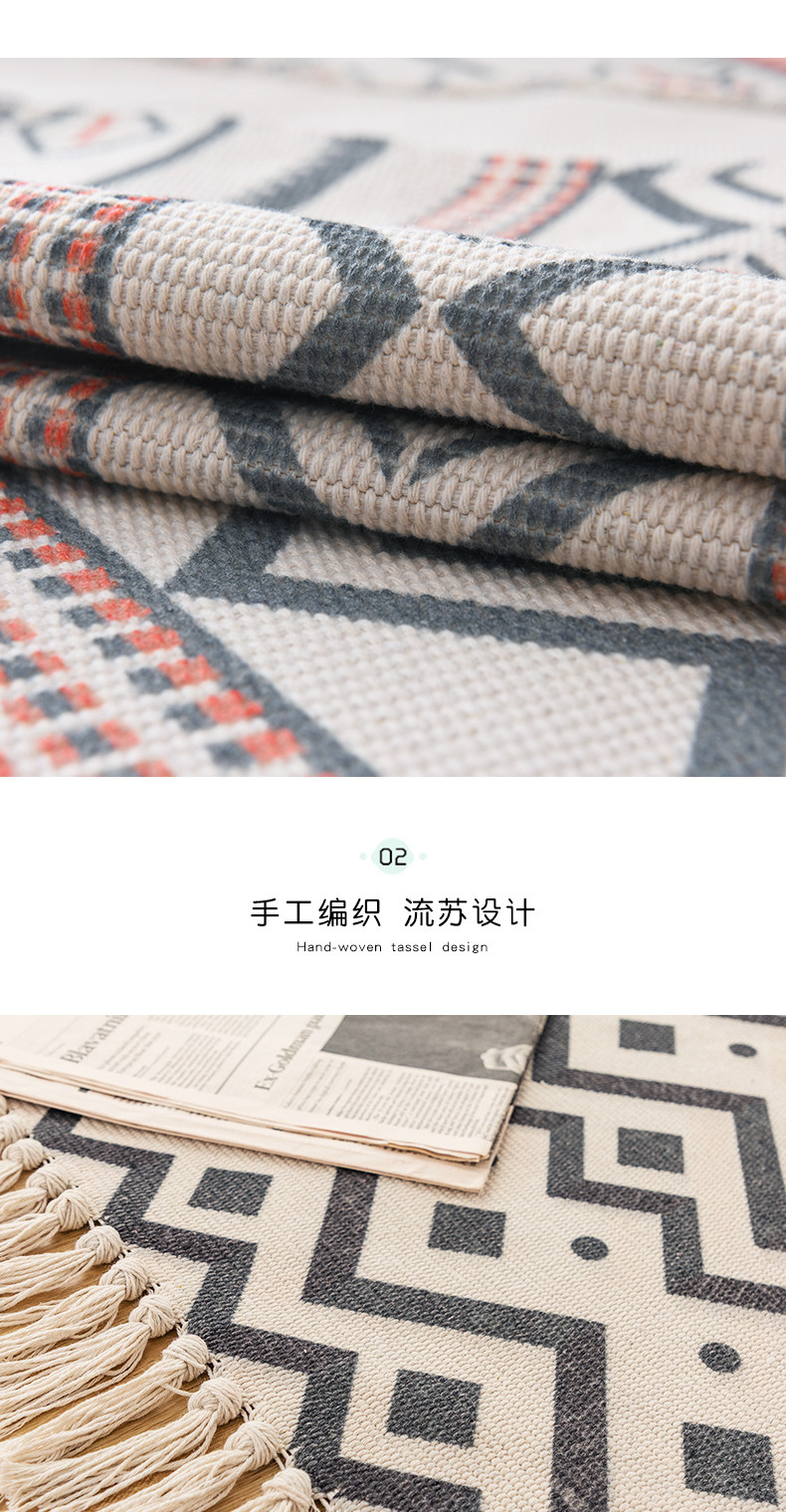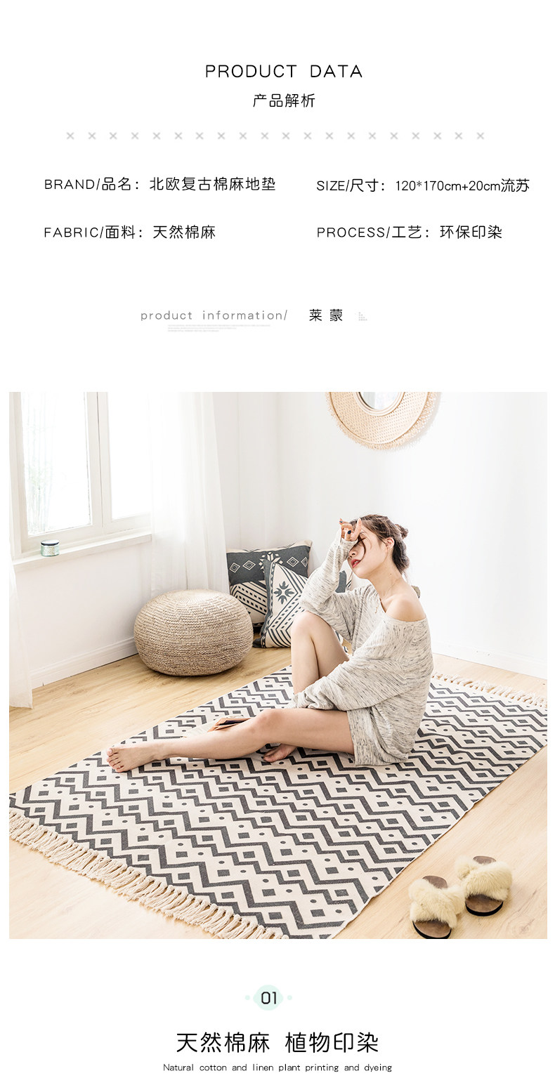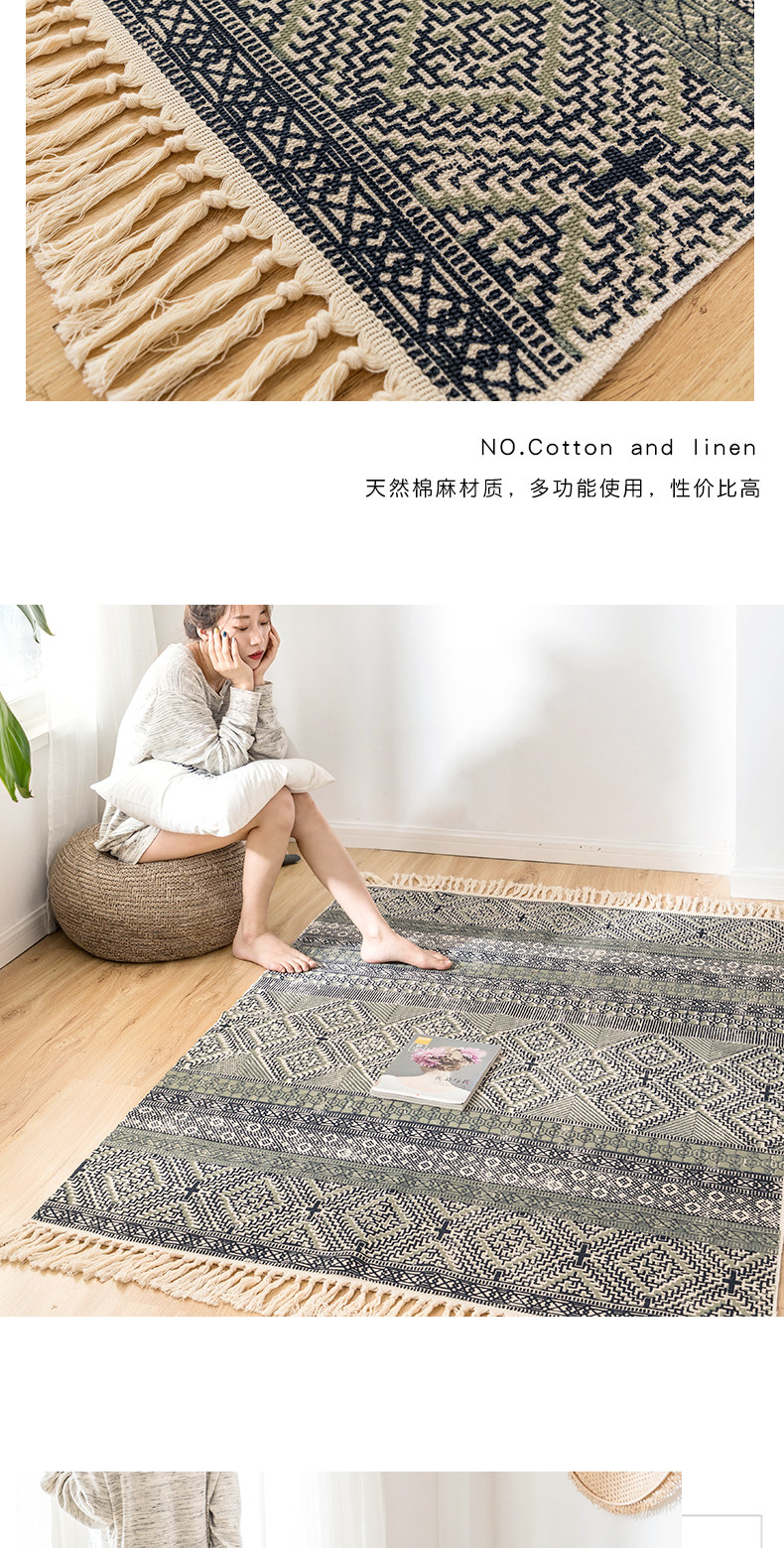 复古棉麻流苏地垫卧室床边脚垫多功能客厅沙发茶几地垫 可机洗