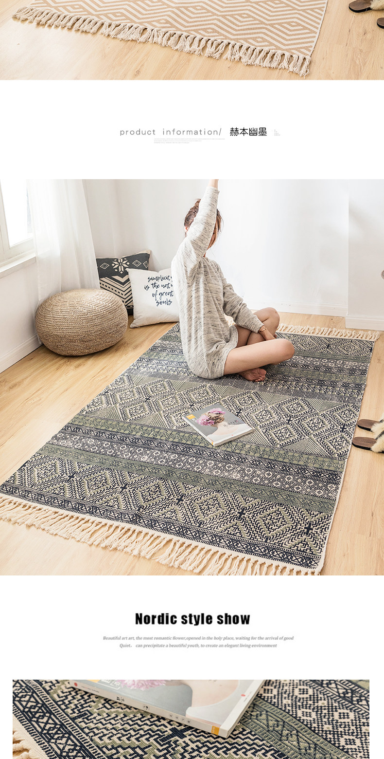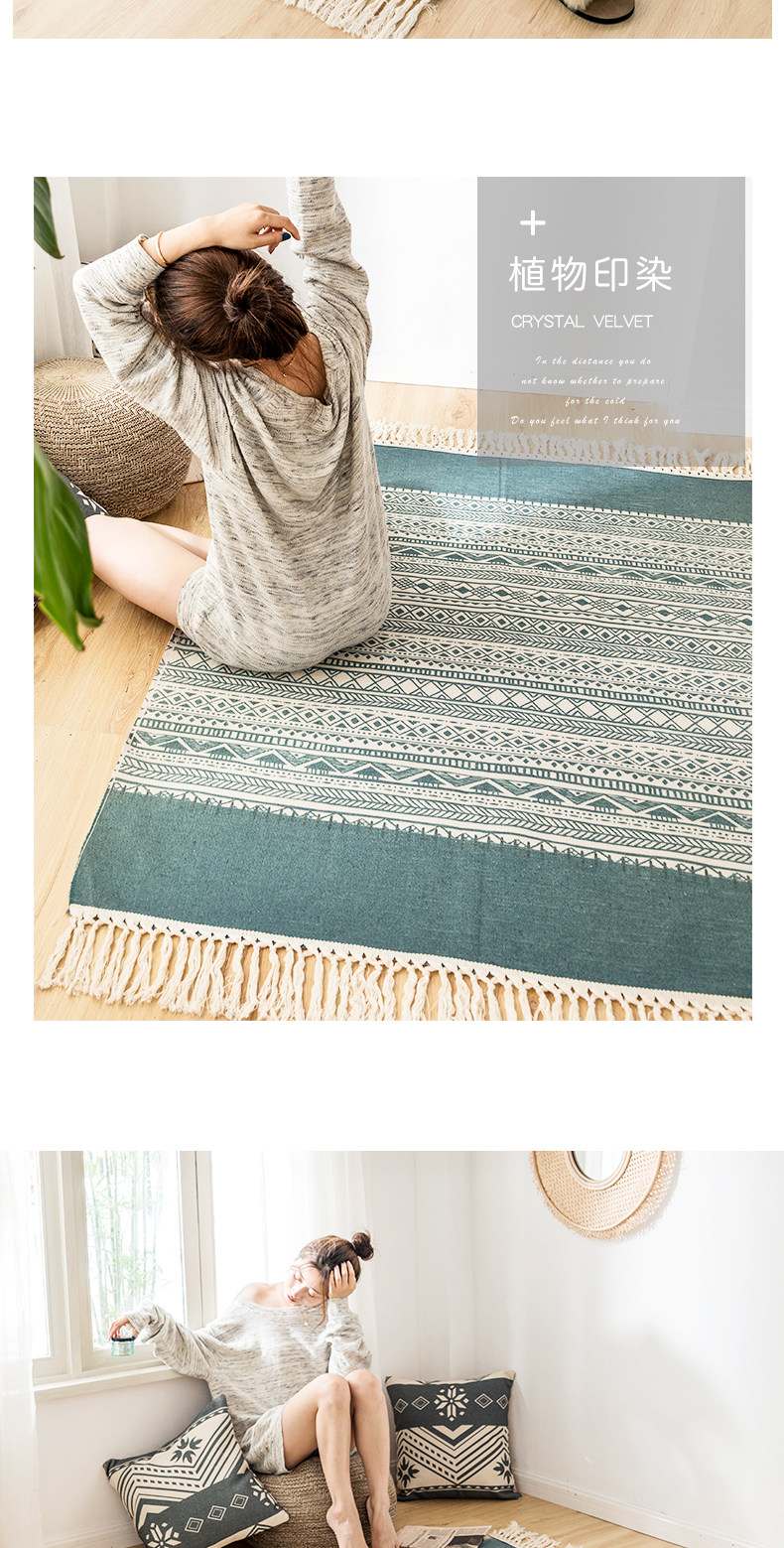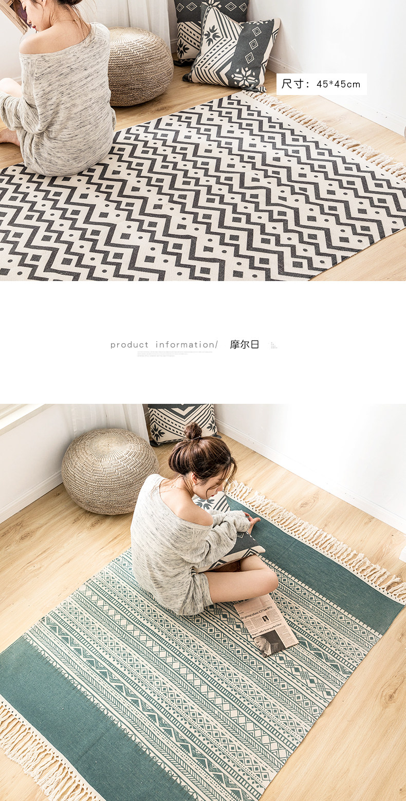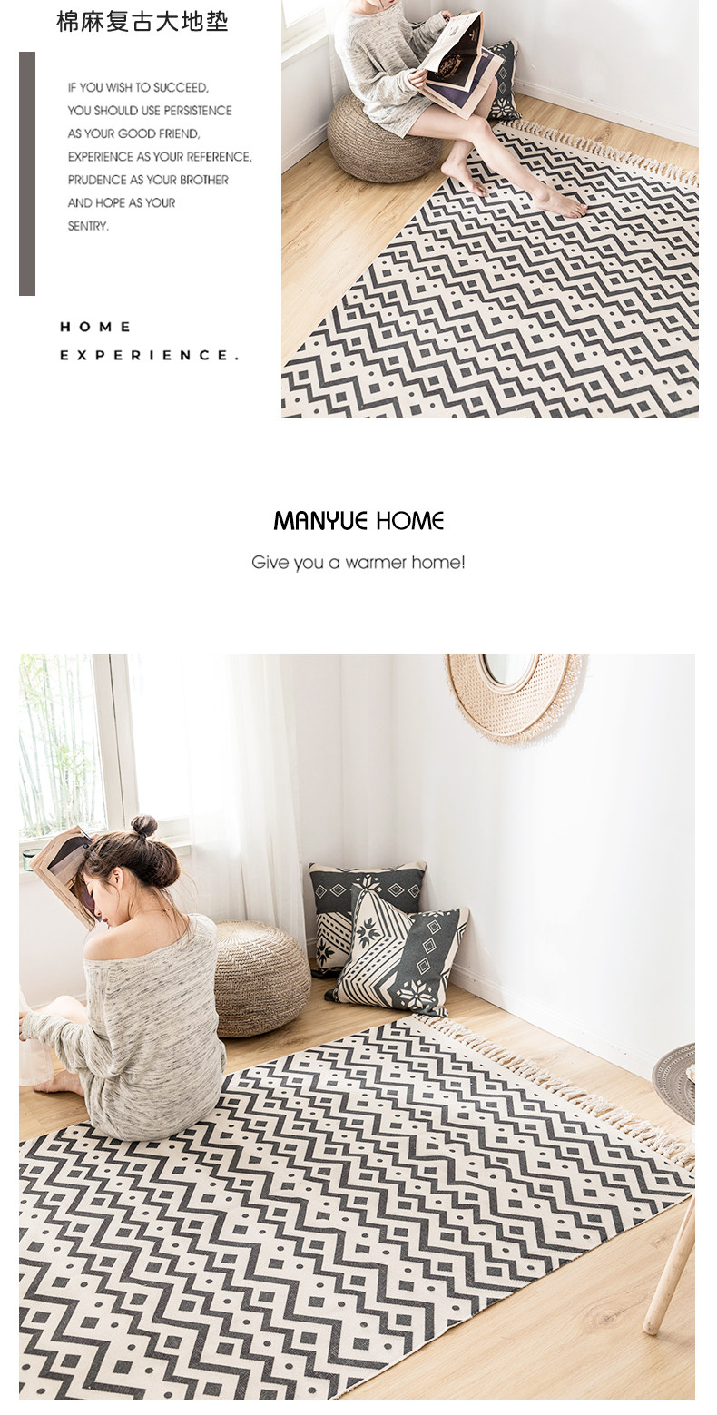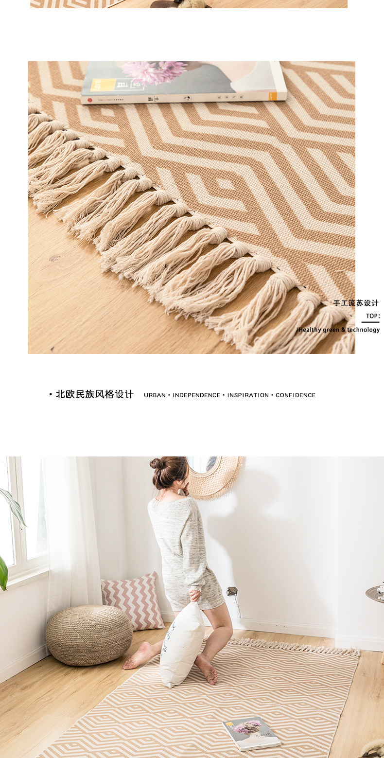 复古棉麻流苏地垫卧室床边脚垫多功能客厅沙发茶几地垫 可机洗