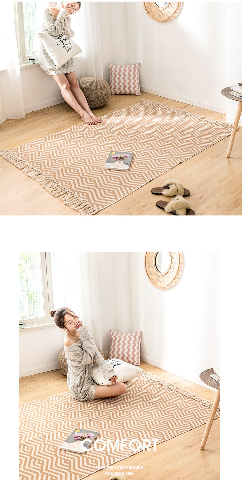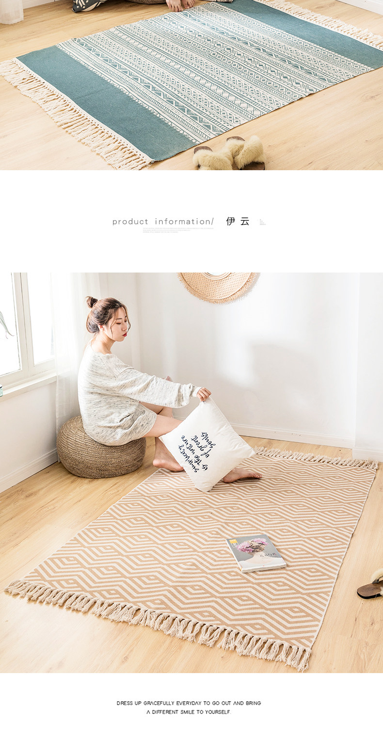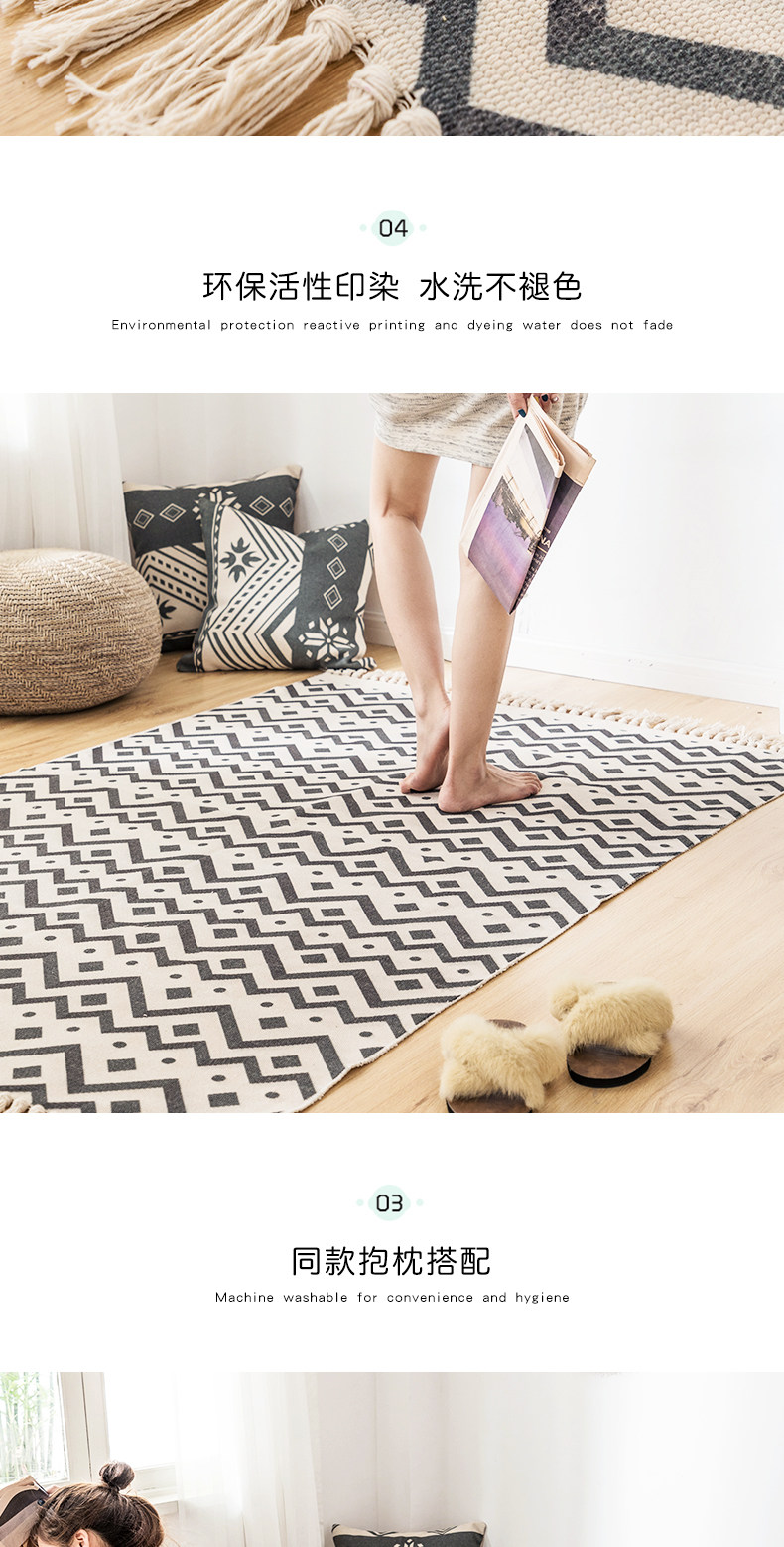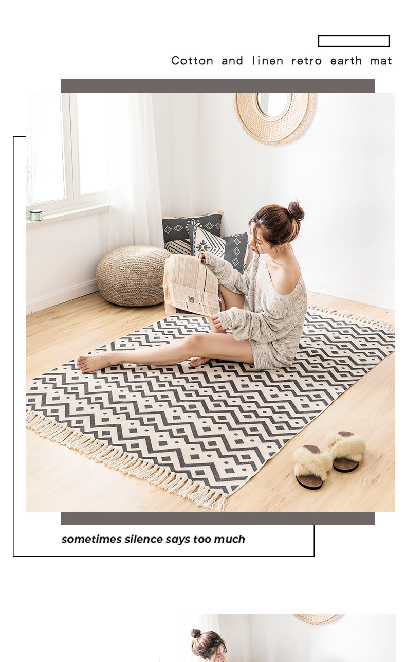 复古棉麻流苏地垫卧室床边脚垫多功能客厅沙发茶几地垫 可机洗