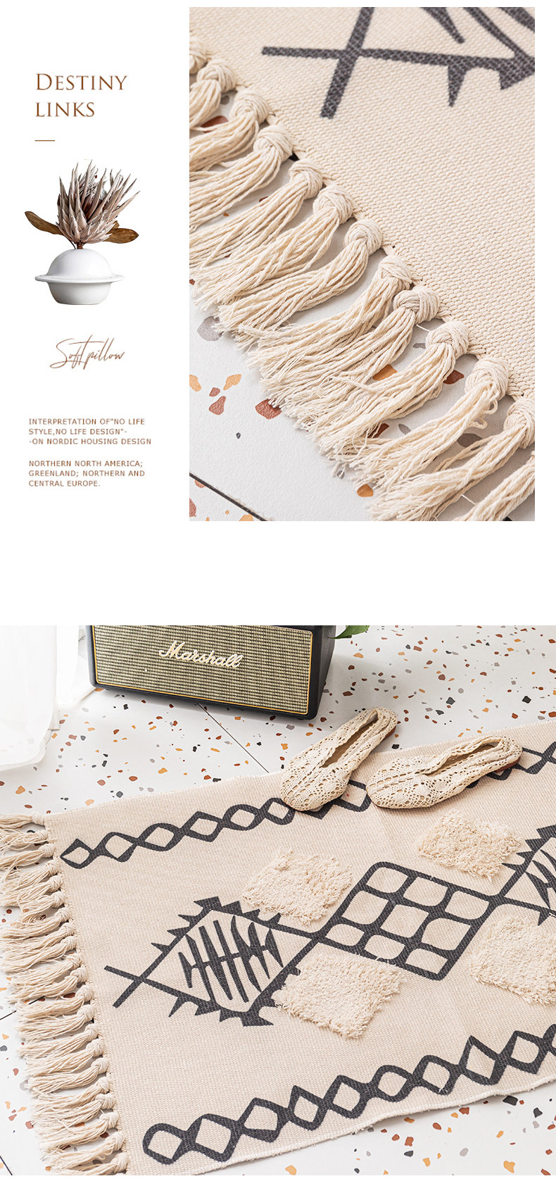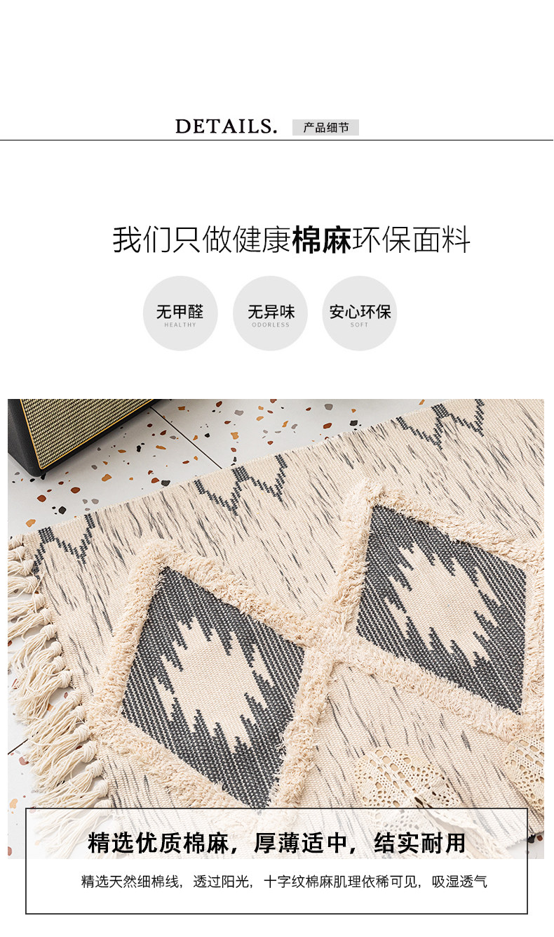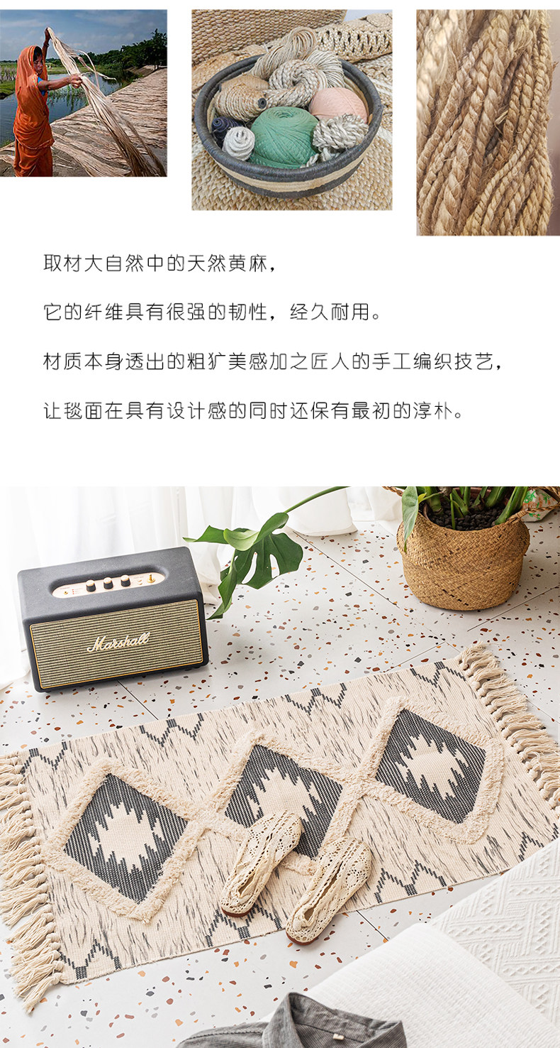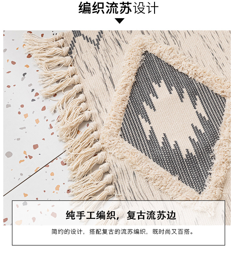 北欧名族风棉麻流苏地垫卧室床边脚垫多功能客厅沙发地毯可机洗