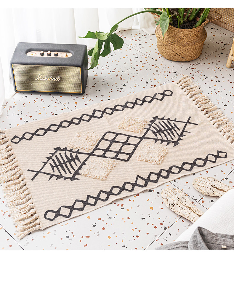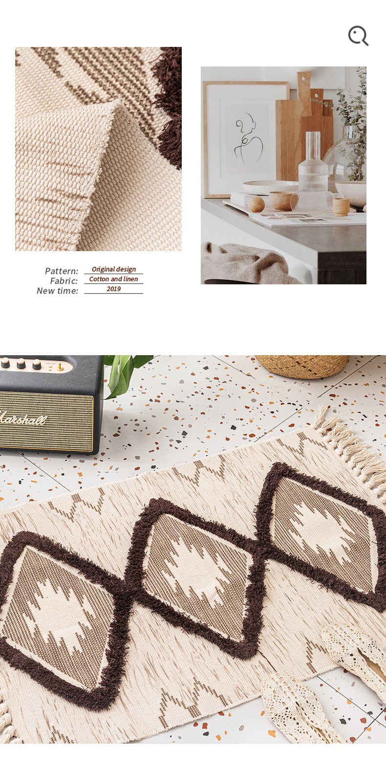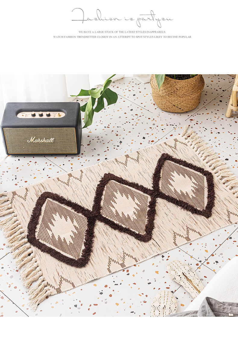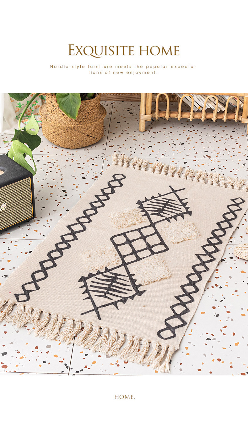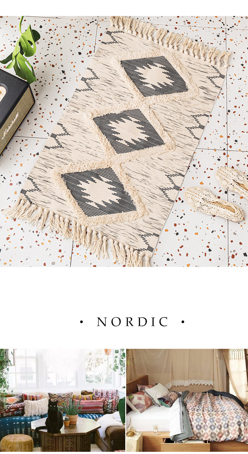 北欧名族风棉麻流苏地垫卧室床边脚垫多功能客厅沙发地毯可机洗