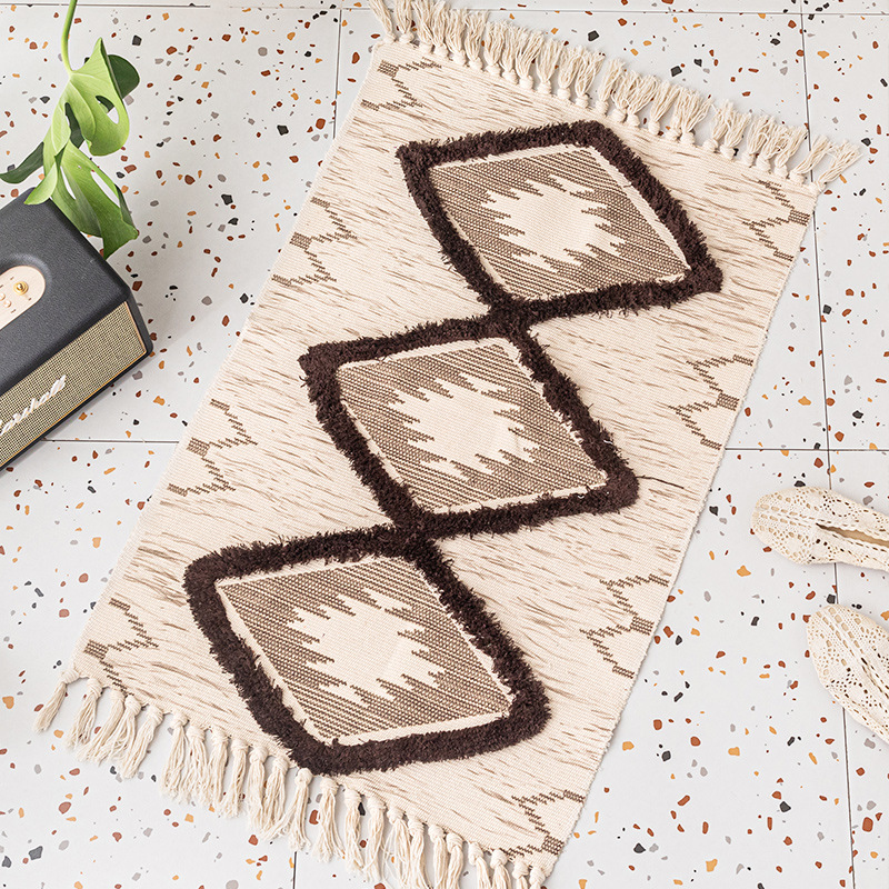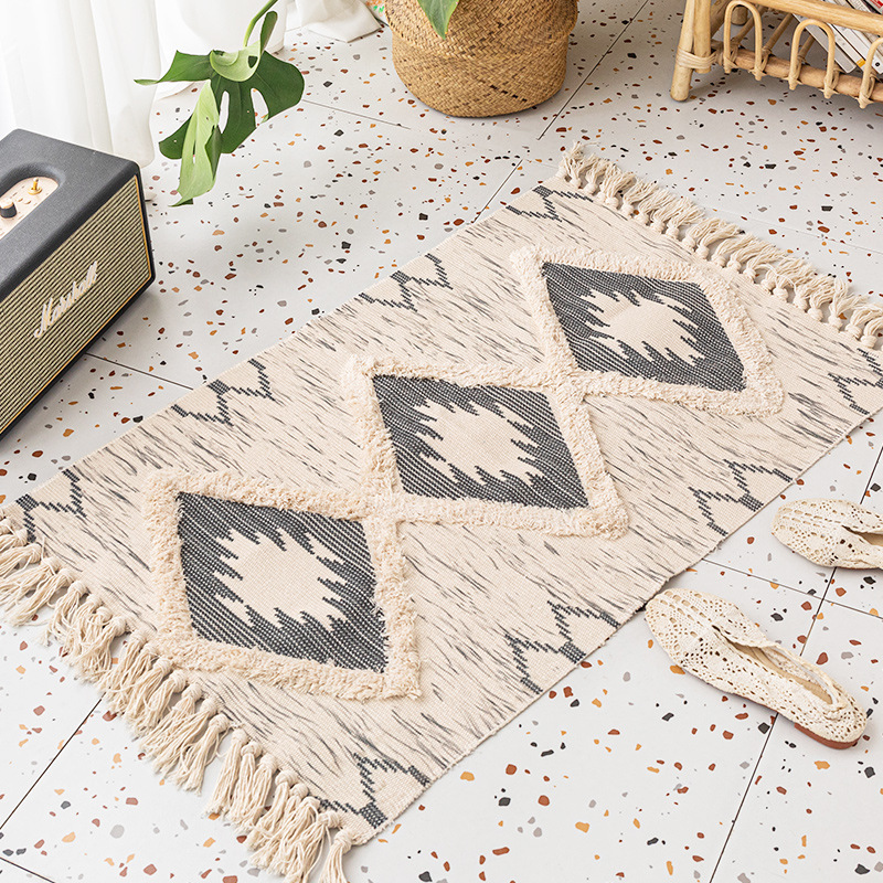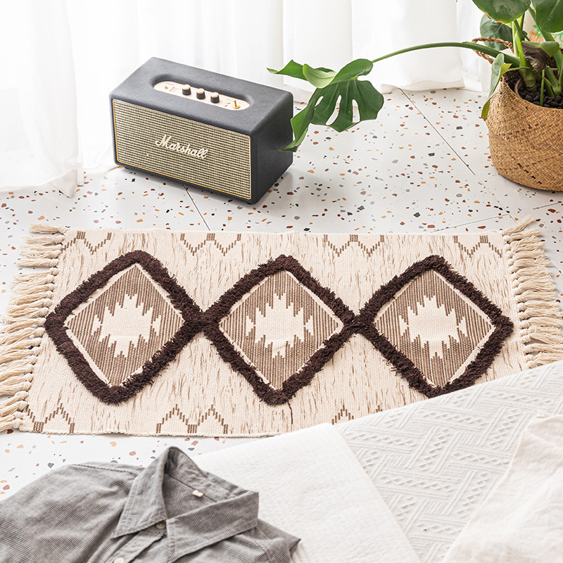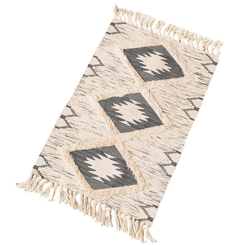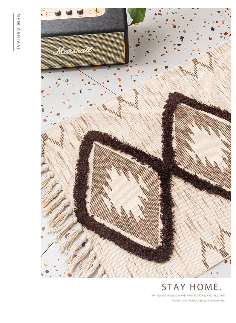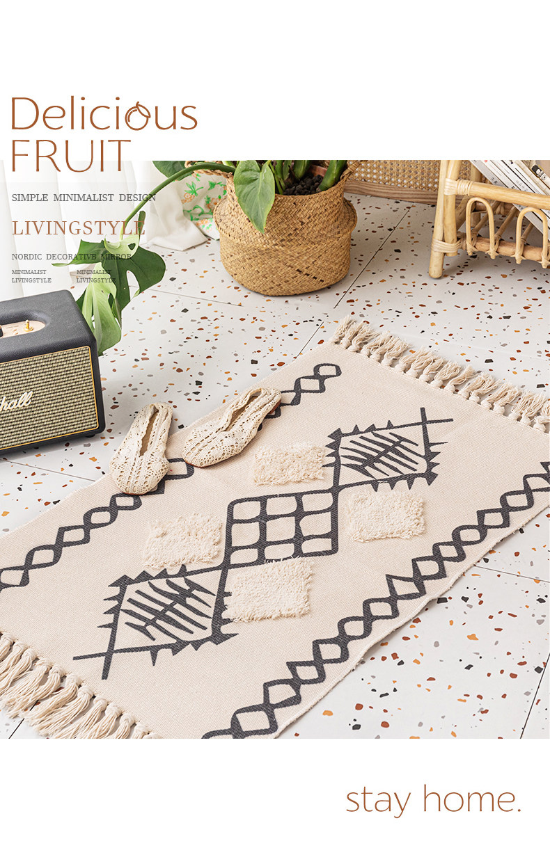 北欧名族风棉麻流苏地垫卧室床边脚垫多功能客厅沙发地毯可机洗