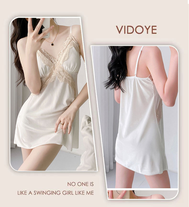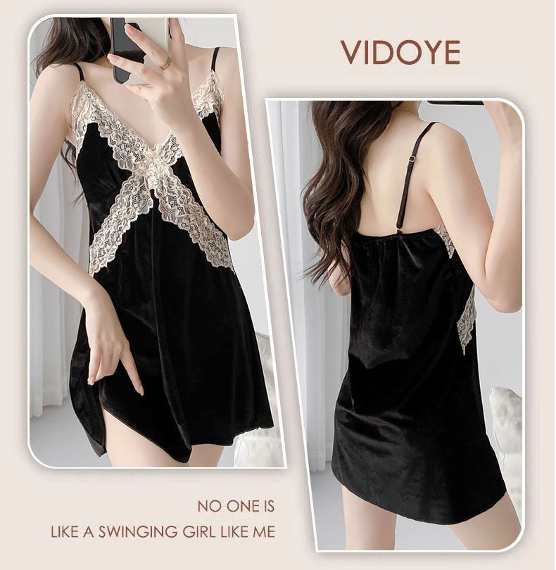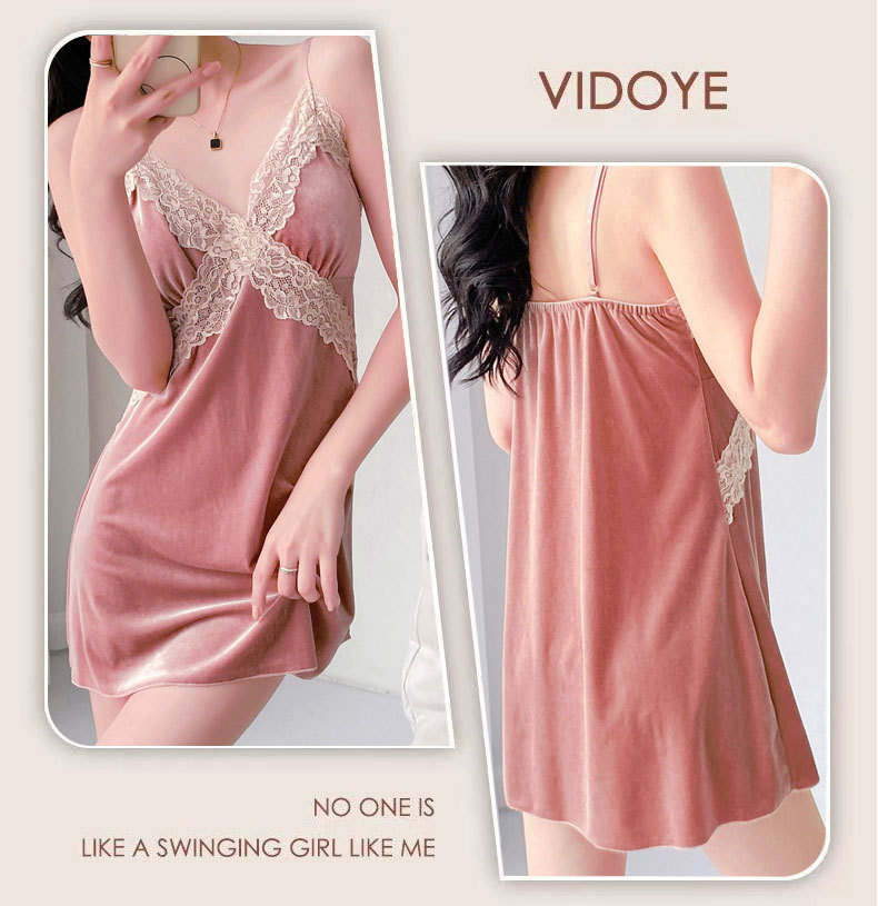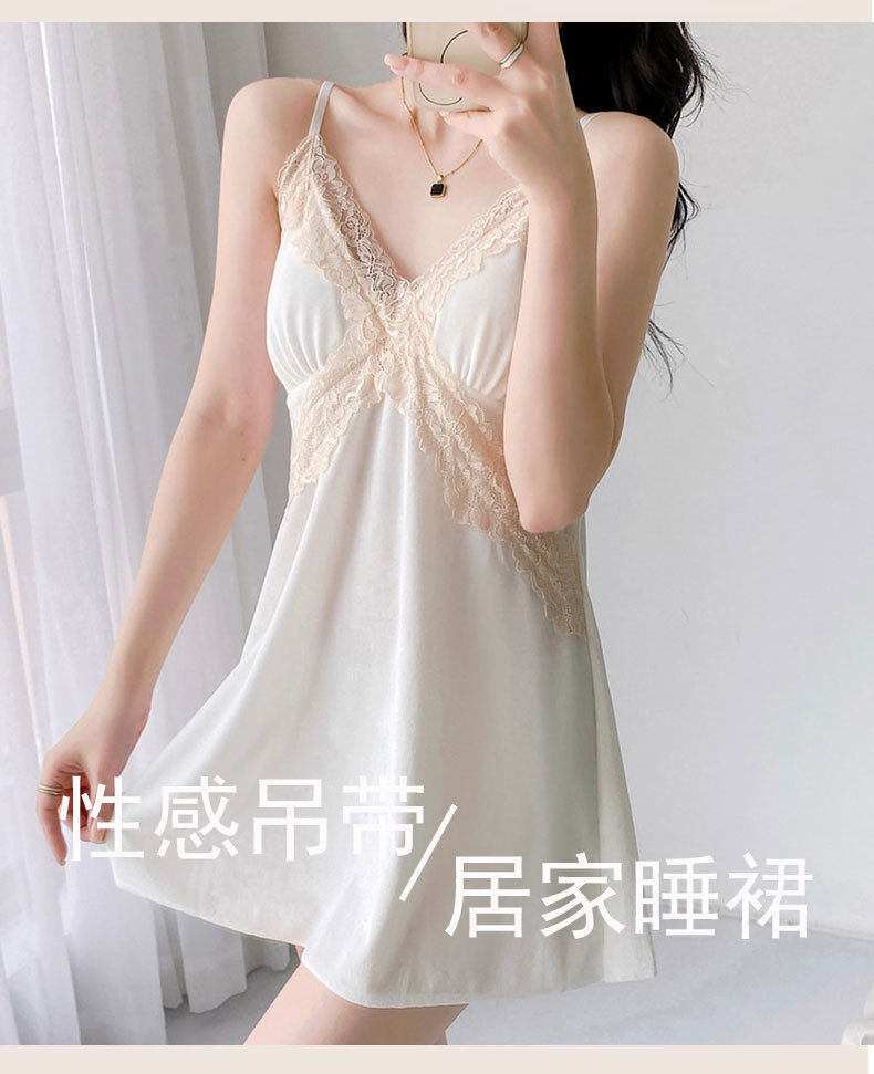 睡裙女秋冬2023新款金丝绒睡衣纯欲风性感吊带睡裙带胸垫家居服女