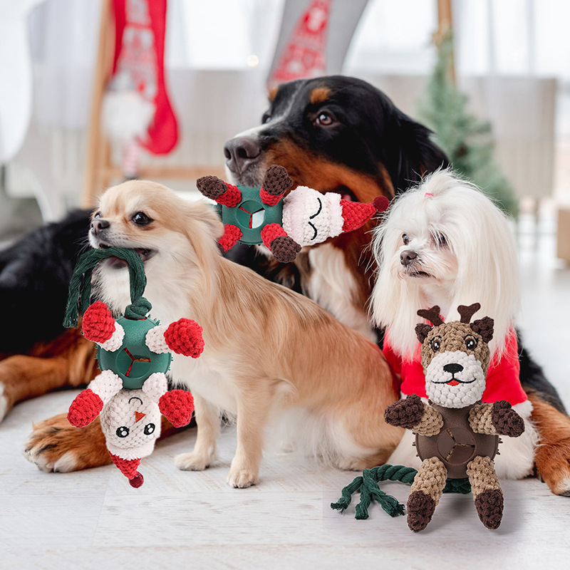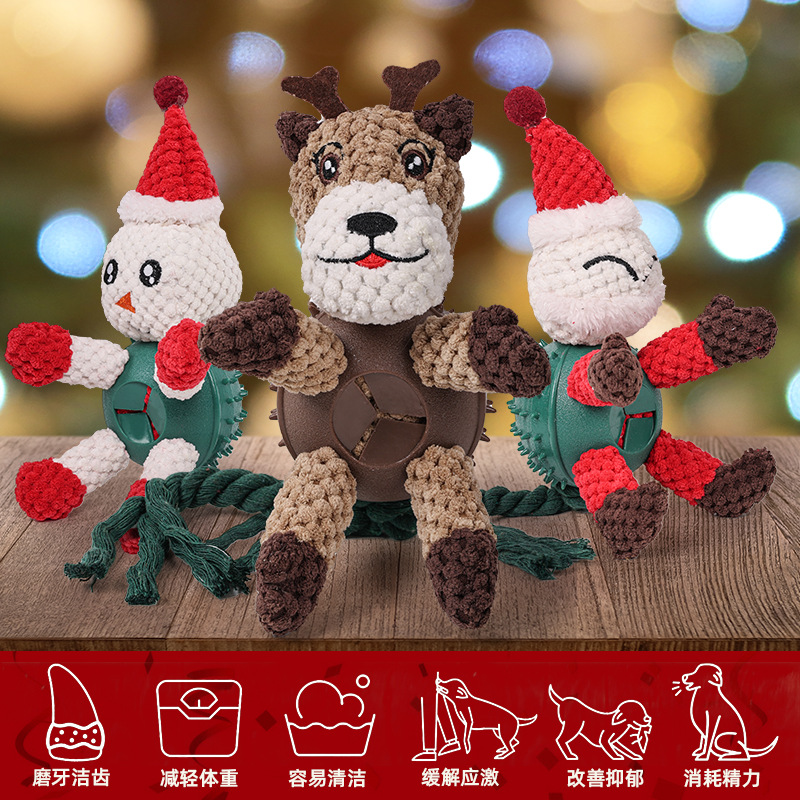 跨境狗狗玩具圣诞节漏食嗅闻玩具耐咬发声毛绒狗玩具宠物圣诞用品