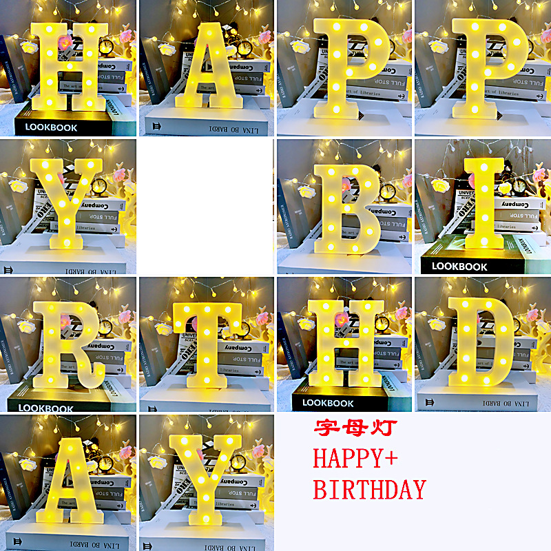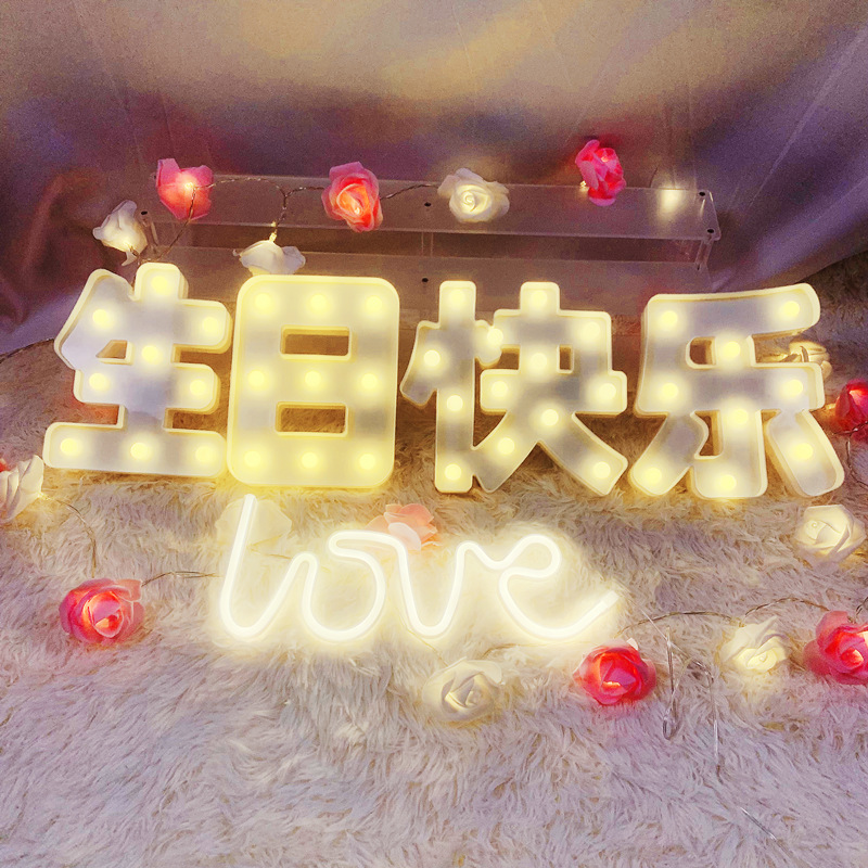 生日快乐LED字母灯英文数字生日派对表白装饰场景布置造型灯彩灯