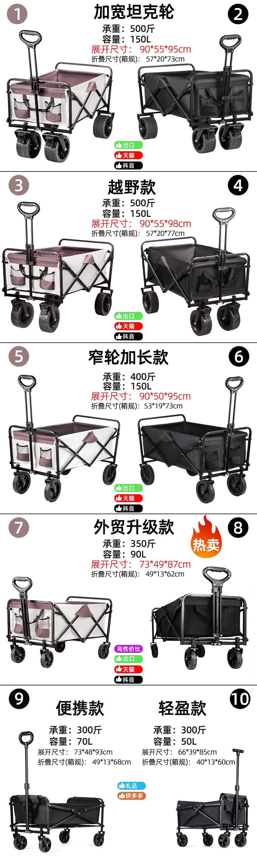 景宜强承重露营车超大户外推车折叠手推营地车便携野餐野营车跨境