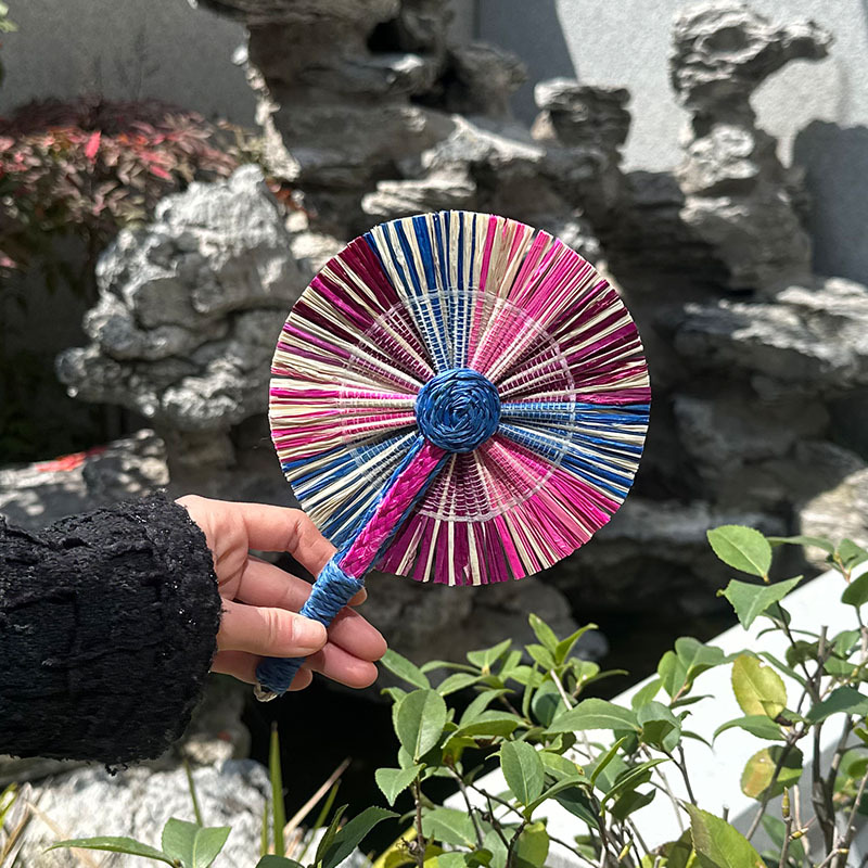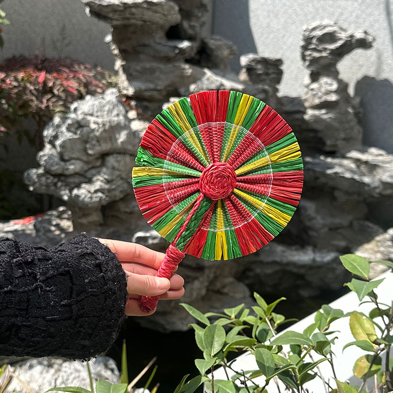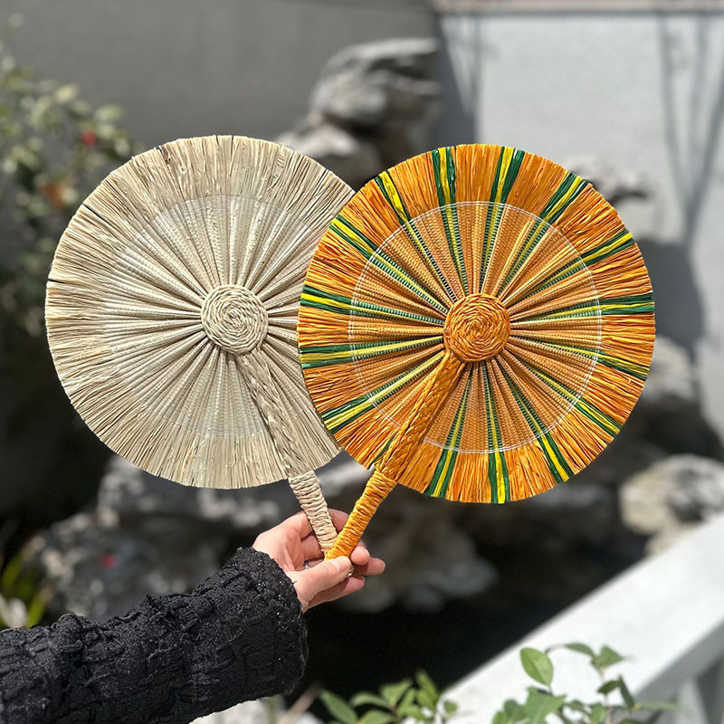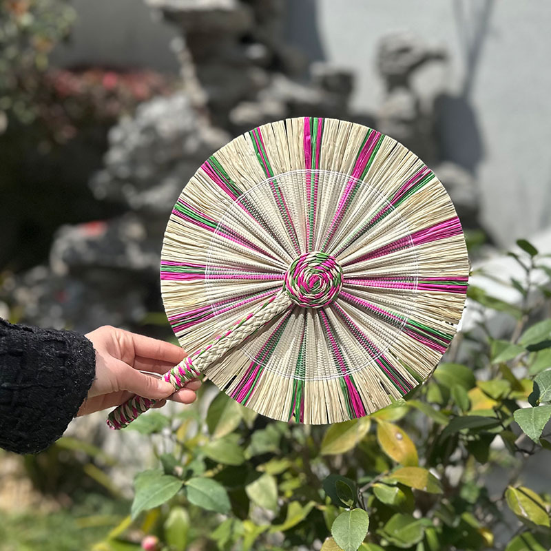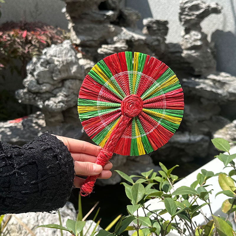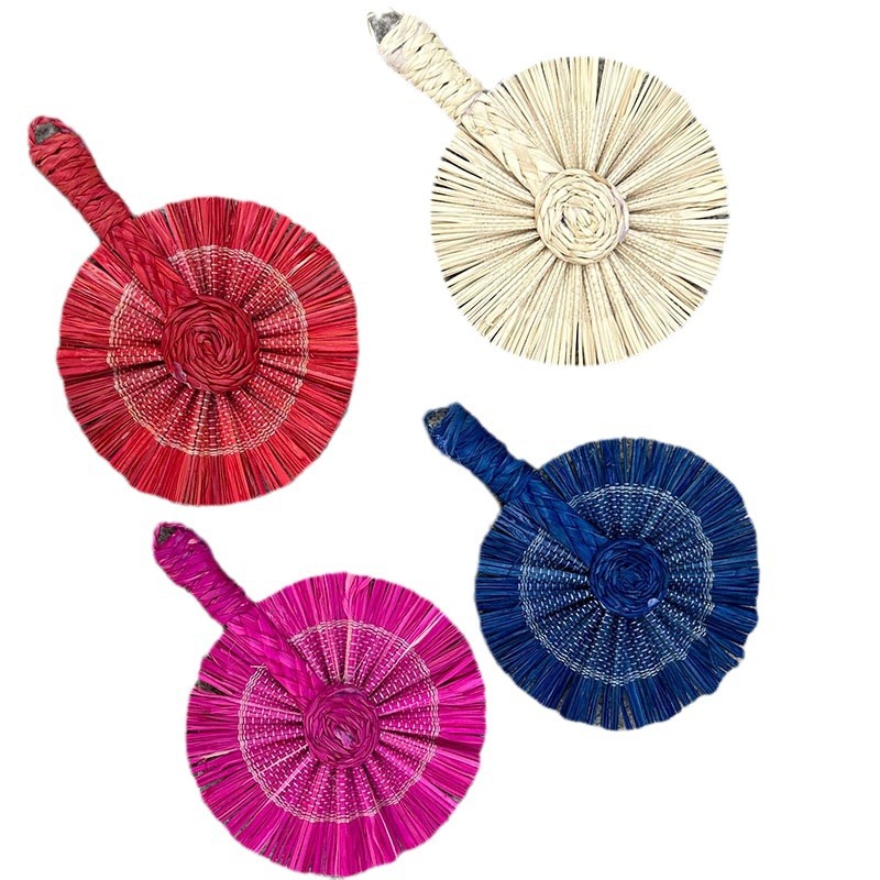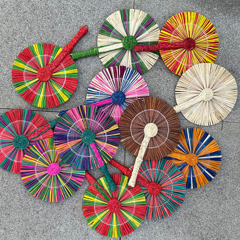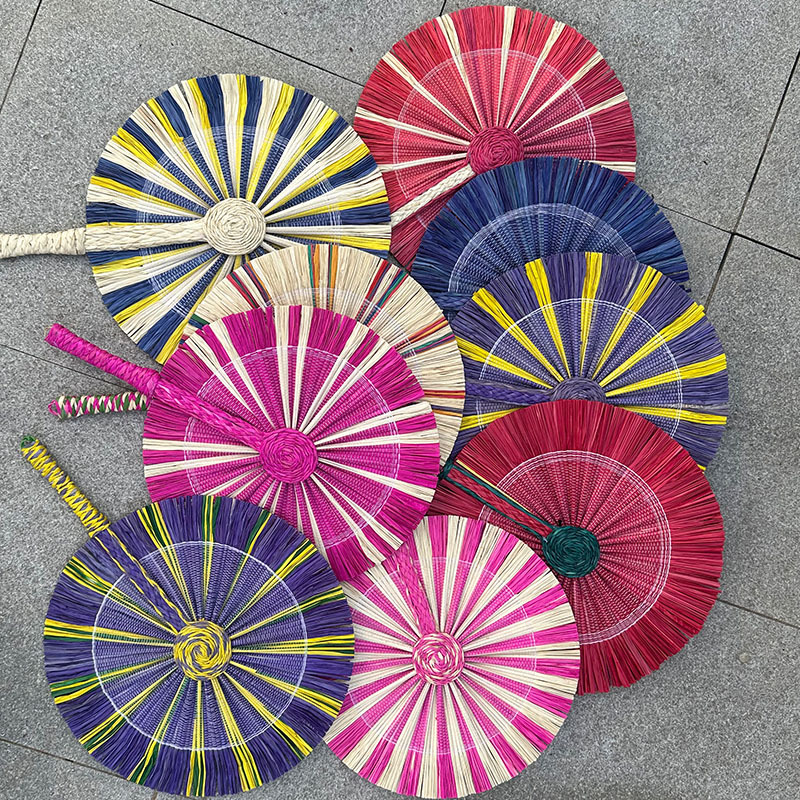 天然拉菲草蒲扇夏季便携手摇草编手工夏天编织彩色圆扇子