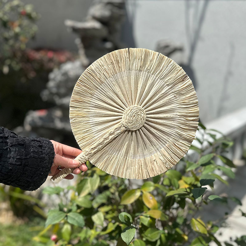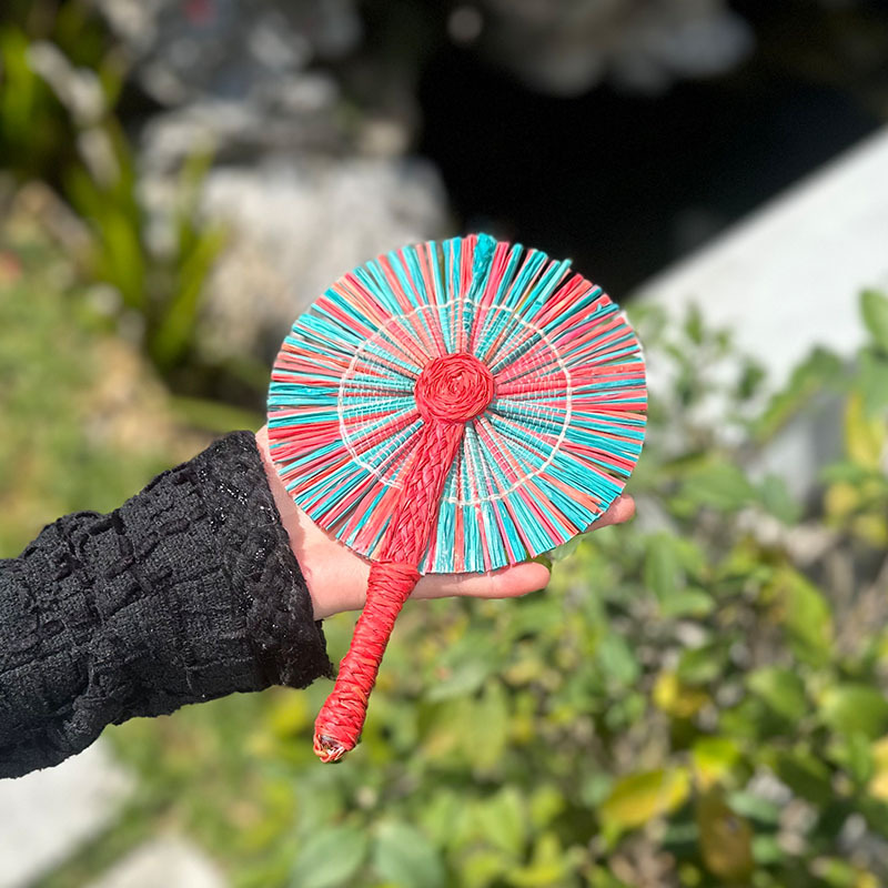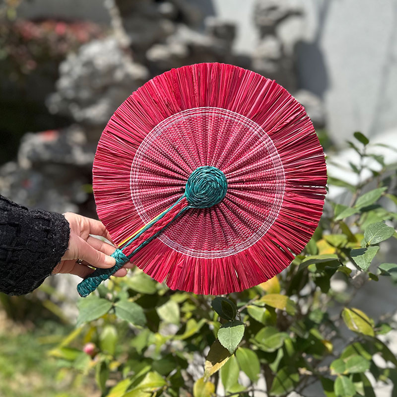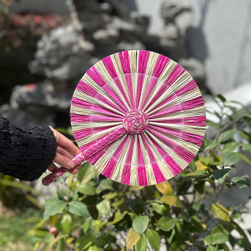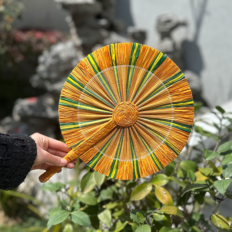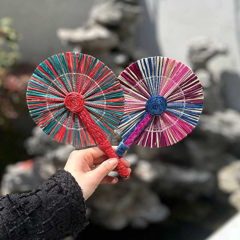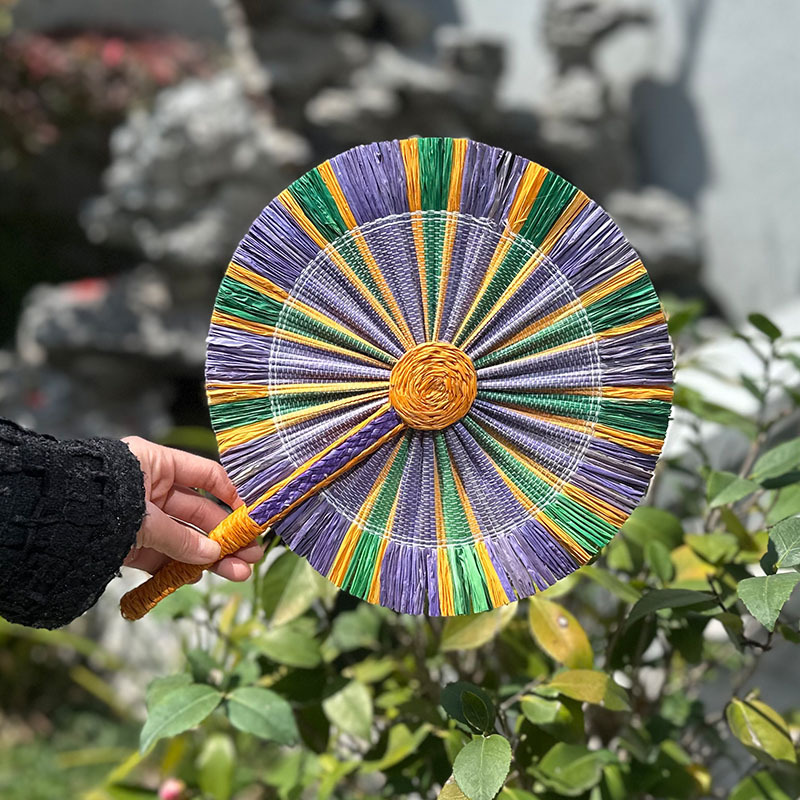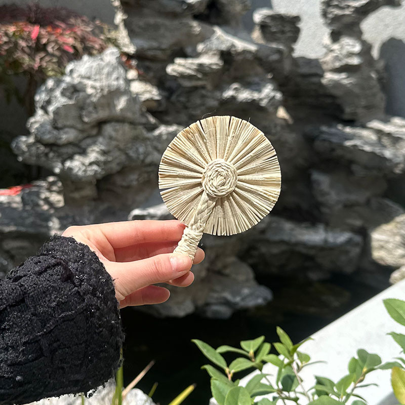 天然拉菲草蒲扇夏季便携手摇草编手工夏天编织彩色圆扇子