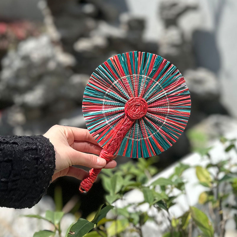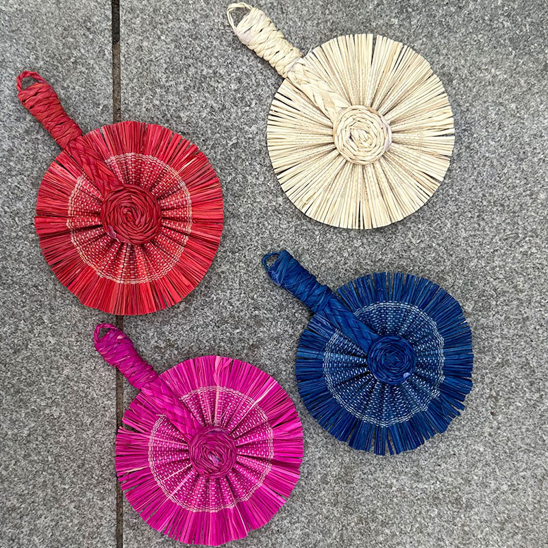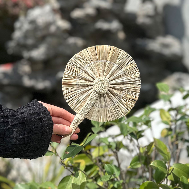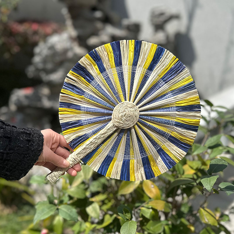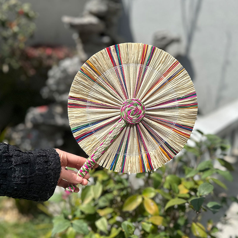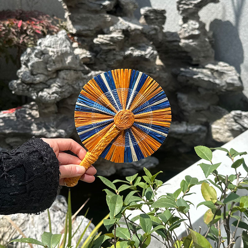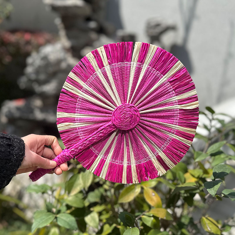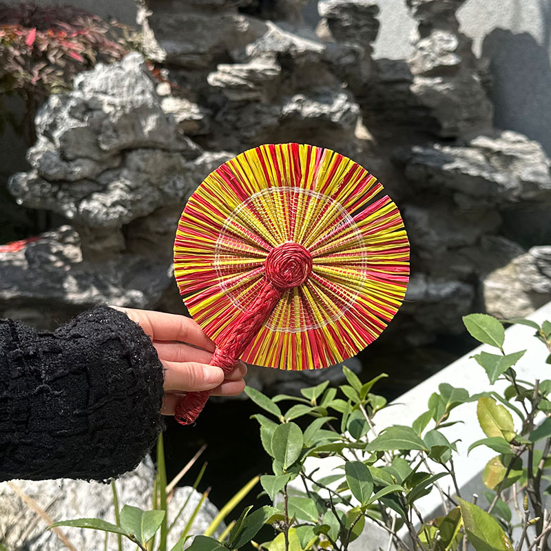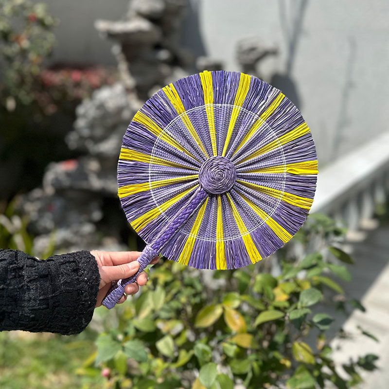 天然拉菲草蒲扇夏季便携手摇草编手工夏天编织彩色圆扇子
