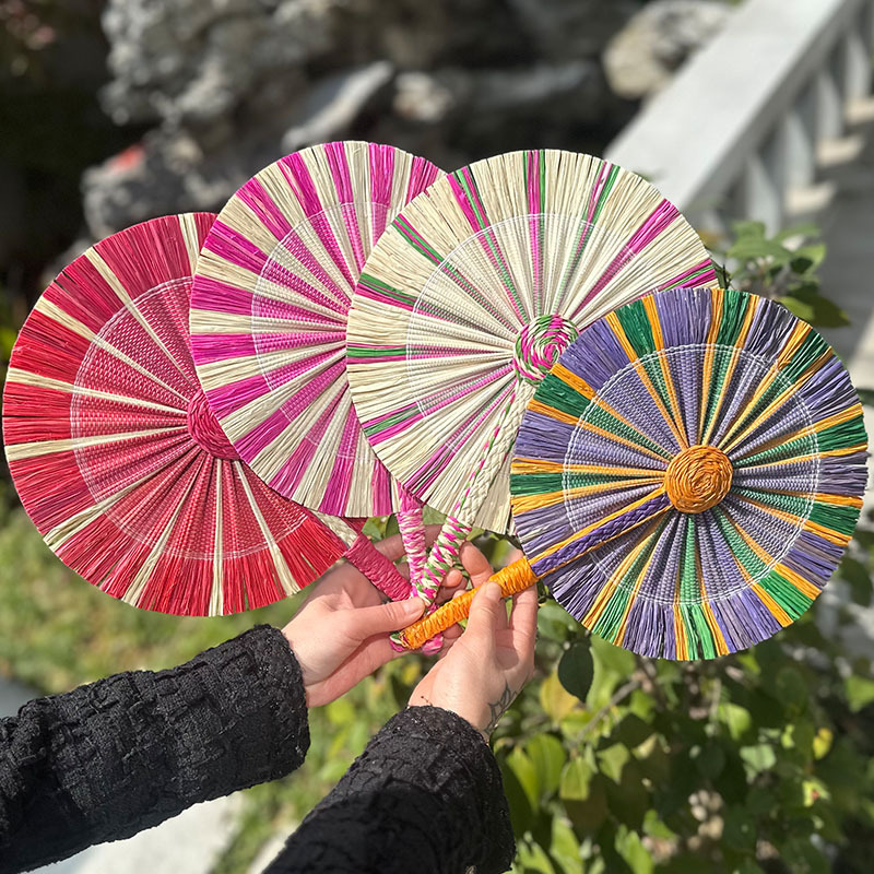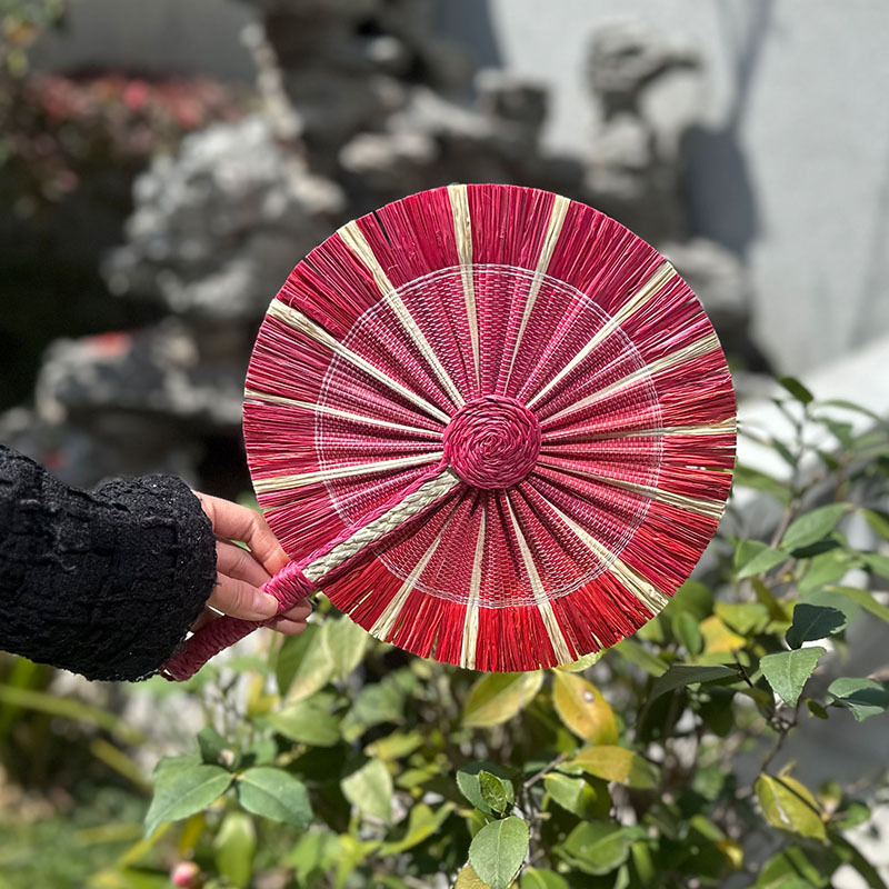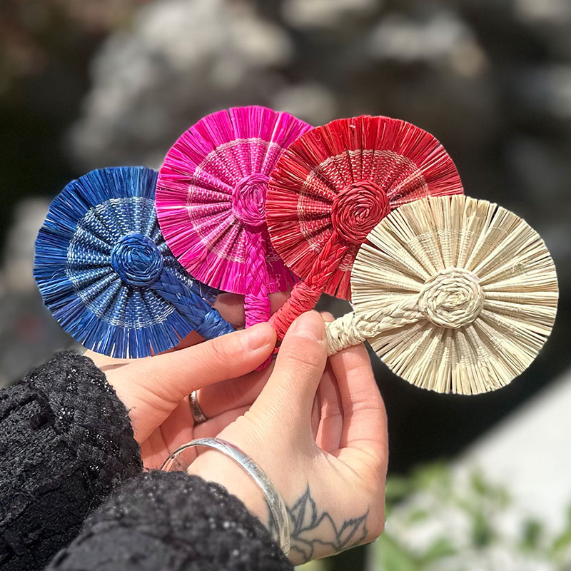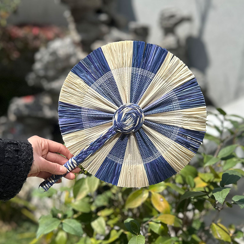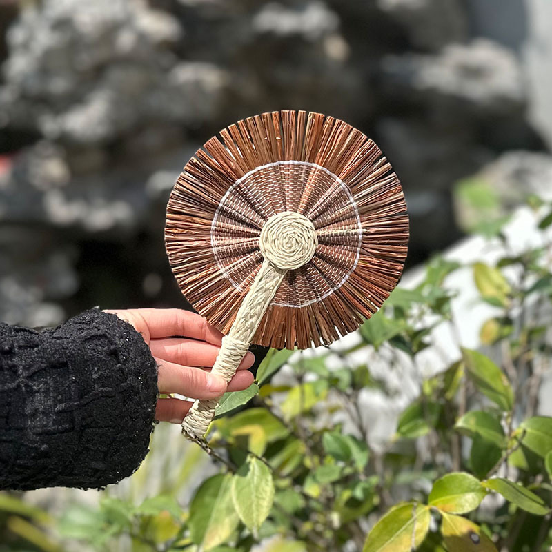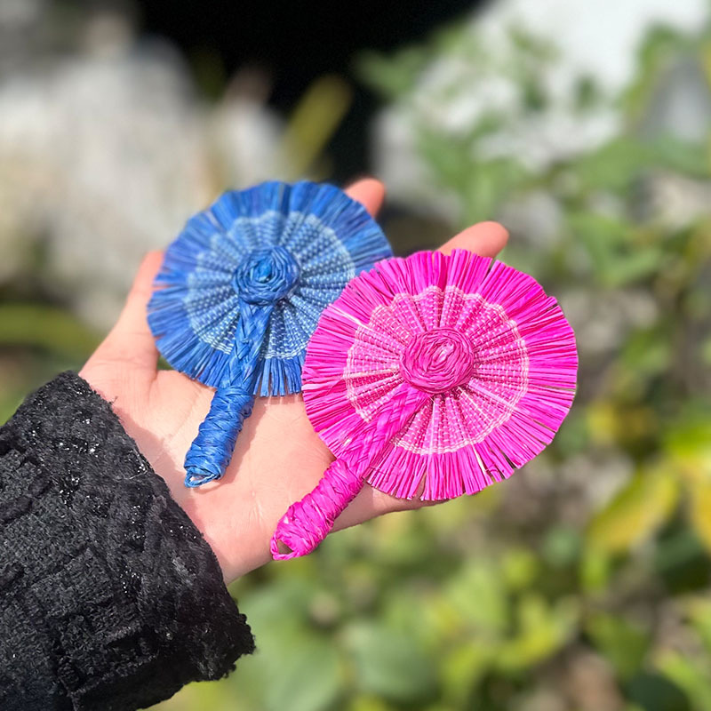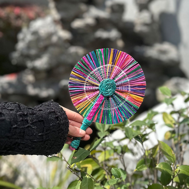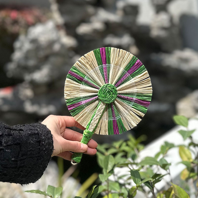 天然拉菲草蒲扇夏季便携手摇草编手工夏天编织彩色圆扇子