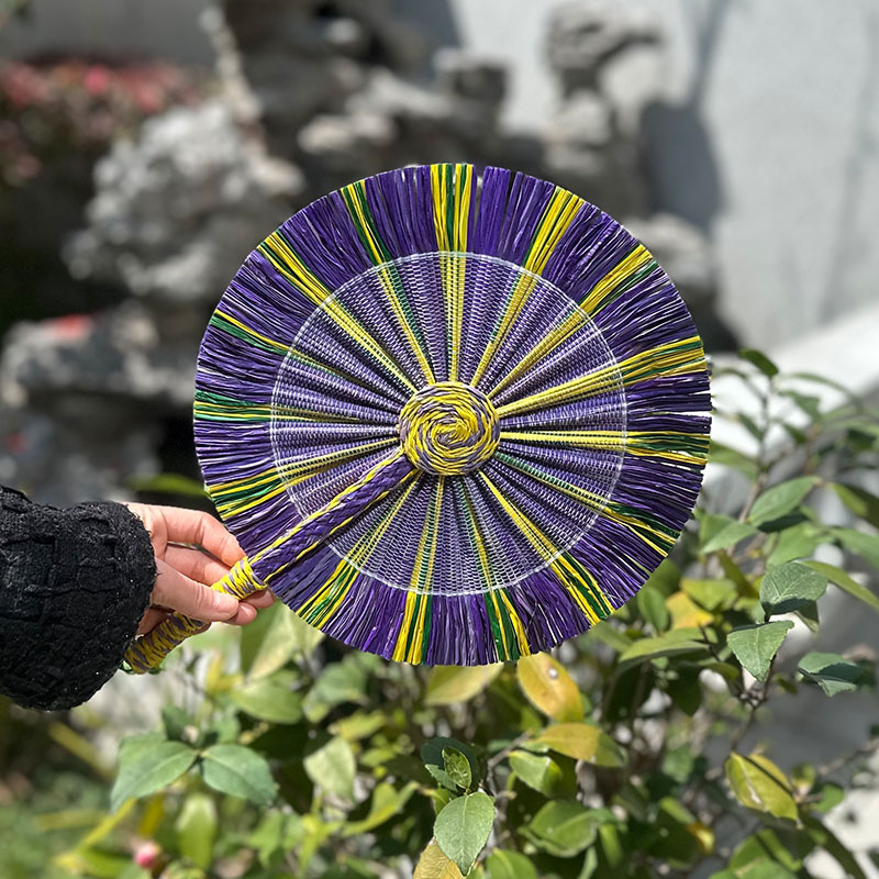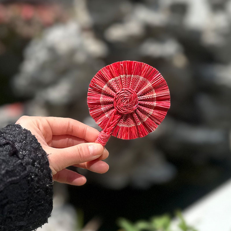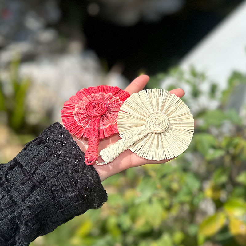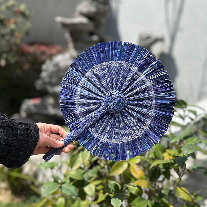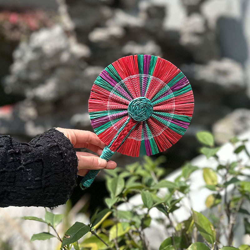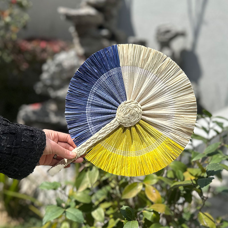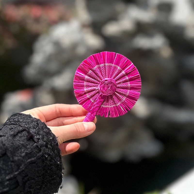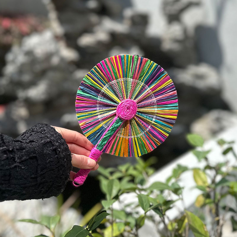 天然拉菲草蒲扇夏季便携手摇草编手工夏天编织彩色圆扇子