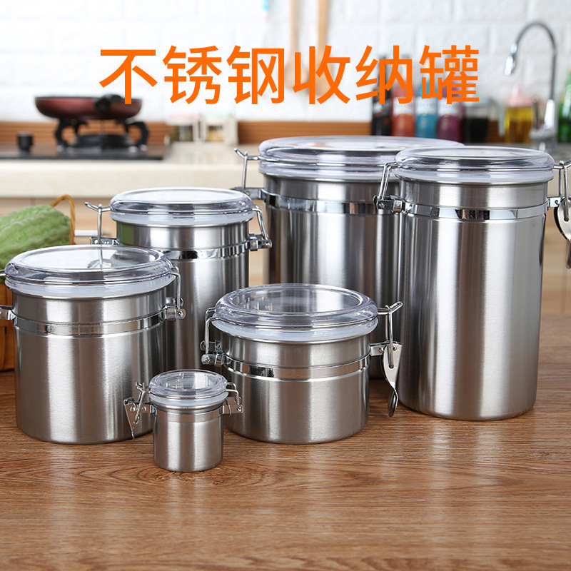 工厂定制食品级不锈钢储物罐咖啡豆卡扣密封罐坚果杂粮茶叶收纳罐