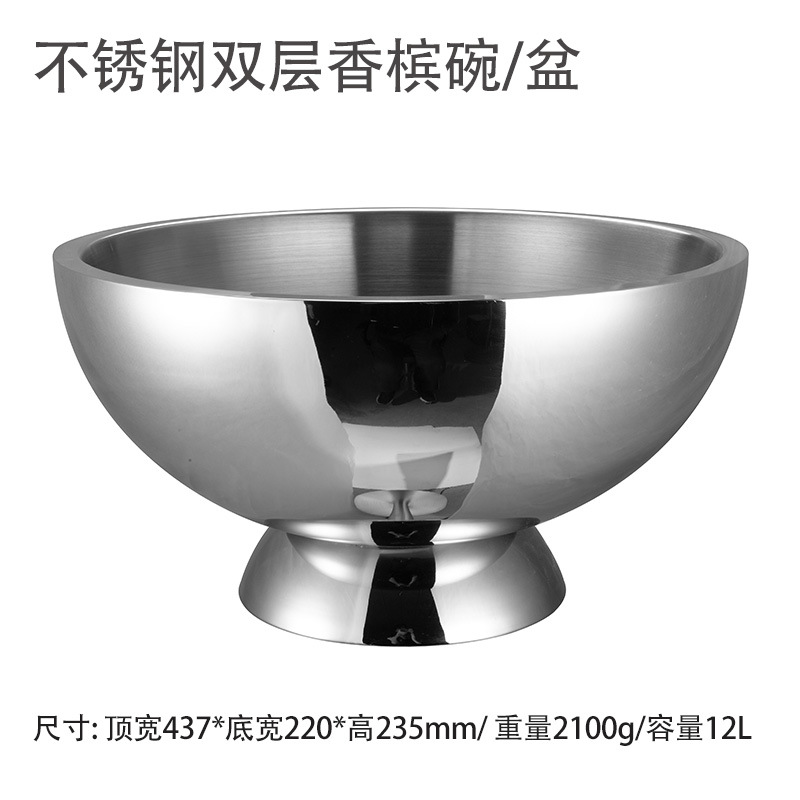 双层冰镇桶红酒洋酒冰桶大号宾治冰碗冰粒桶工厂定制不锈钢香槟碗