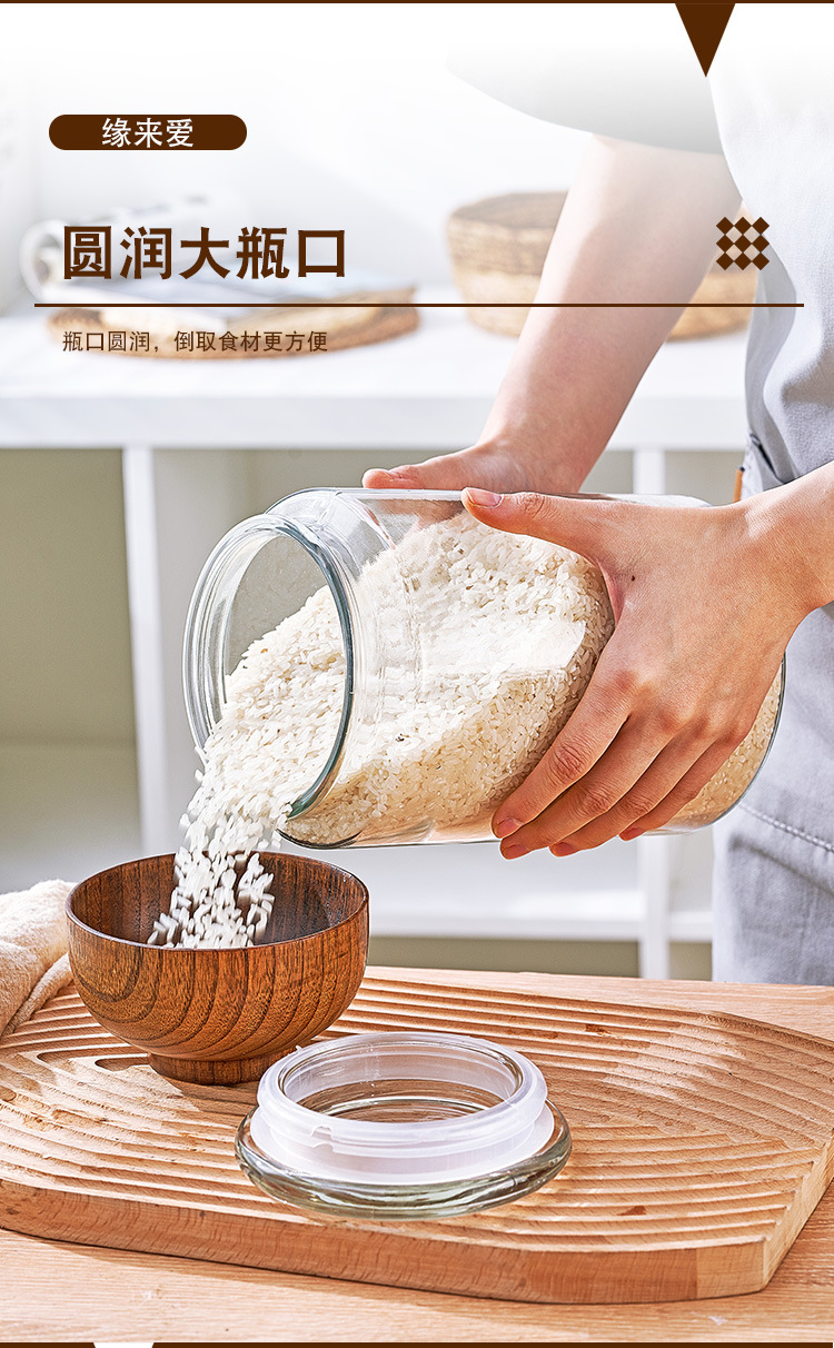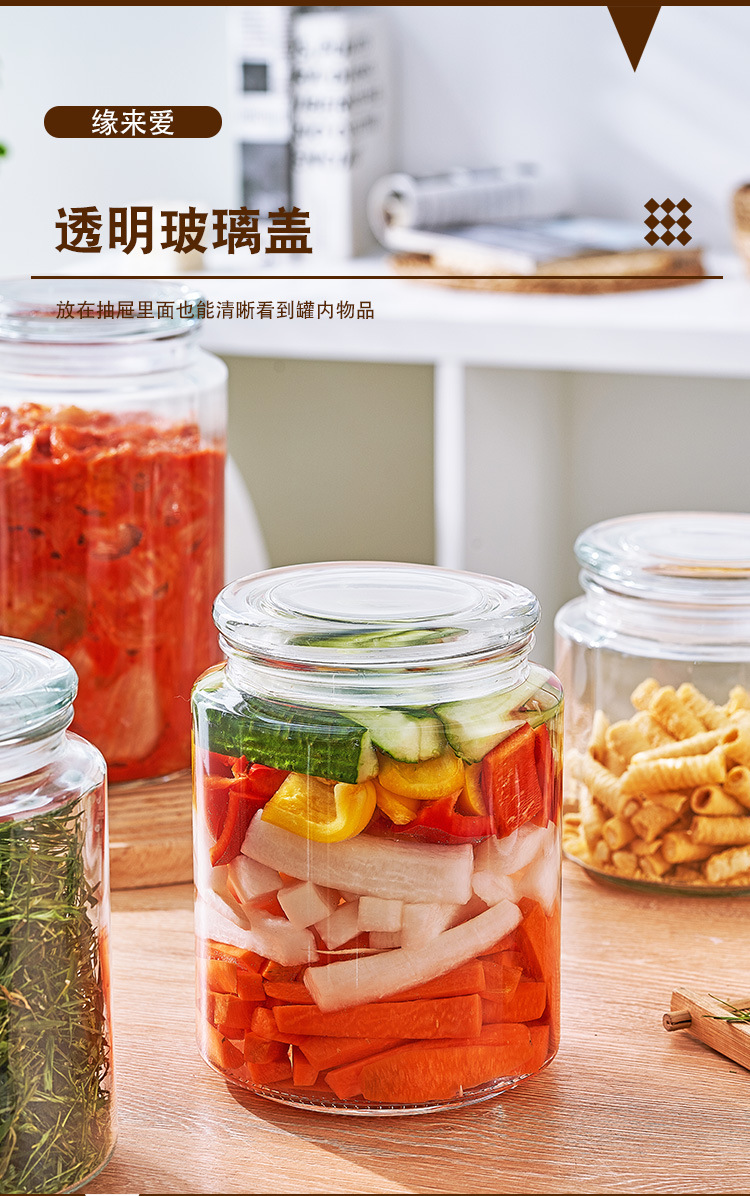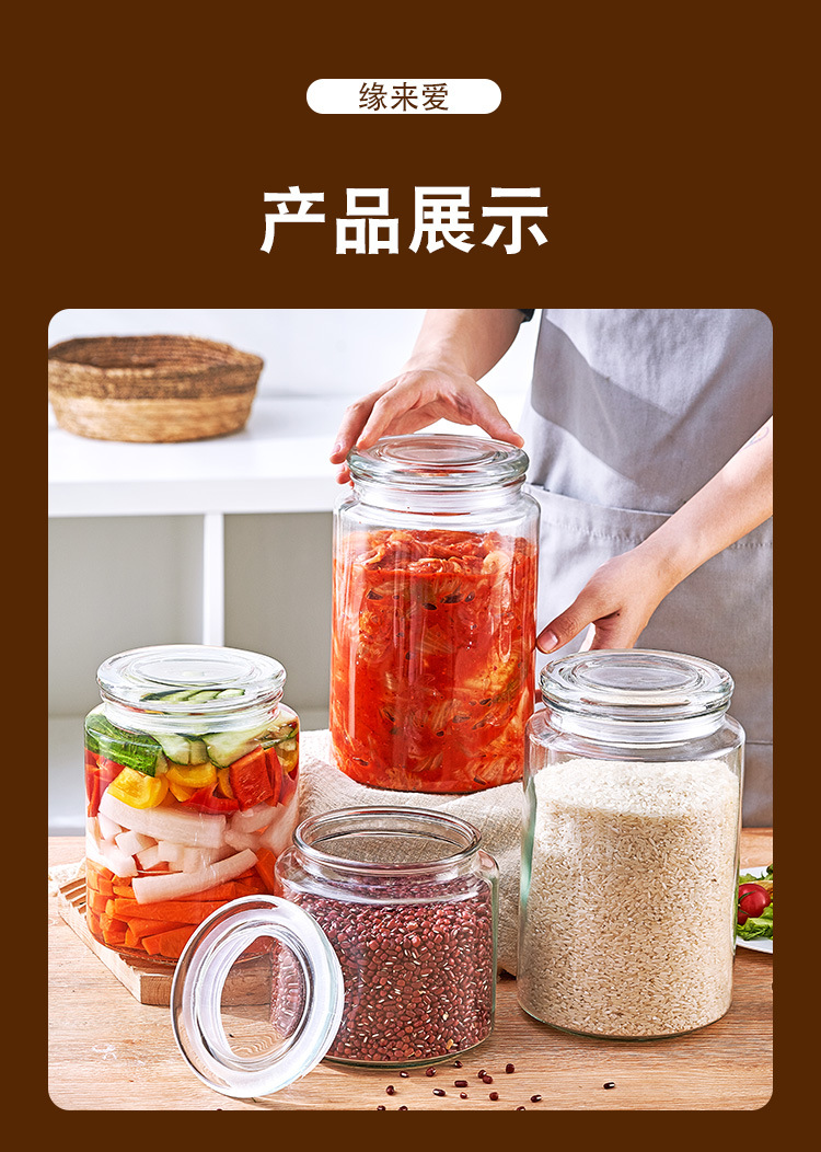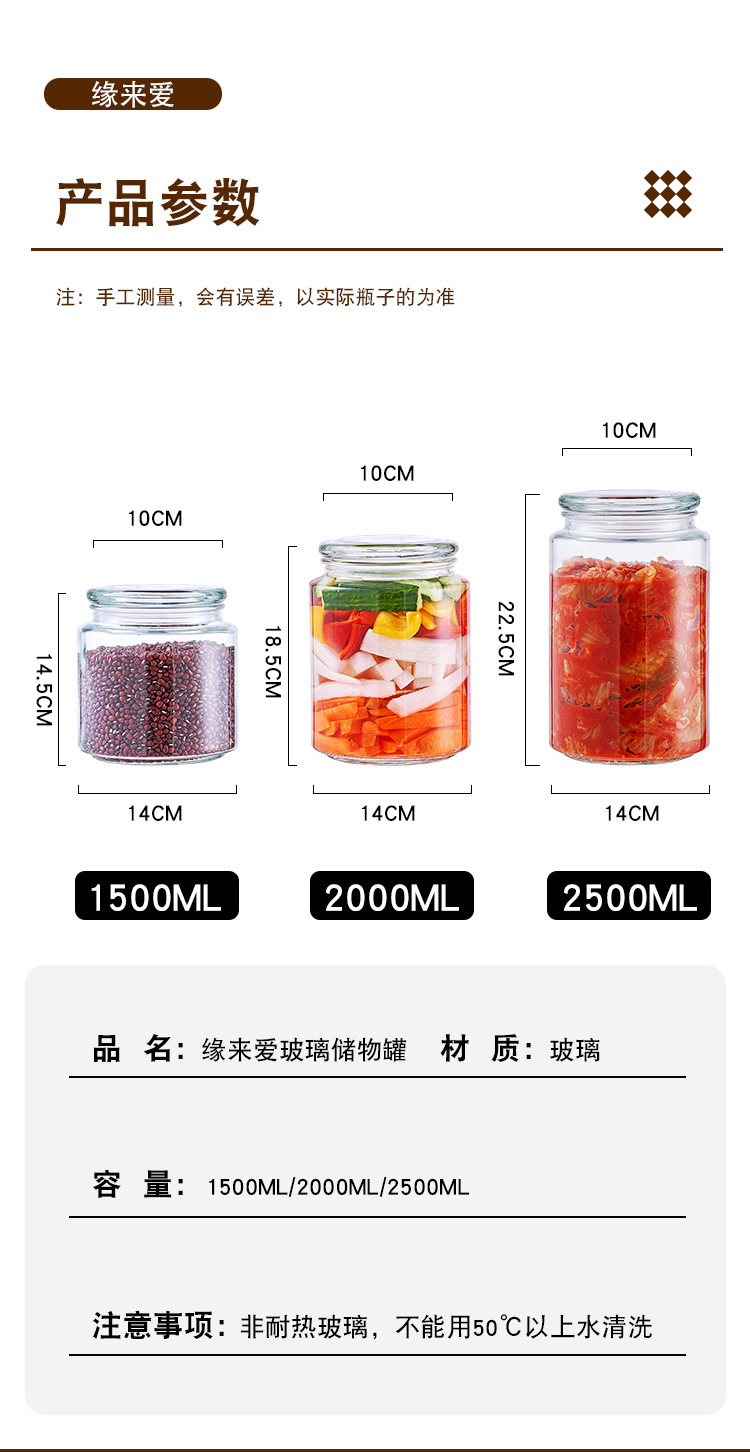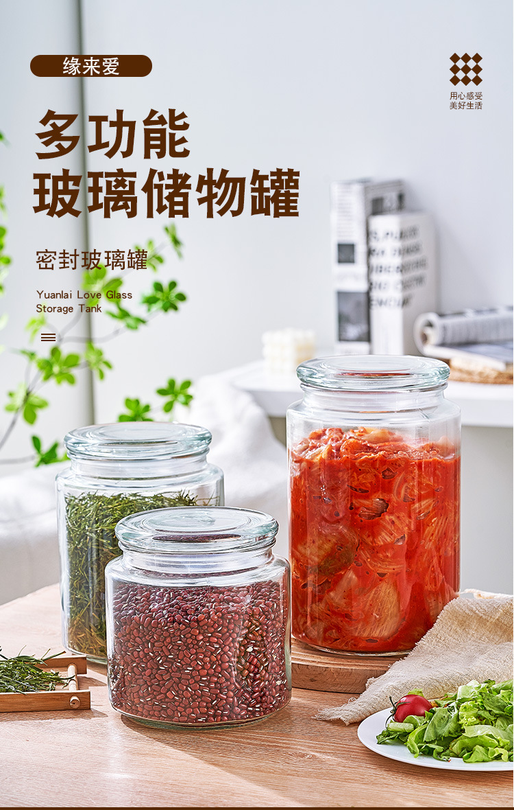 新款缘来爱加厚玻璃储物罐泡菜密封罐茶叶罐糖果罐厨房收纳整理瓶