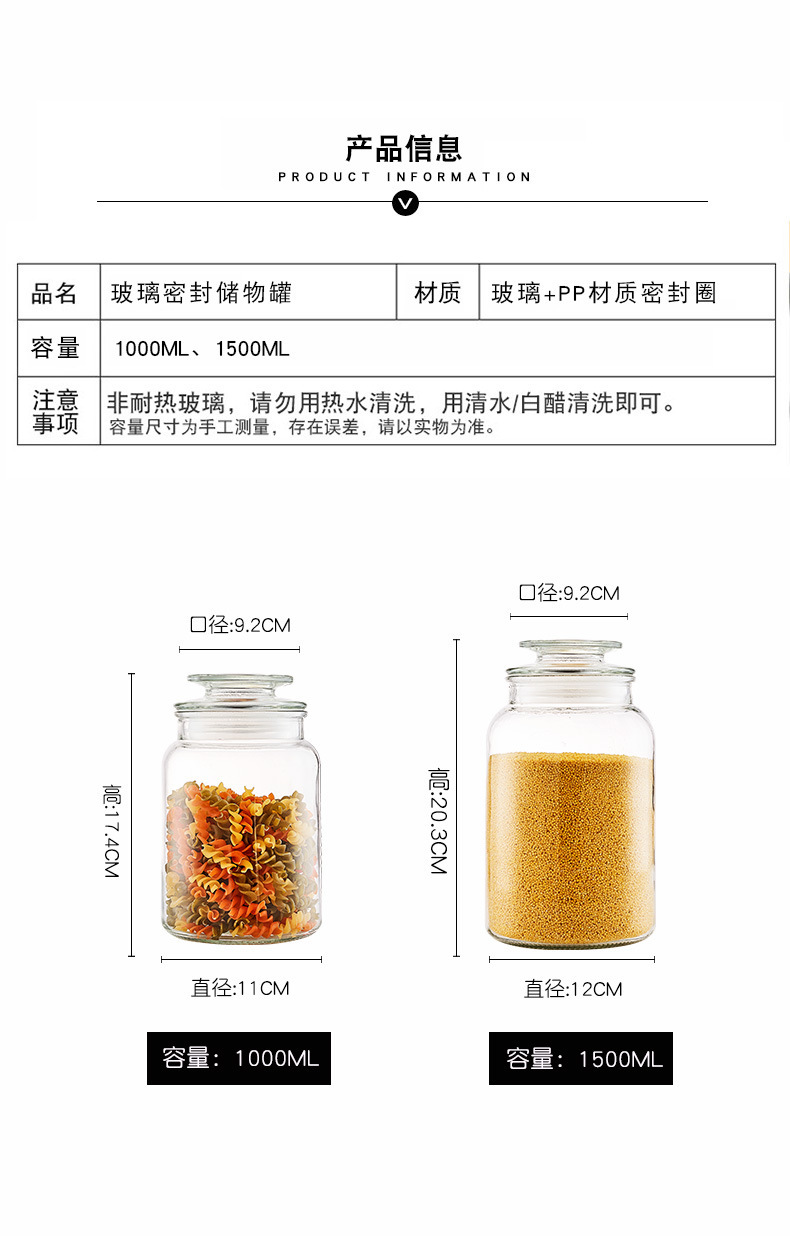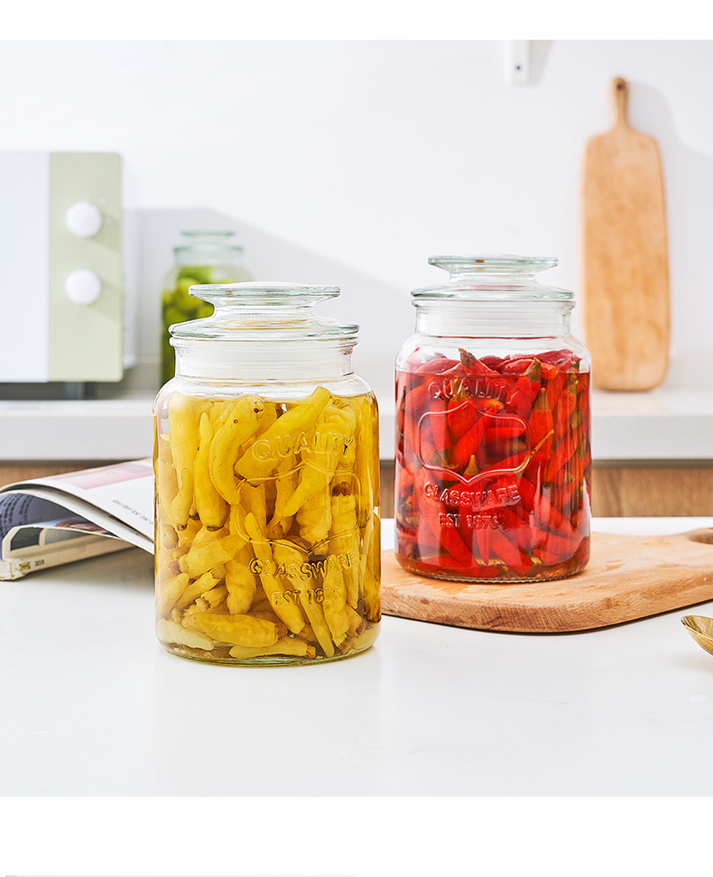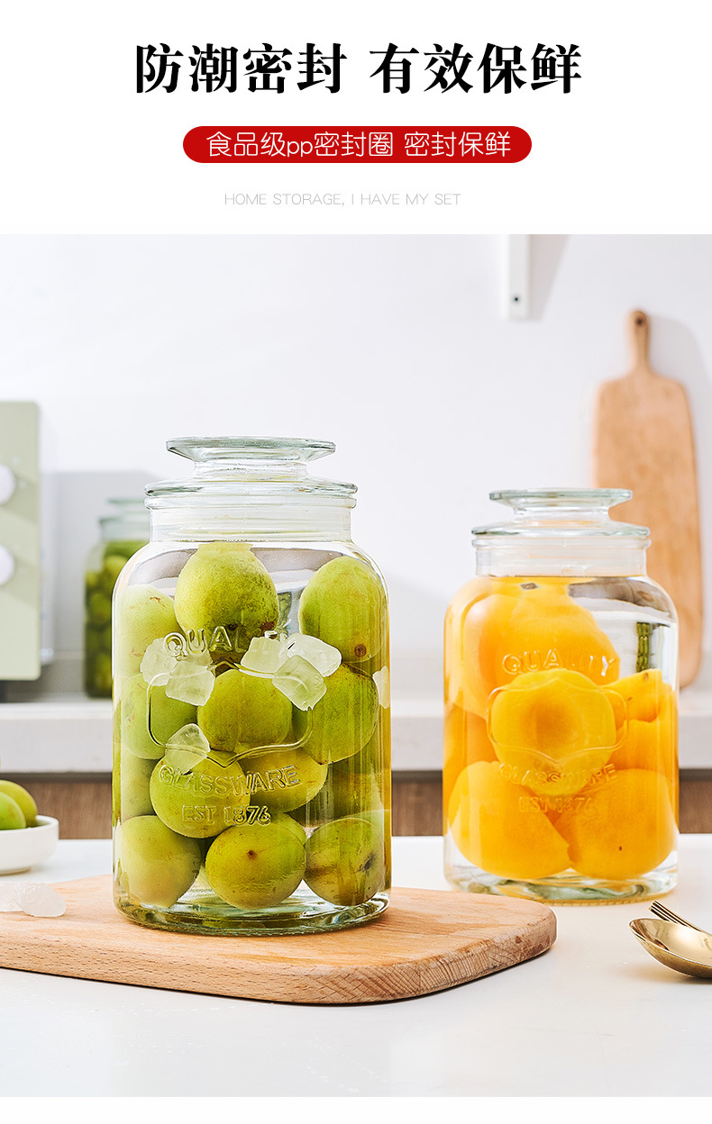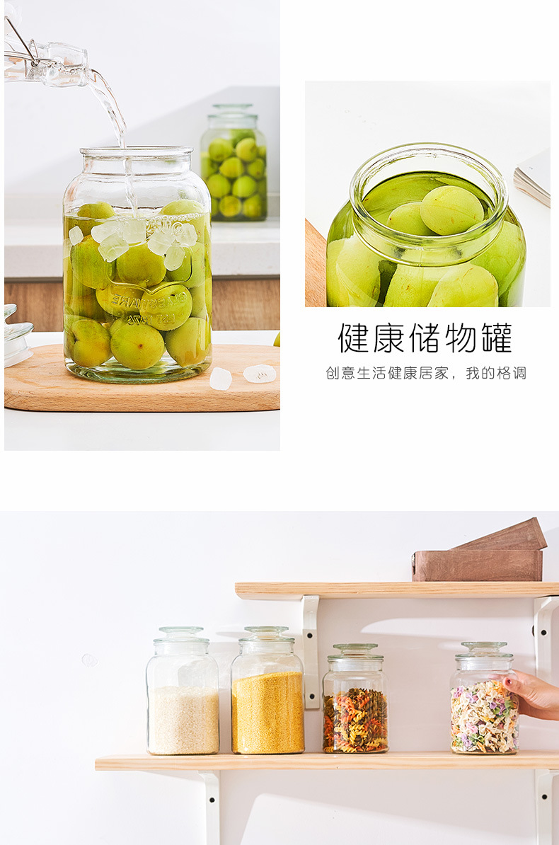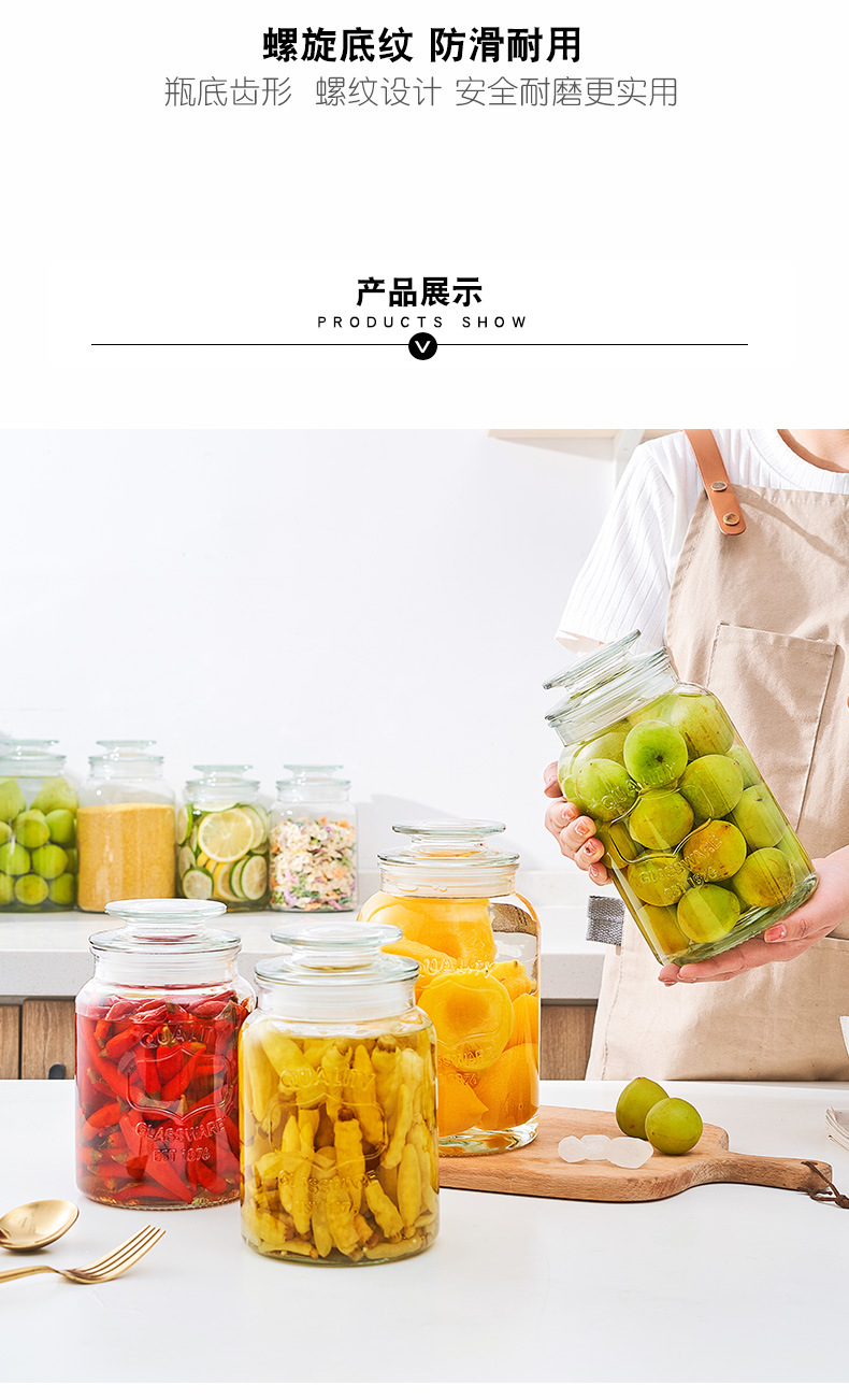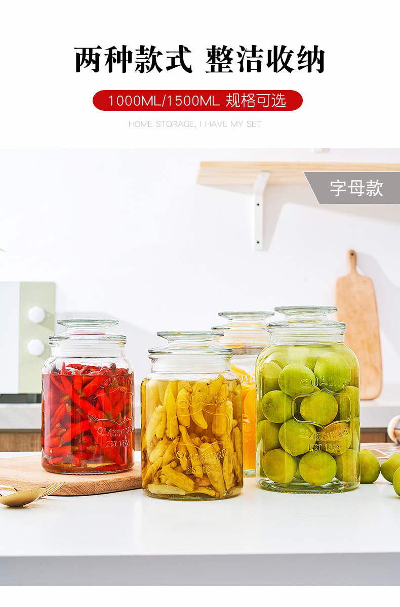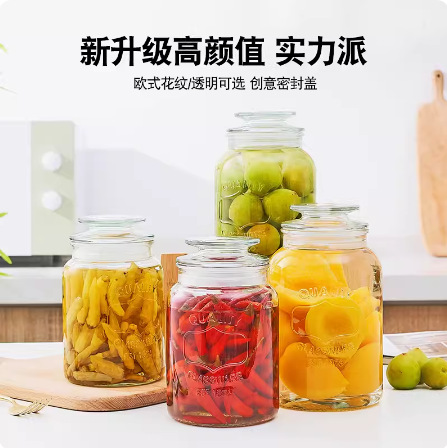 玻璃密封罐浮雕储物罐家用加厚带盖玻璃罐泡菜坛子透明杂粮收纳盒