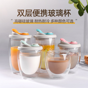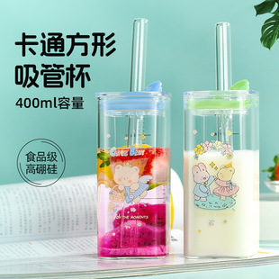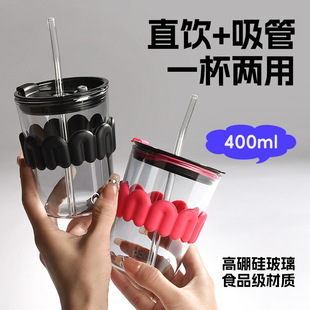 批发简约吸管杯高颜值定制通用玻璃杯带盖耐高温水杯便携玻璃杯子