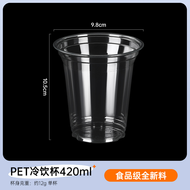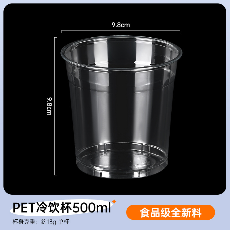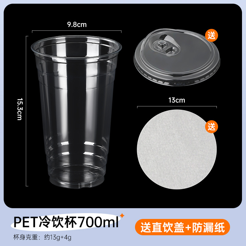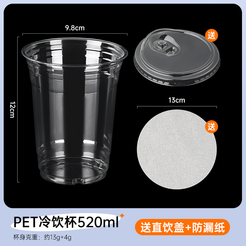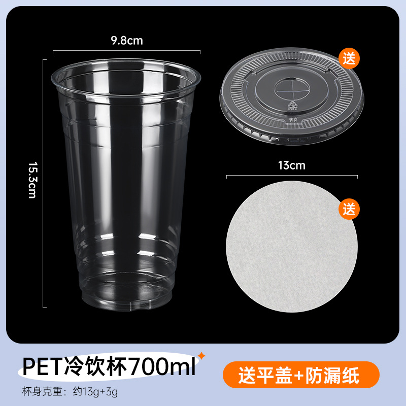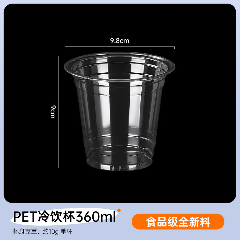 100个装 98口径奶茶杯子一次性pet冷饮杯咖啡杯透明塑料商用带盖