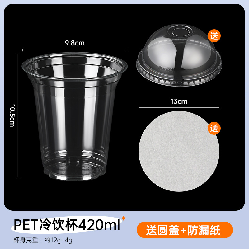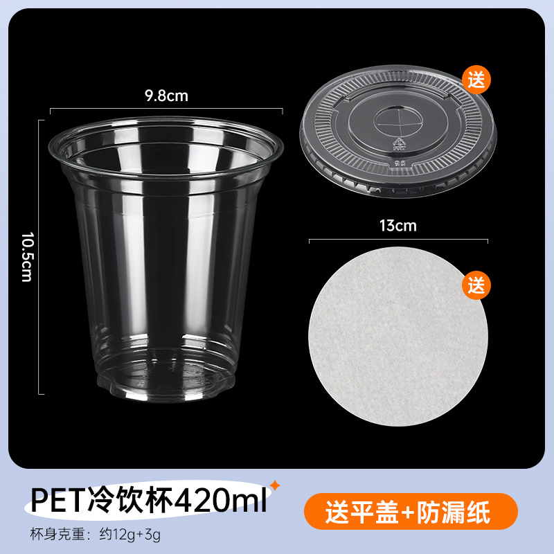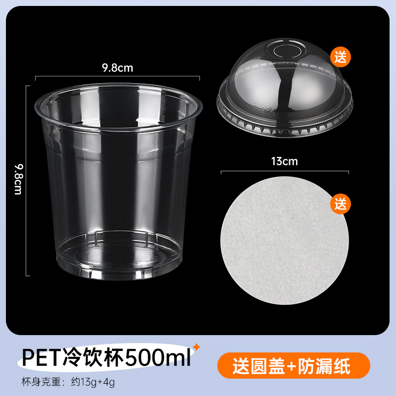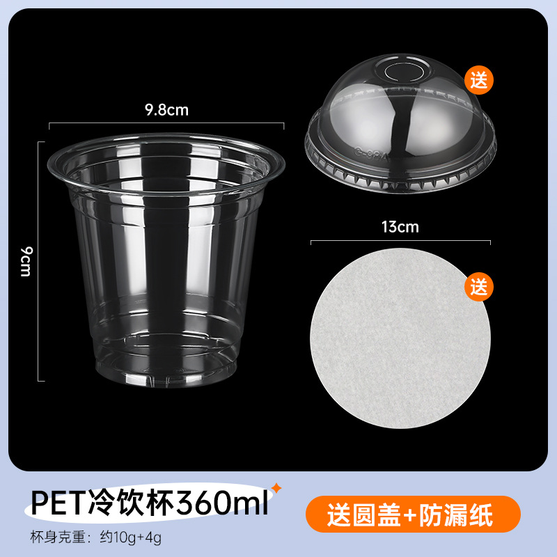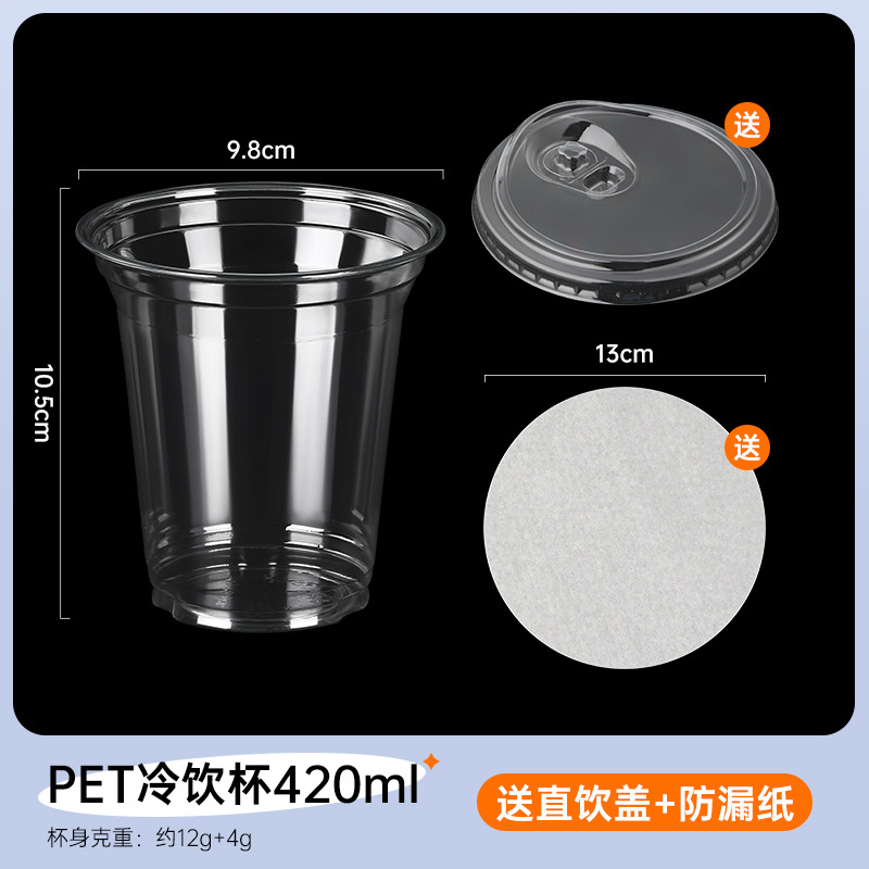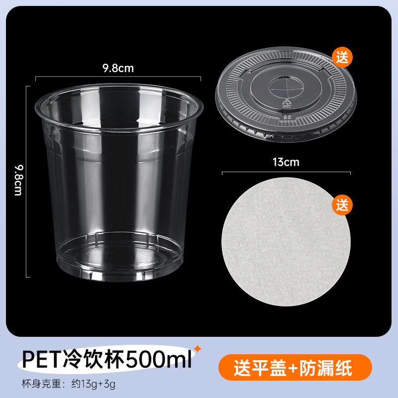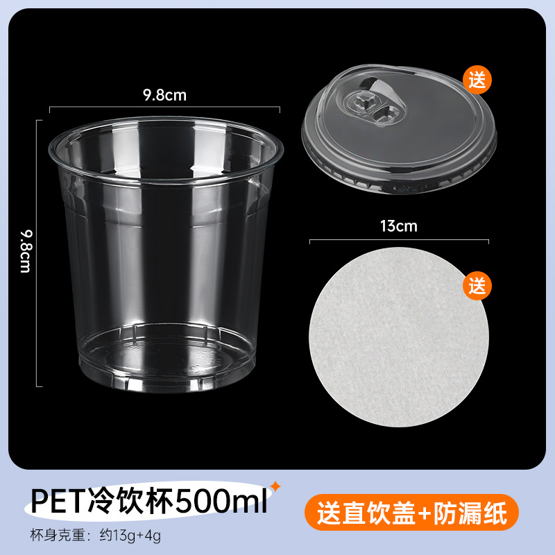 100个装 98口径奶茶杯子一次性pet冷饮杯咖啡杯透明塑料商用带盖