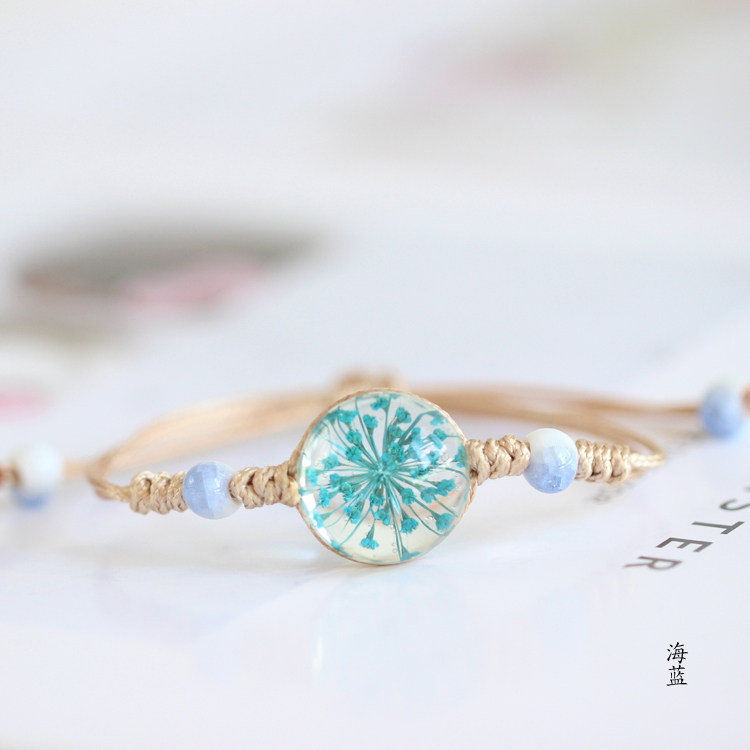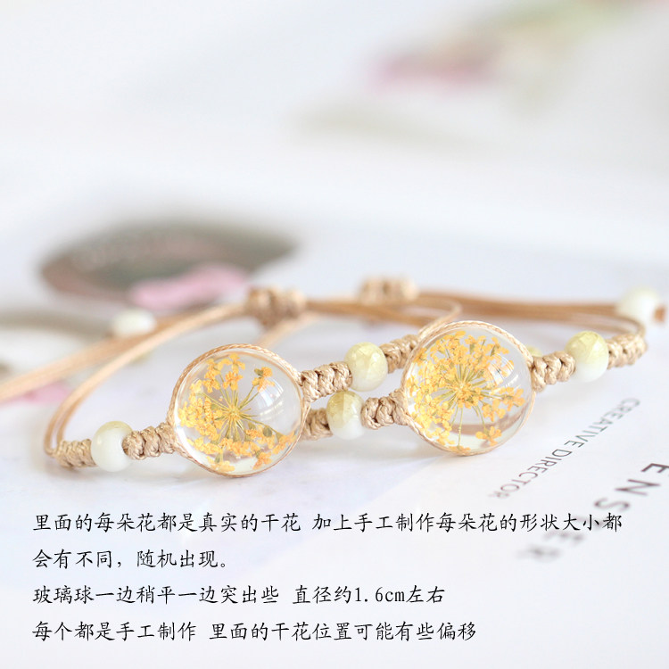 厂家直供韩版亚马逊干花玻璃文艺小清新闺蜜学生女摆地摊手链190