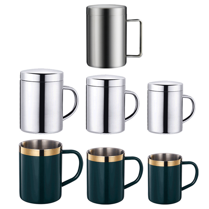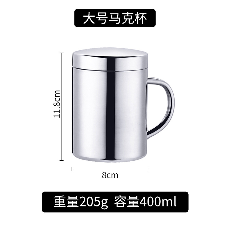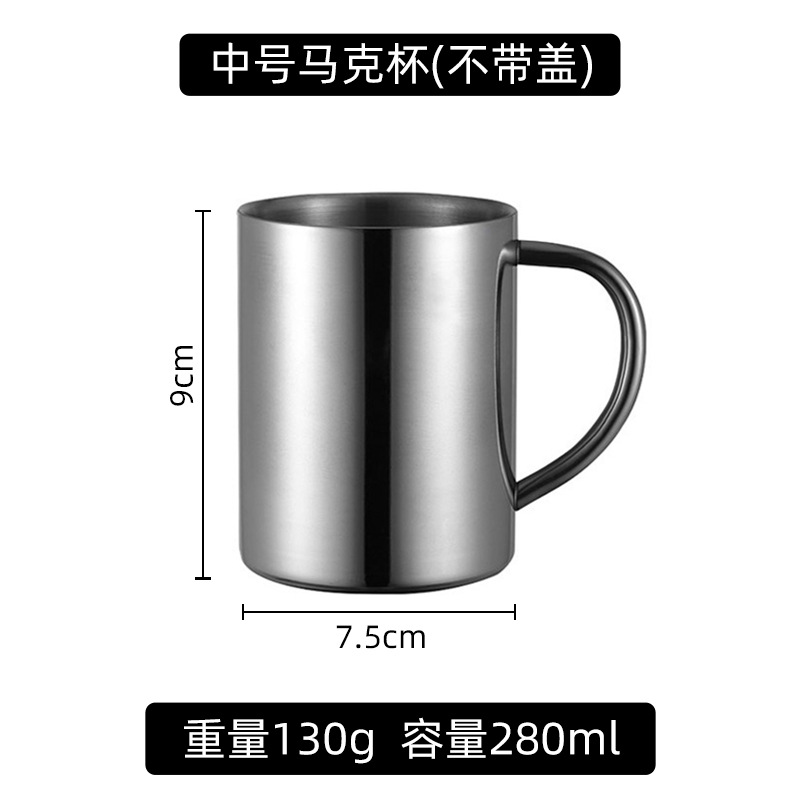 304不锈钢马克杯家用保温咖啡杯带盖双层口杯儿童杯幼儿园杯子316