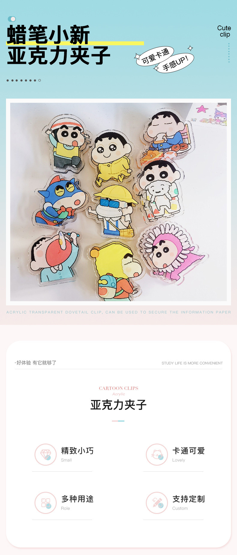 严选蜡笔小新亚克力夹可爱高颜值便签夹搞怪照片夹ins试卷收纳夹