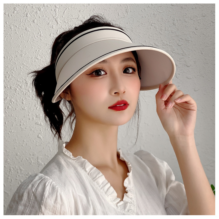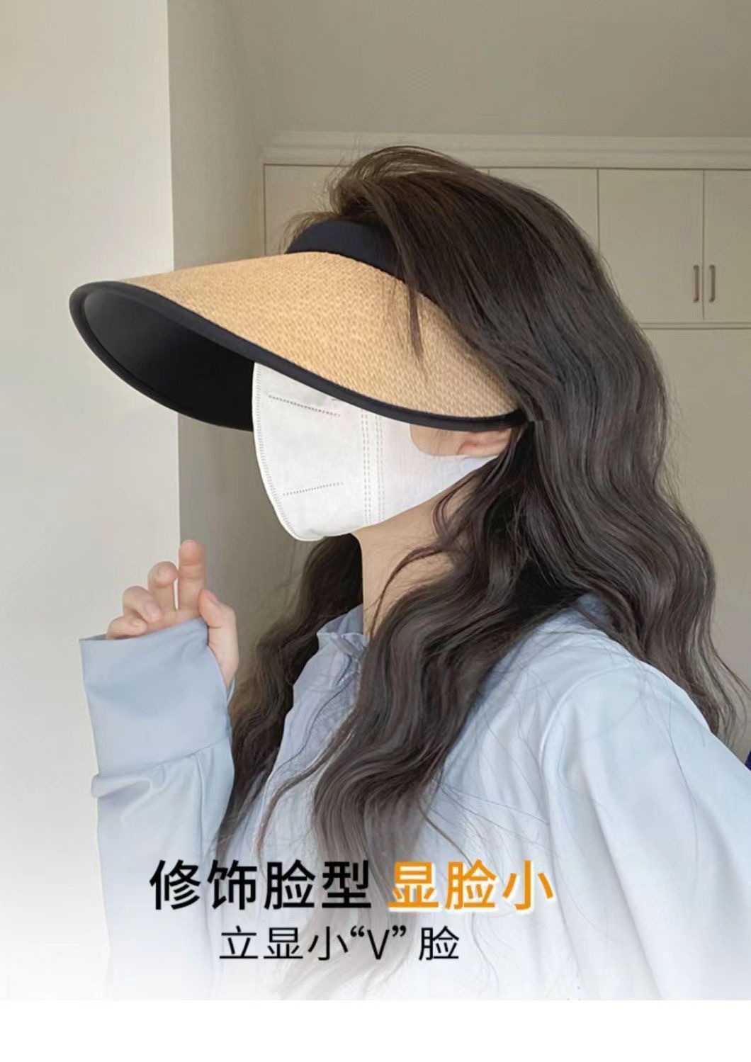UV黑胶空顶帽女夏季大檐遮阳帽ins日系甜美草编户外防晒太阳帽