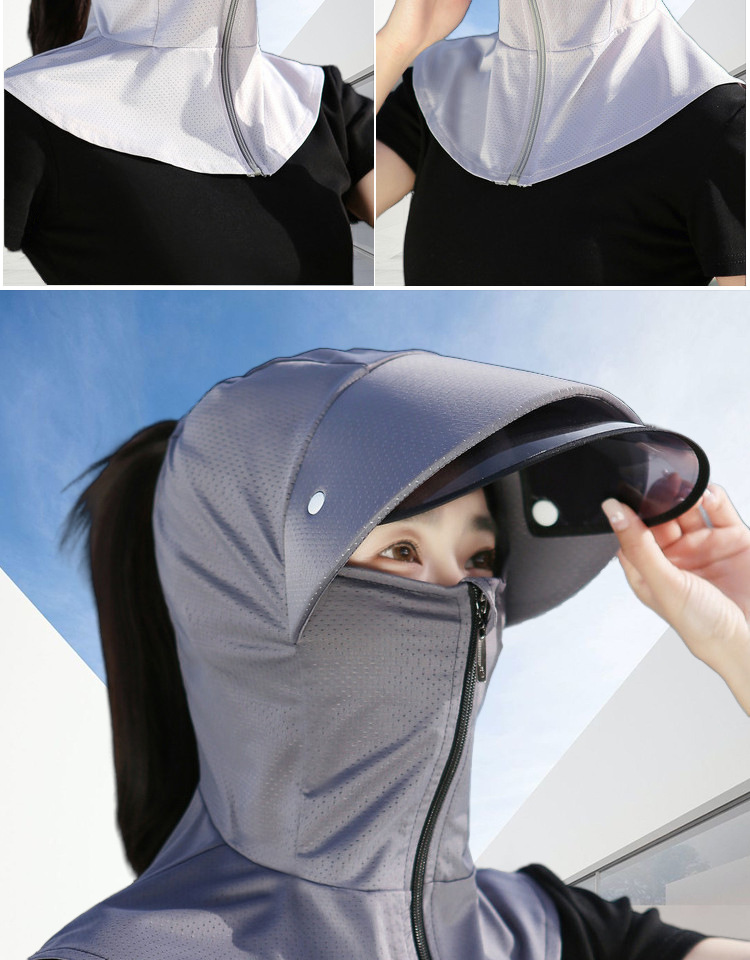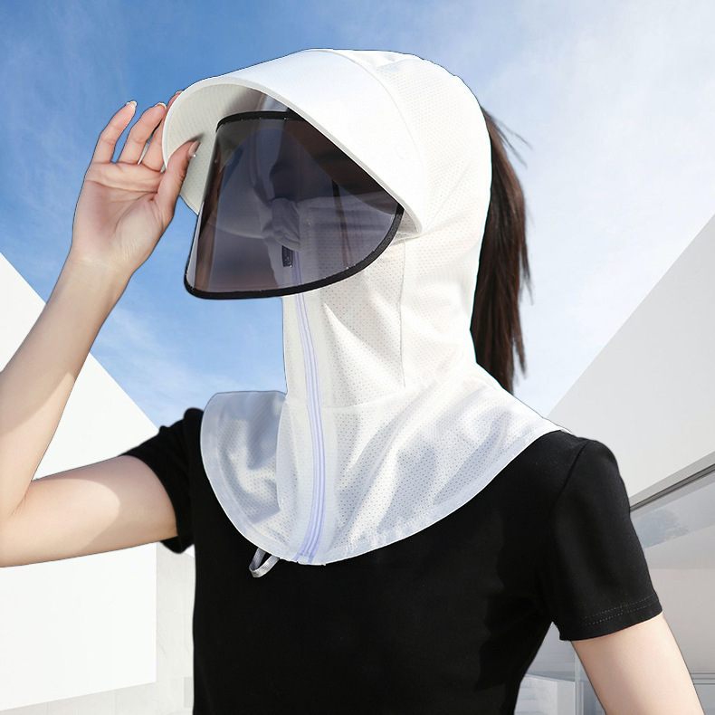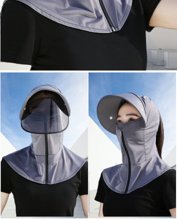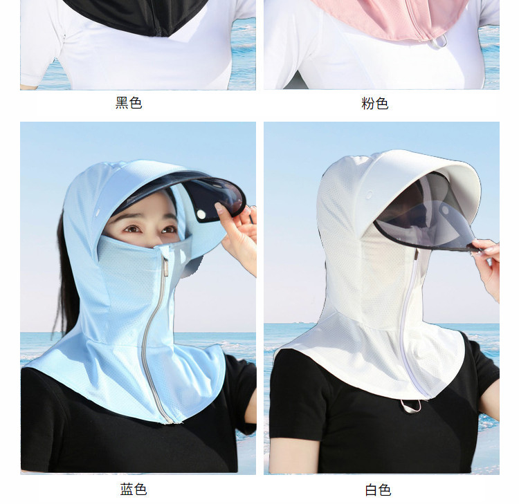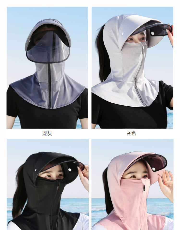 夏季新款防晒帽防紫外线遮脸面罩纯色骑车遮阳帽子透气太阳帽批发