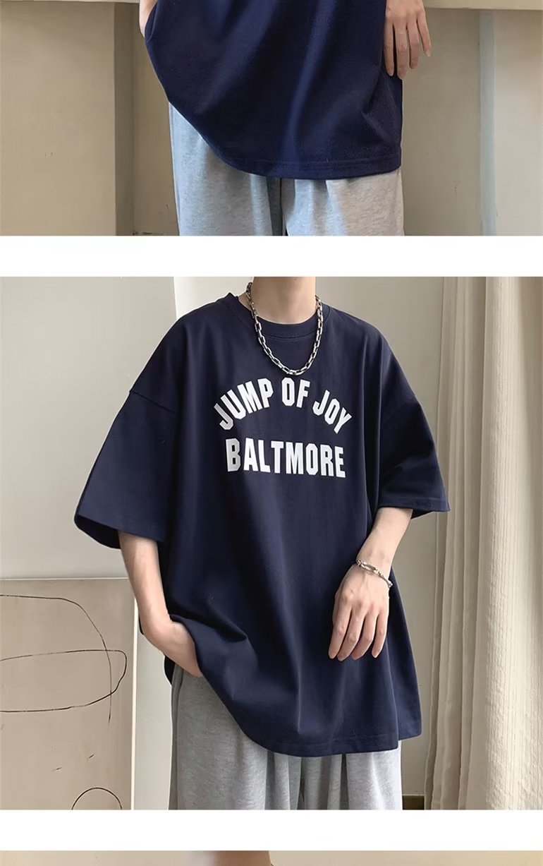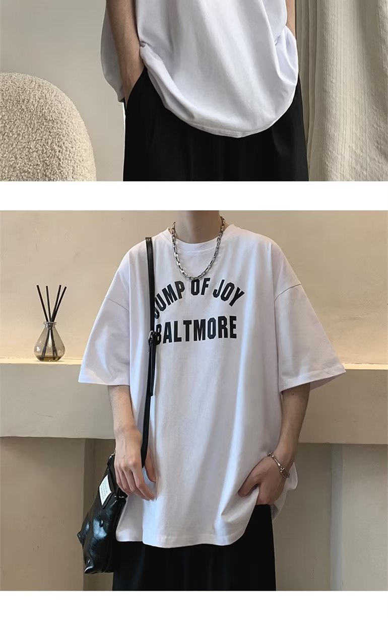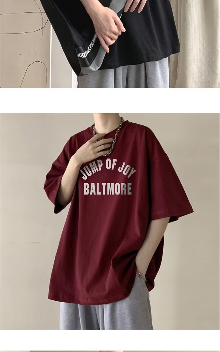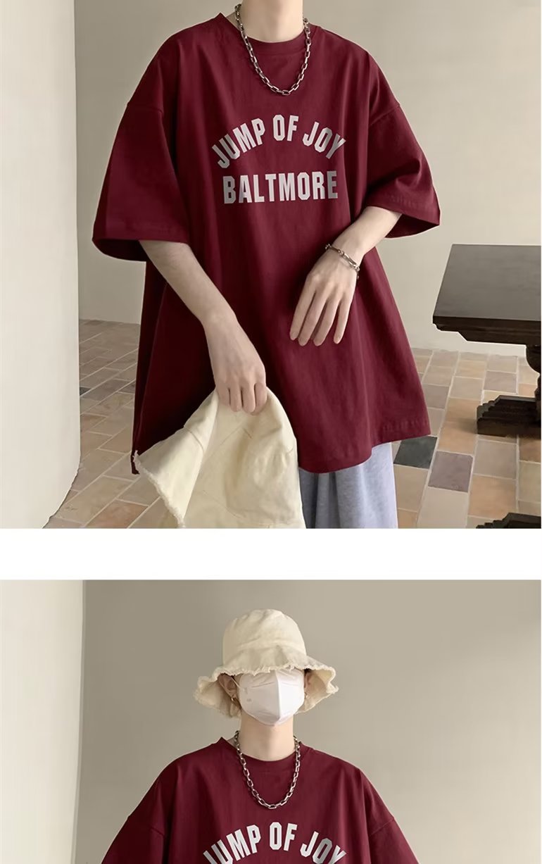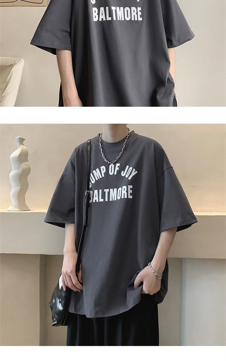 夏季短袖t恤男ins港风潮牌宽松复古圆领上衣潮流半袖休闲高街体恤