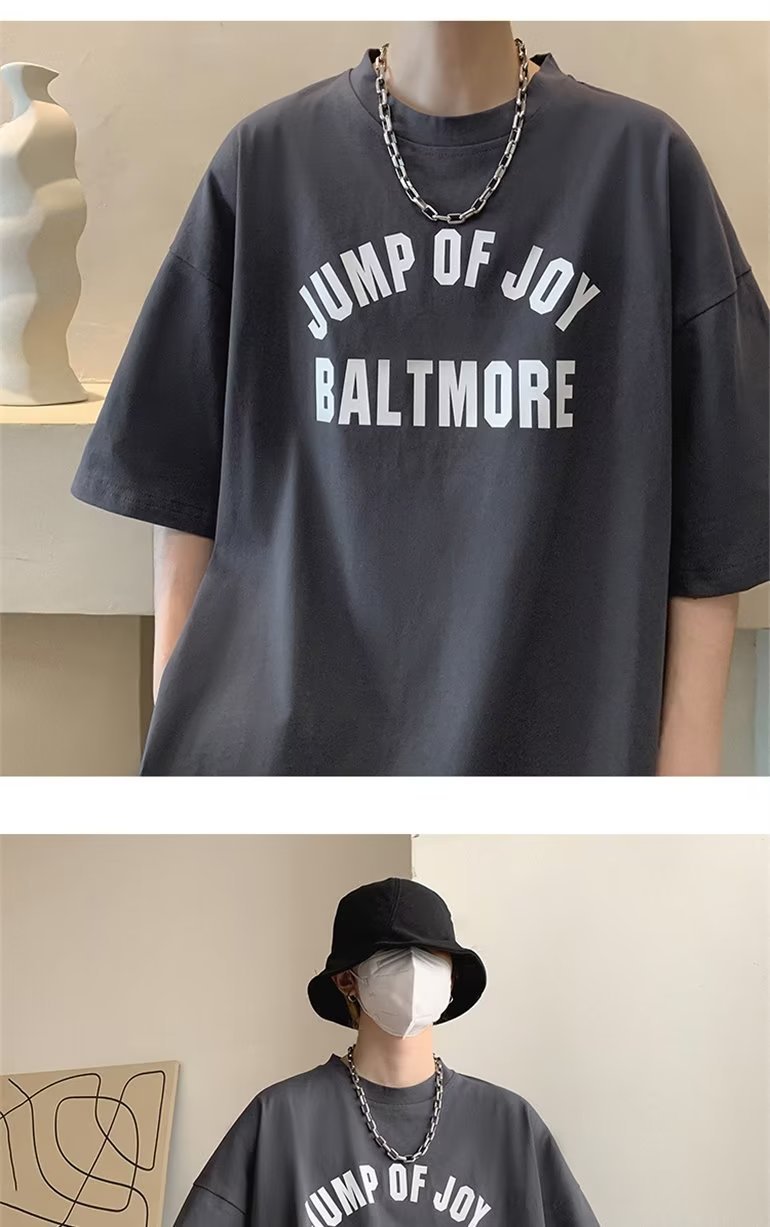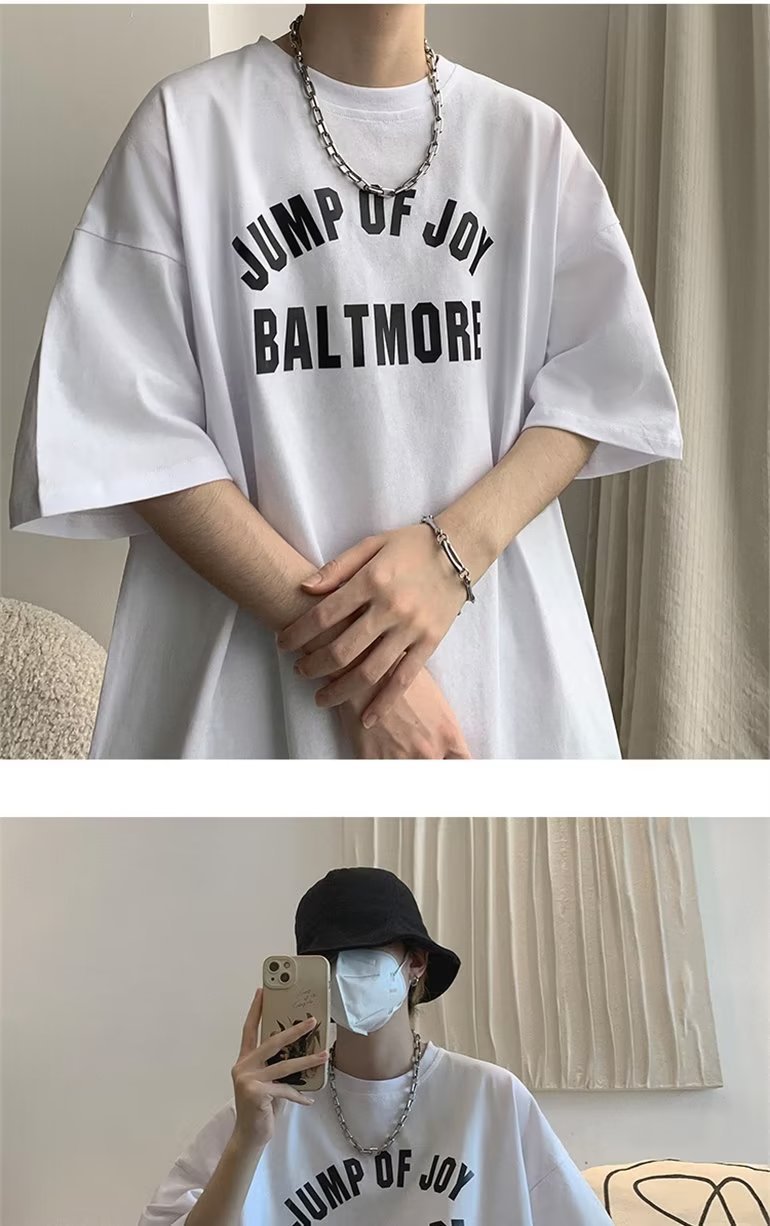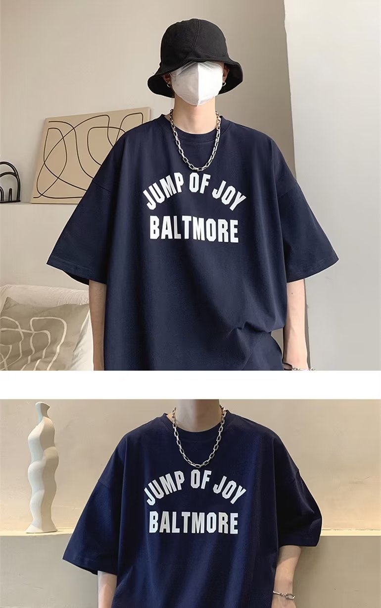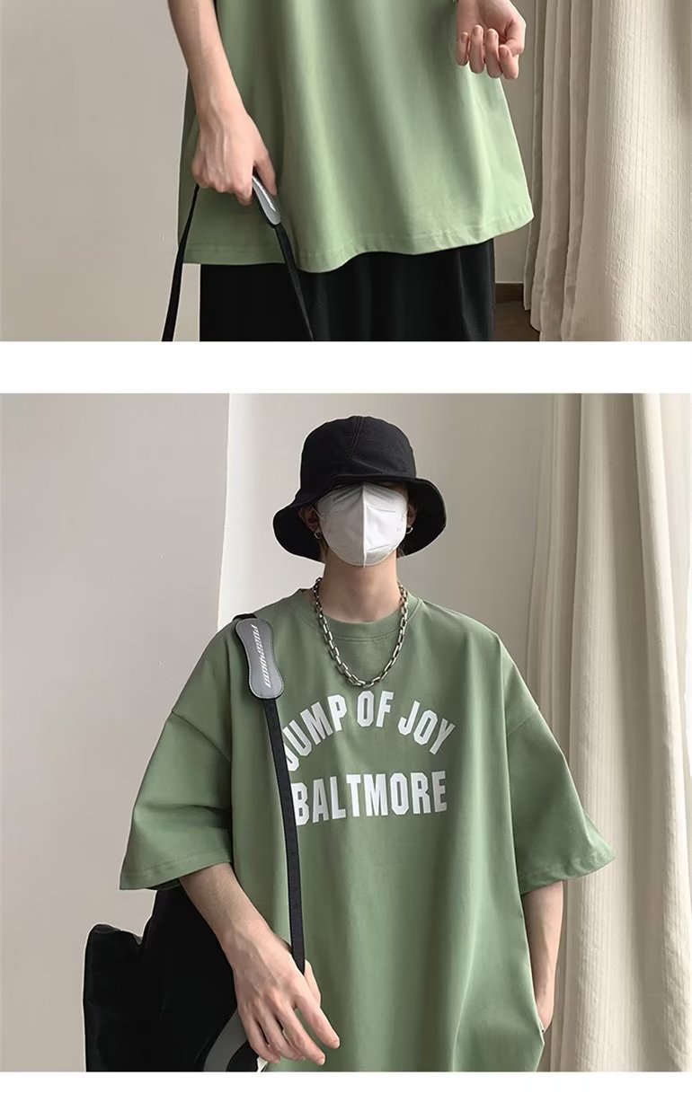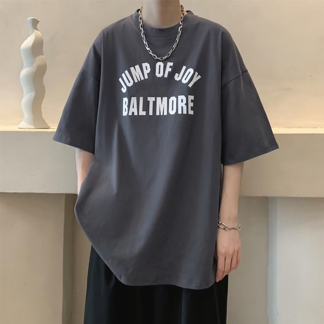 夏季短袖t恤男ins港风潮牌宽松复古圆领上衣潮流半袖休闲高街体恤