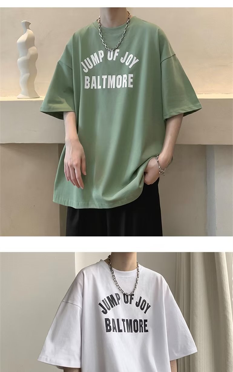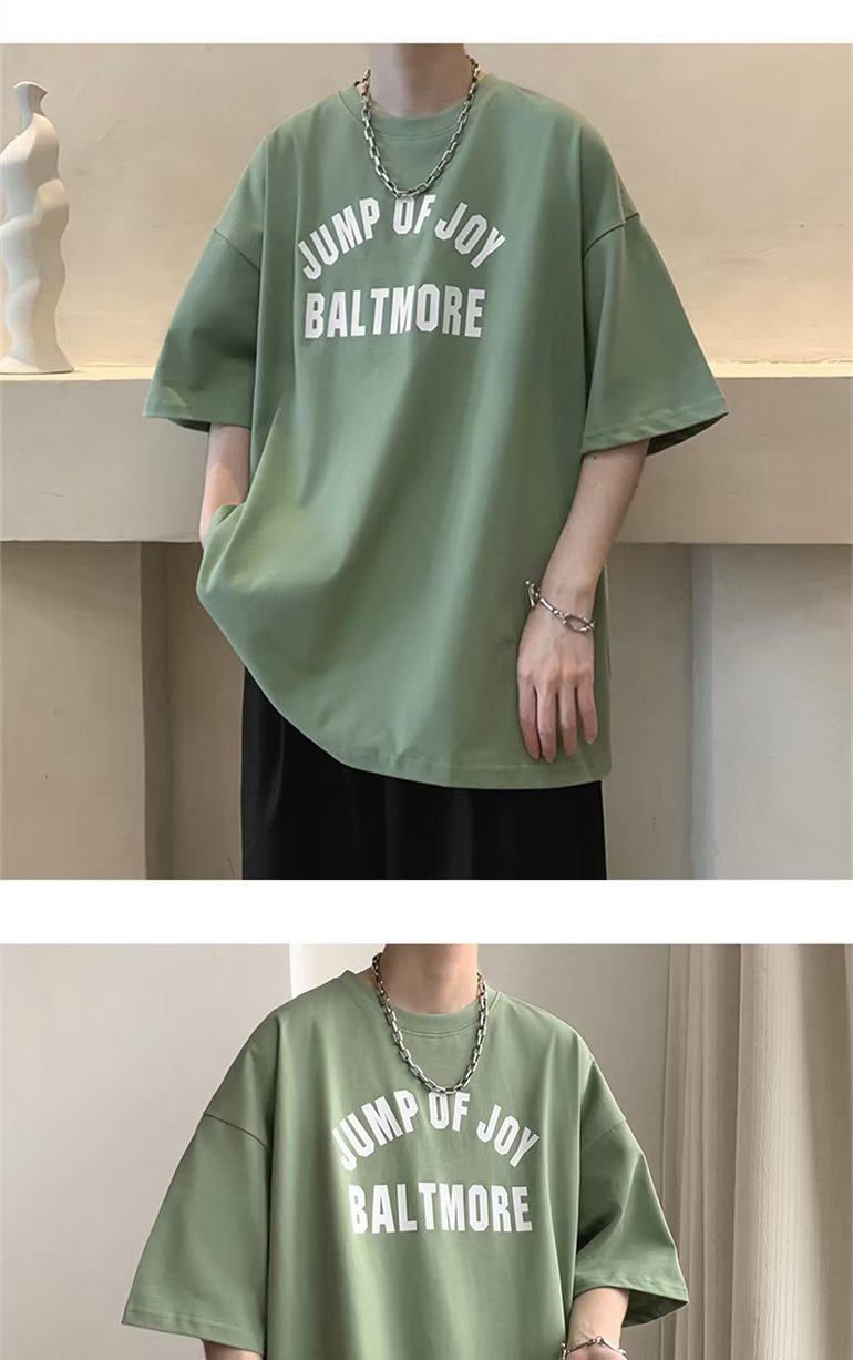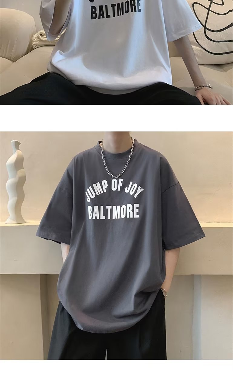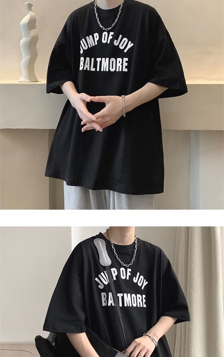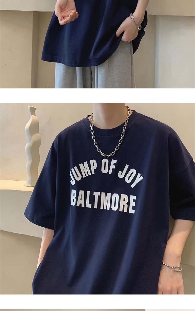 夏季短袖t恤男ins港风潮牌宽松复古圆领上衣潮流半袖休闲高街体恤