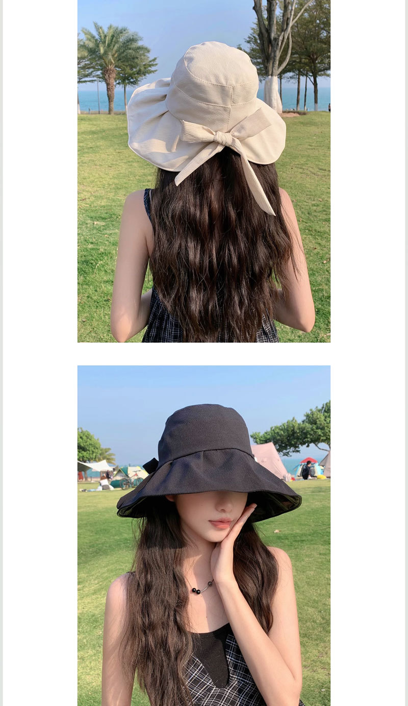 新款防晒帽女士夏季黑胶防紫外线蝴蝶结渔夫帽遮脸大帽檐遮阳帽子