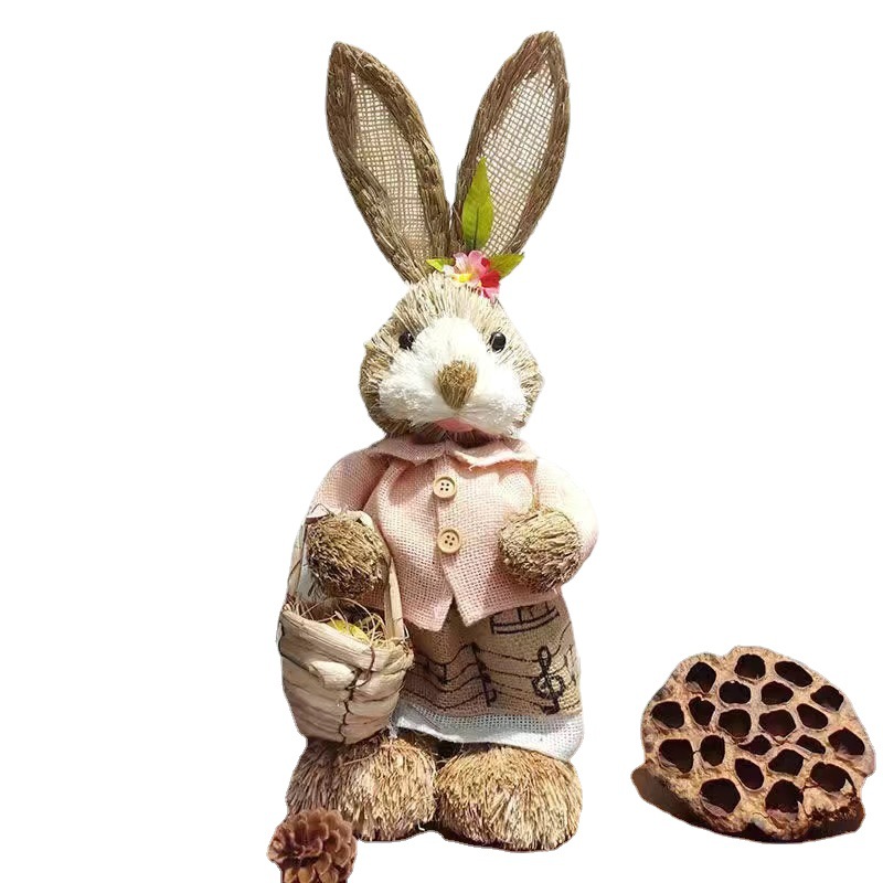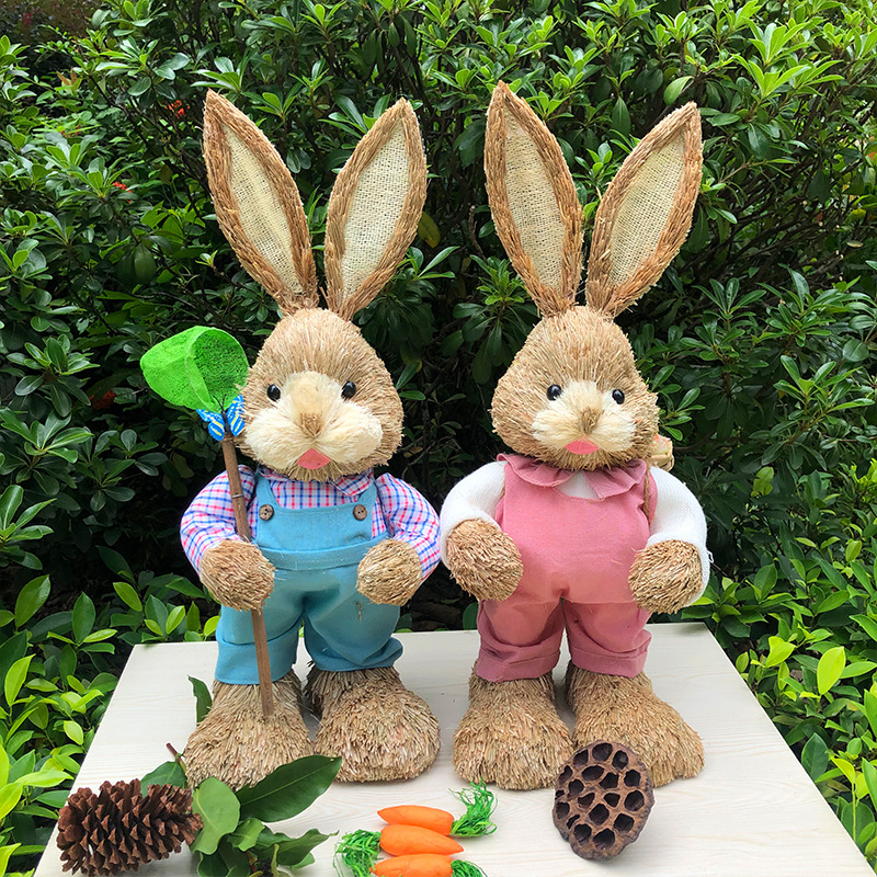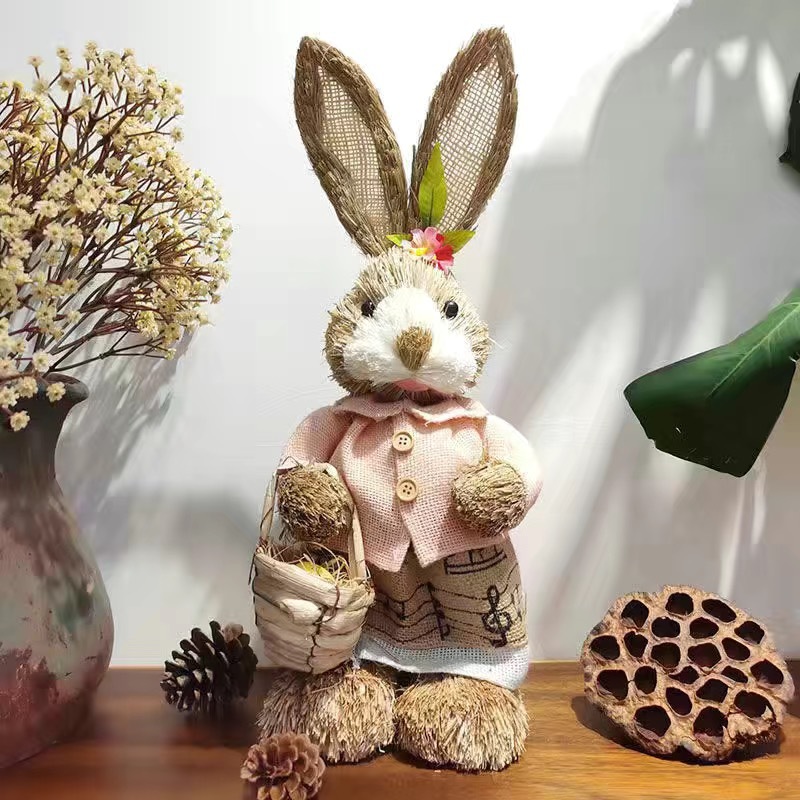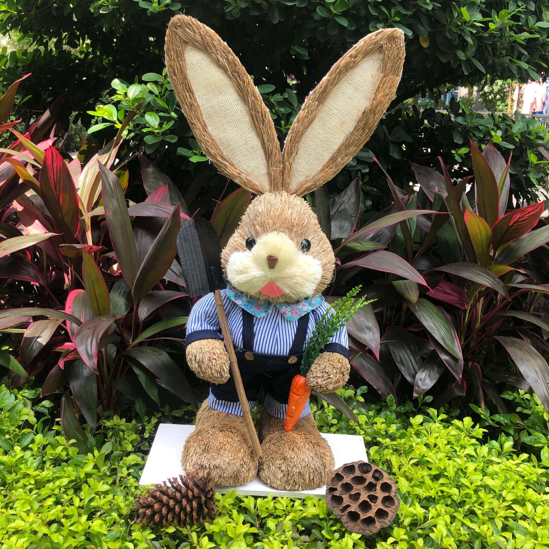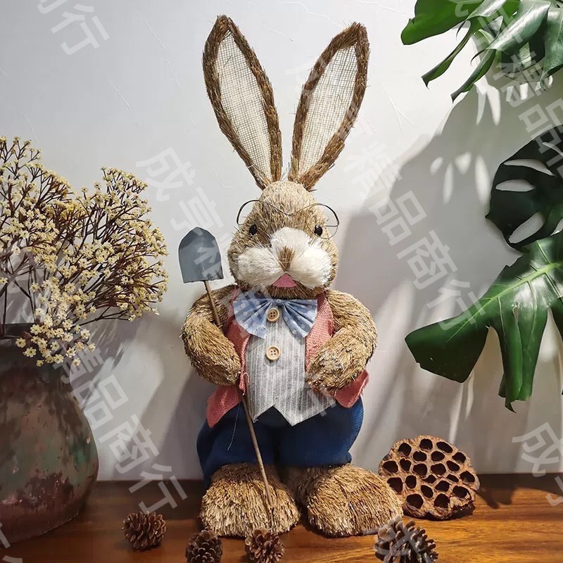【65cm草编兔】复古风可爱家居店铺舞台装饰摆件拍摄道具景区礼物