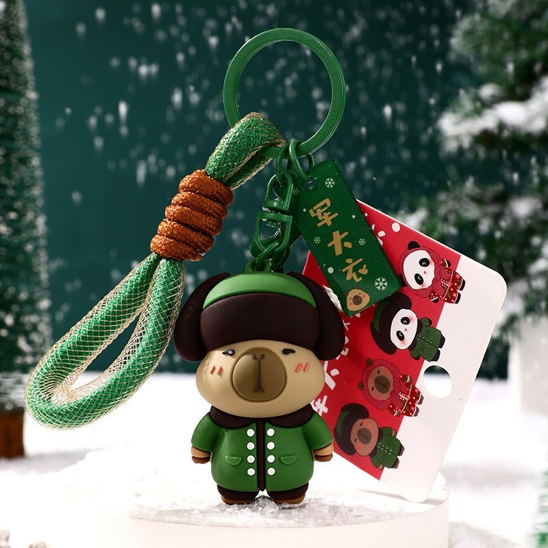 创意毛绒军大衣花棉袄卡皮巴拉挂件公仔可爱卡通汽车钥匙扣小礼品