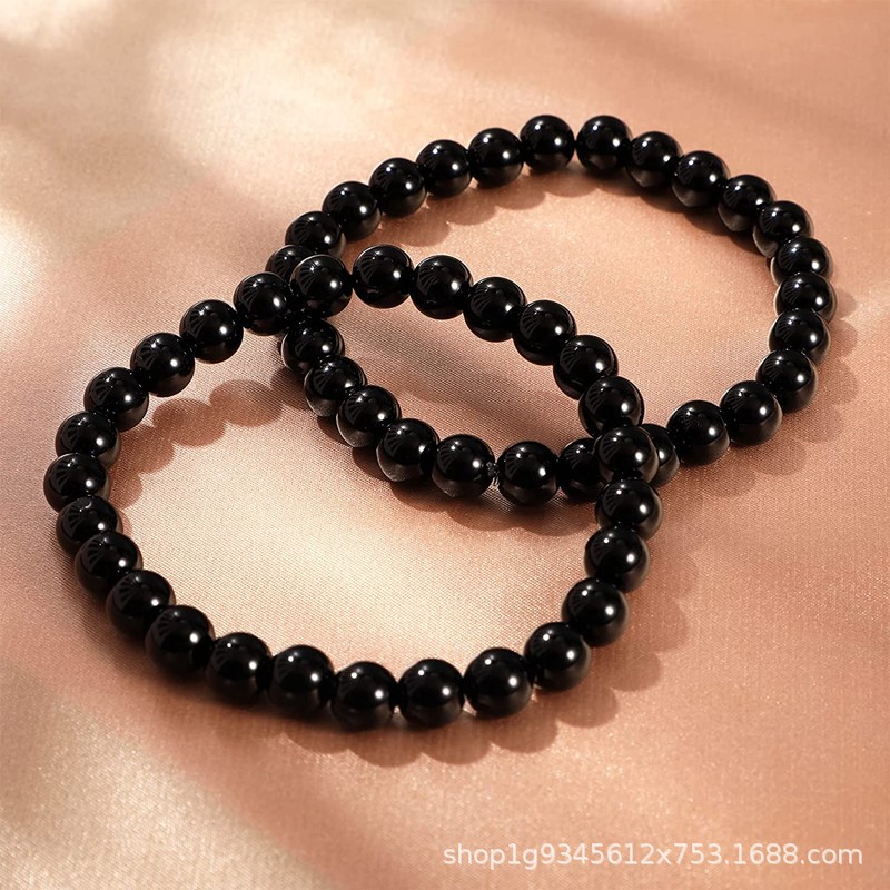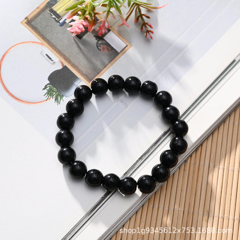 A级圆珠仿黑曜石手链佛珠手串时尚简约首饰1元以内旅游景区直播礼