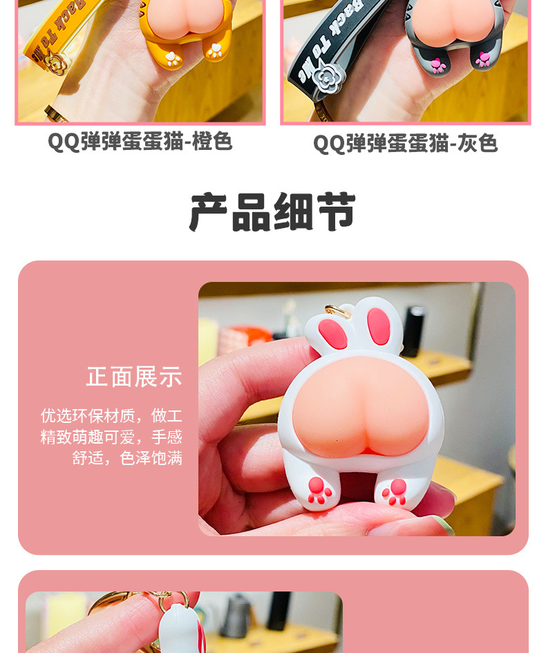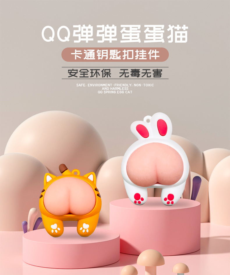 QQ弹弹蛋蛋猫钥匙扣创意个性情侣包包可爱软胶解压小公仔挂件批发