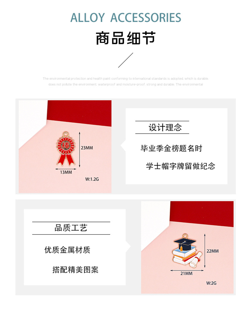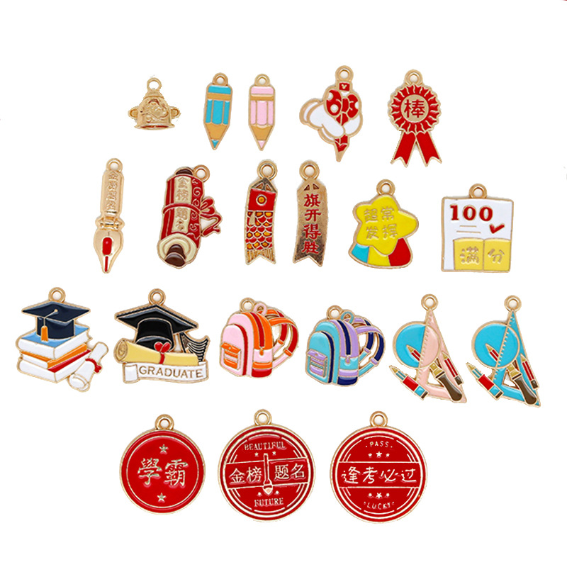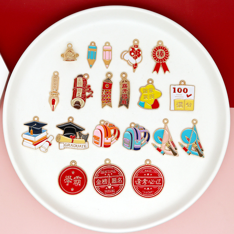 毕业季励志DIY饰品配件学士帽金榜题名文字吊牌钥匙扣吊坠材料
