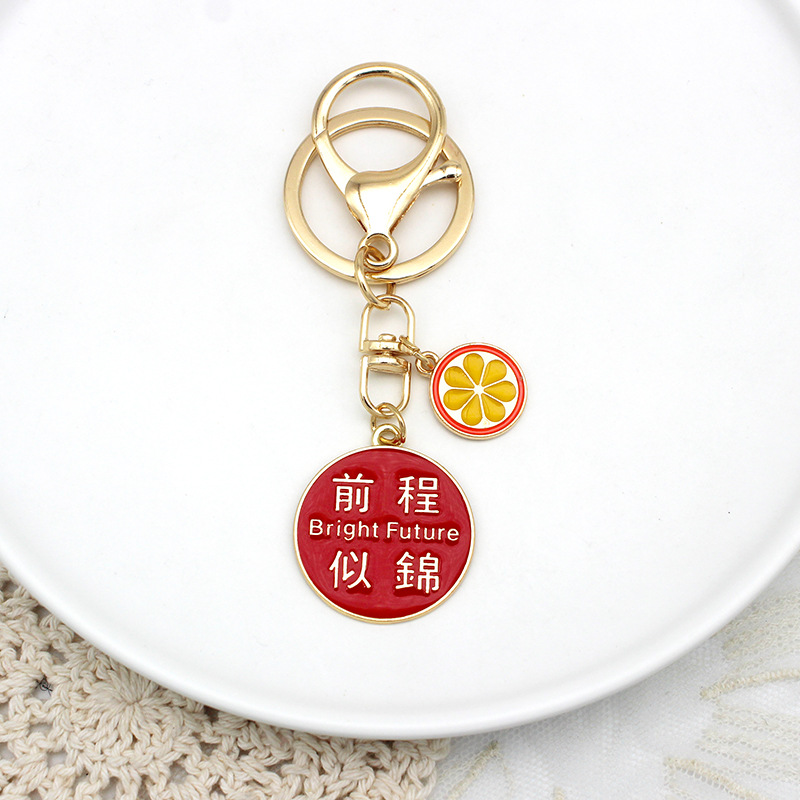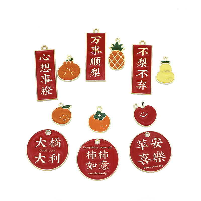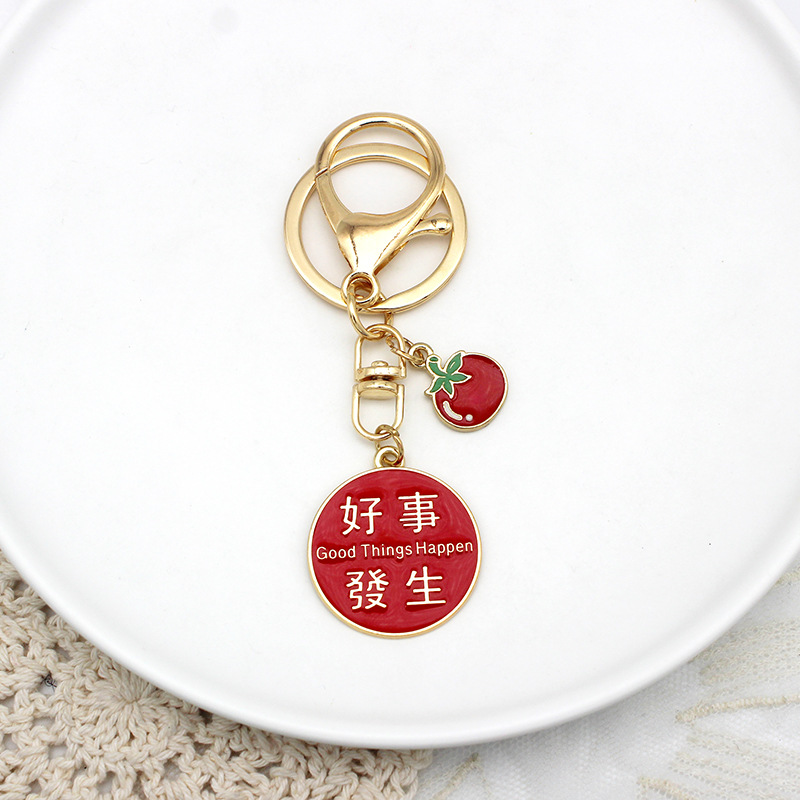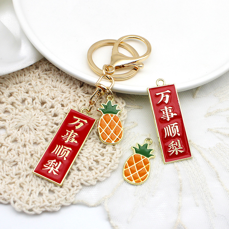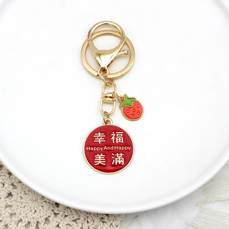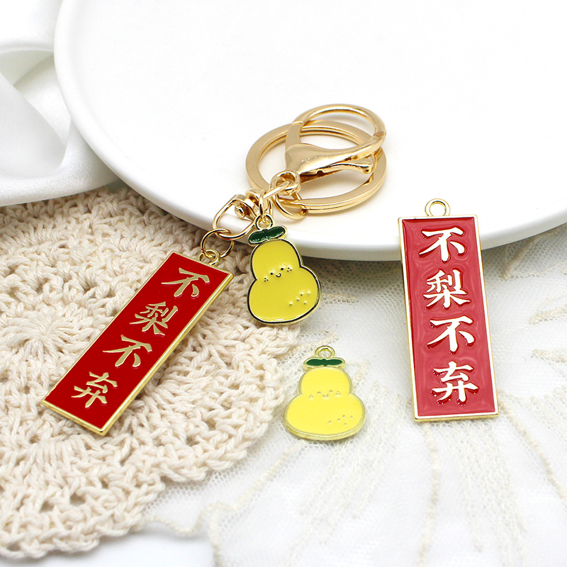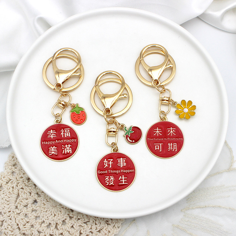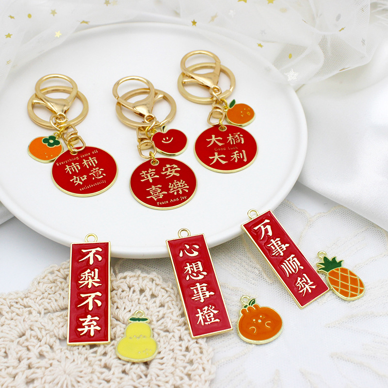 美好寓意水果祝福语字牌 DIY饰品配件合金滴油钥匙扣挂件平安喜乐
