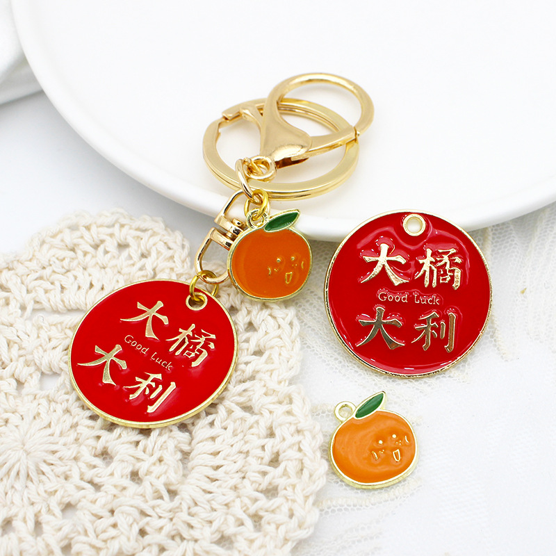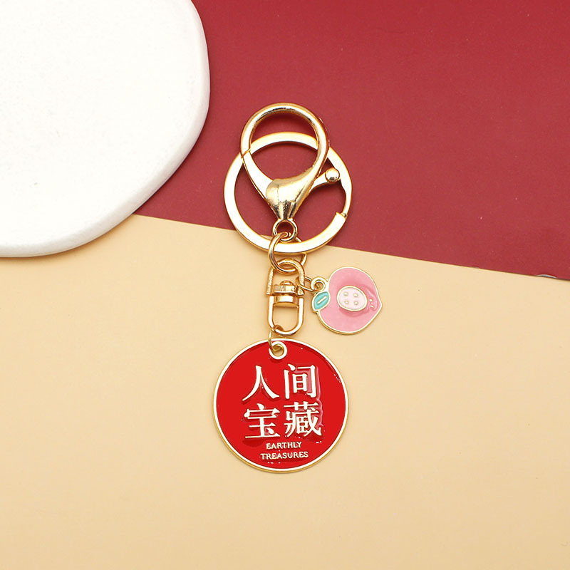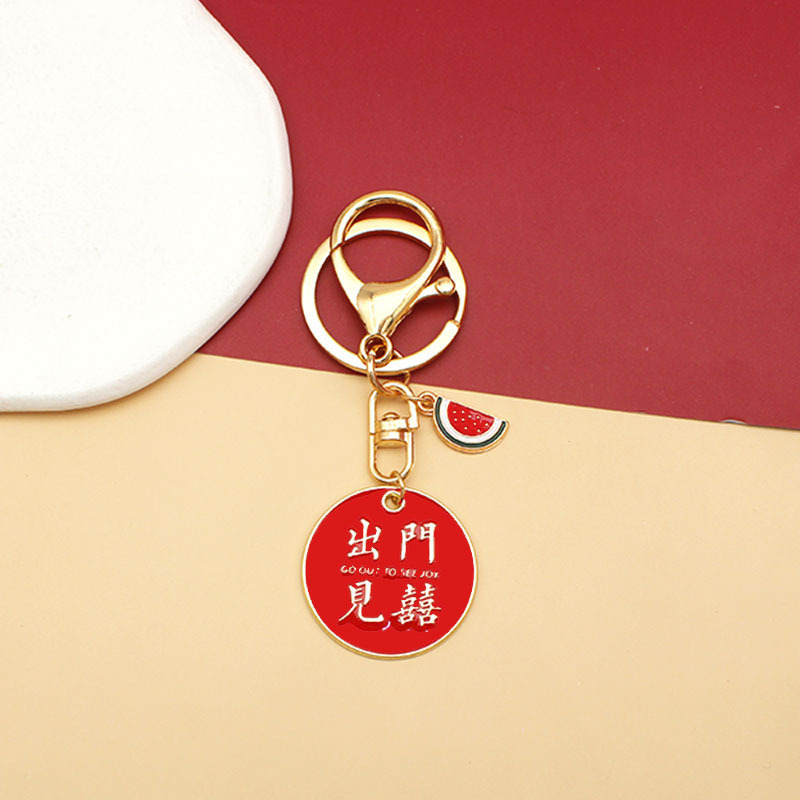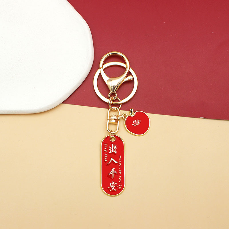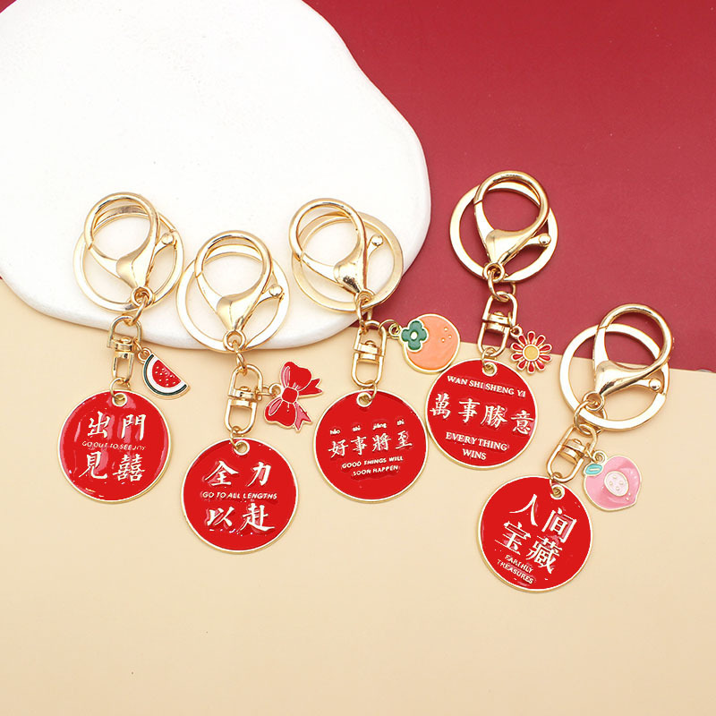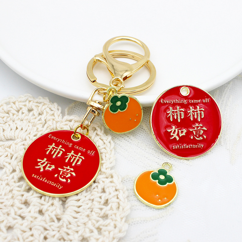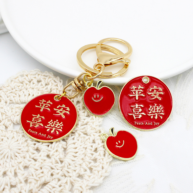 美好寓意水果祝福语字牌 DIY饰品配件合金滴油钥匙扣挂件平安喜乐