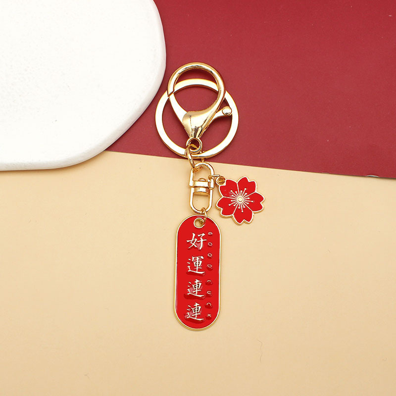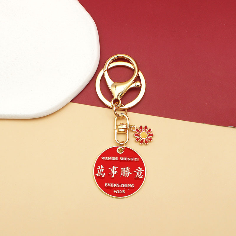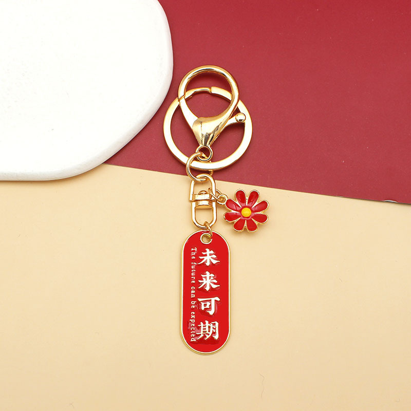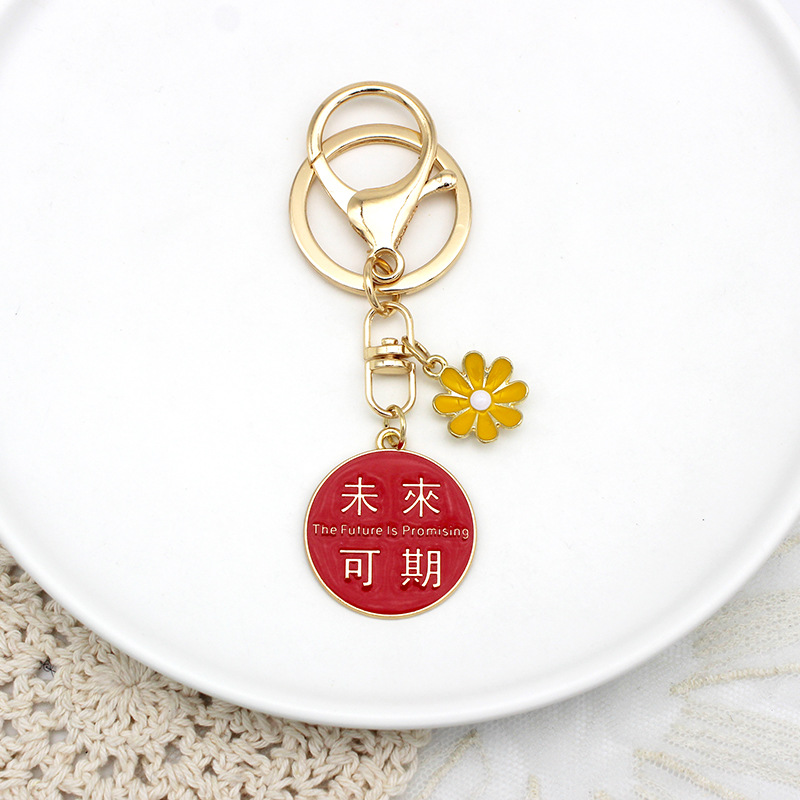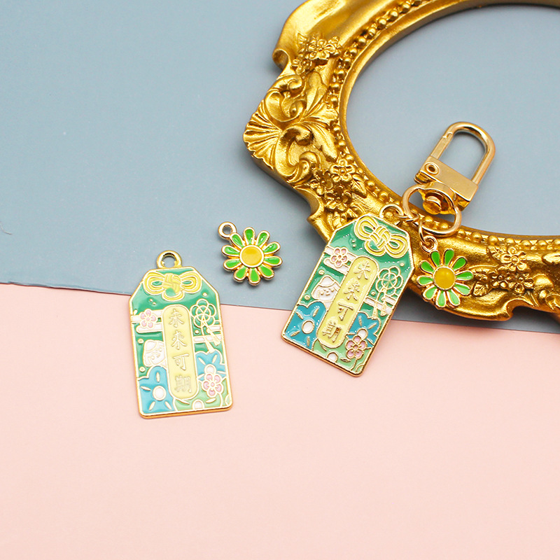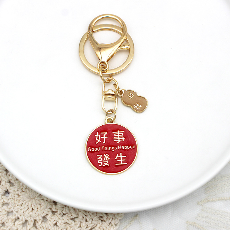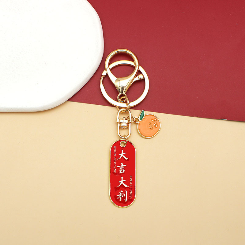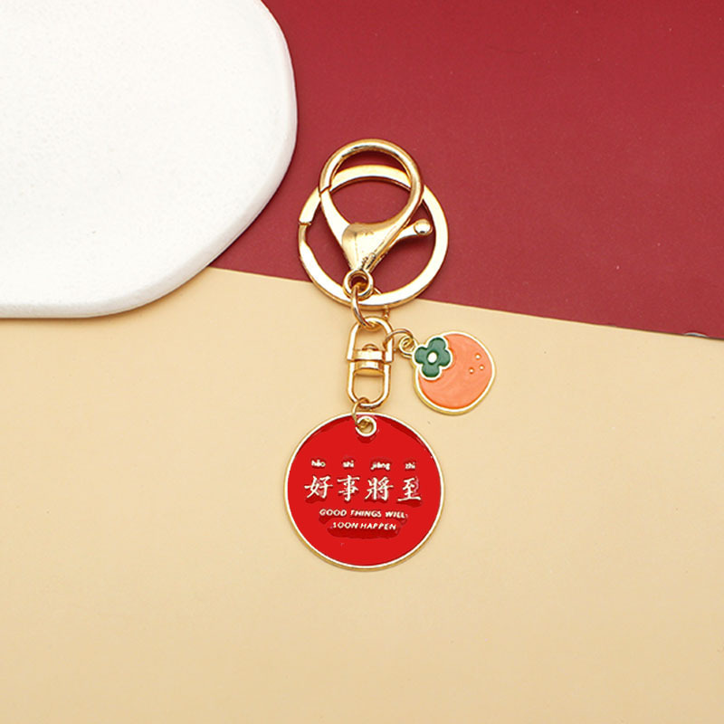 美好寓意水果祝福语字牌 DIY饰品配件合金滴油钥匙扣挂件平安喜乐