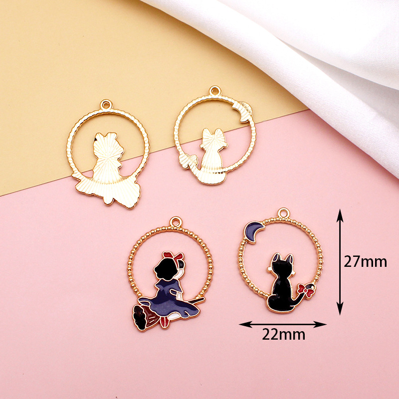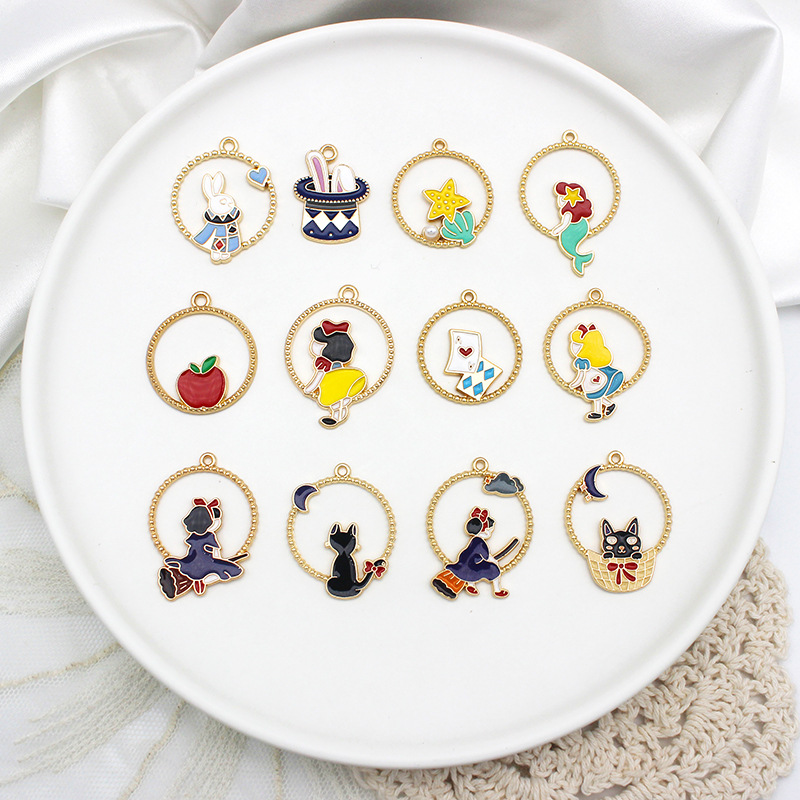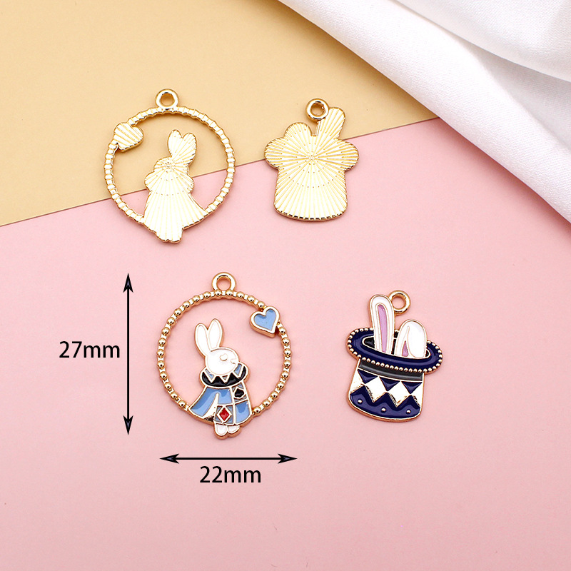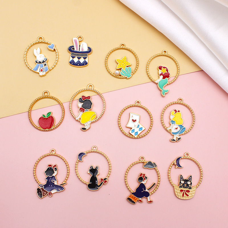 公主系列合金滴油DIY耳环材料卡通猫咪扑克魔术兔饰品配件吊坠