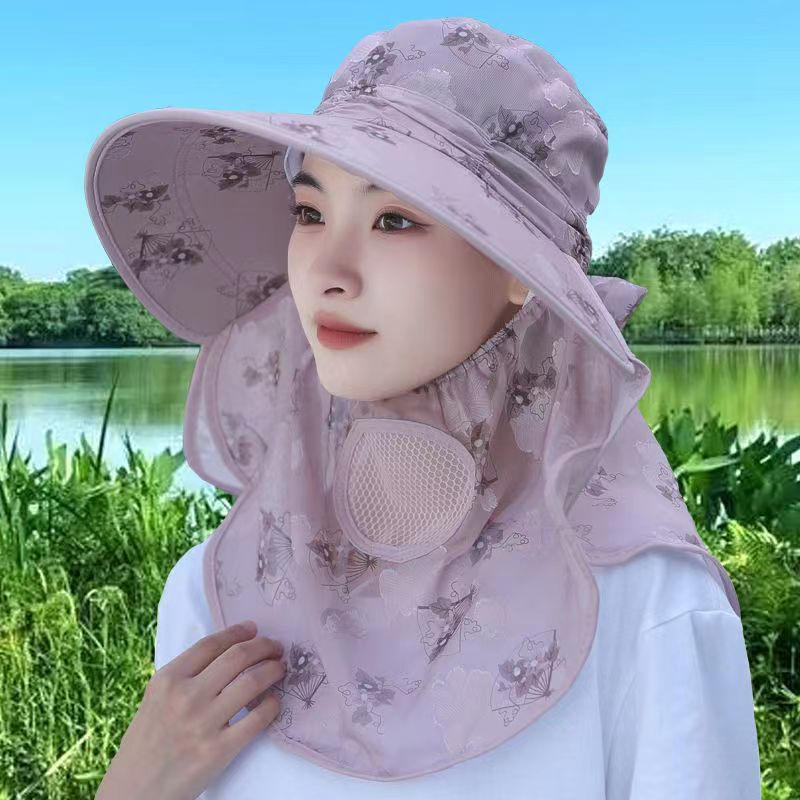 防晒帽子防晒帽防紫外线中老年帽子遮阳帽干农活雪纺采茶帽女