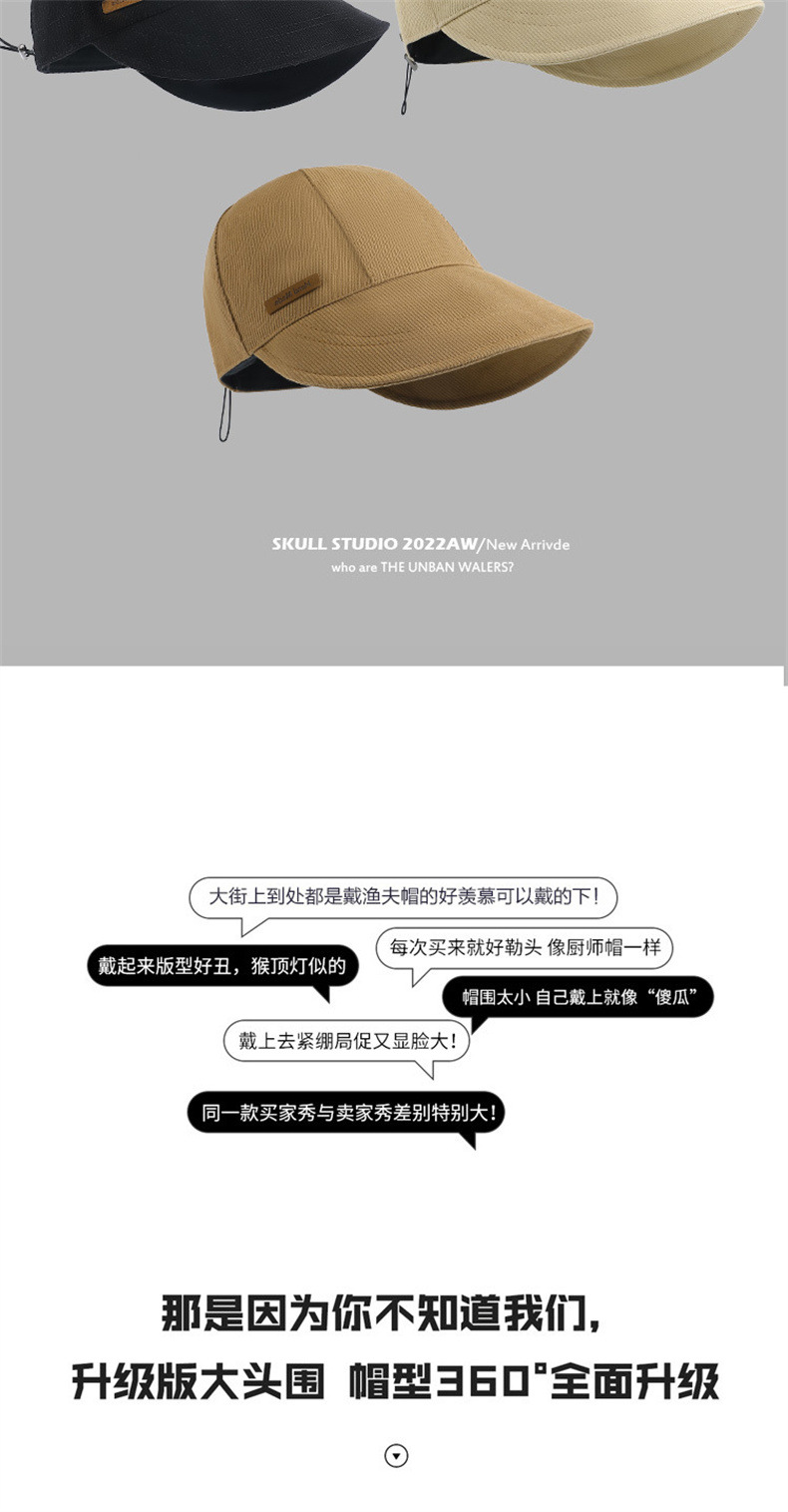 帽子女款素颜显脸小渔夫帽可调节防紫外线休闲百搭宽帽檐鸭舌帽子