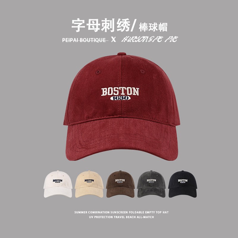跨境棒球帽复古字母刺绣户外遮阳防晒鸭舌帽男女大头围显脸小帽子