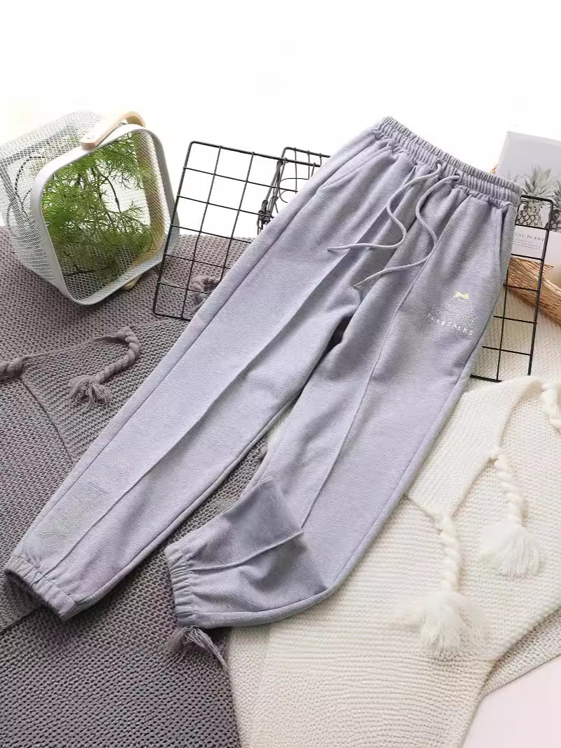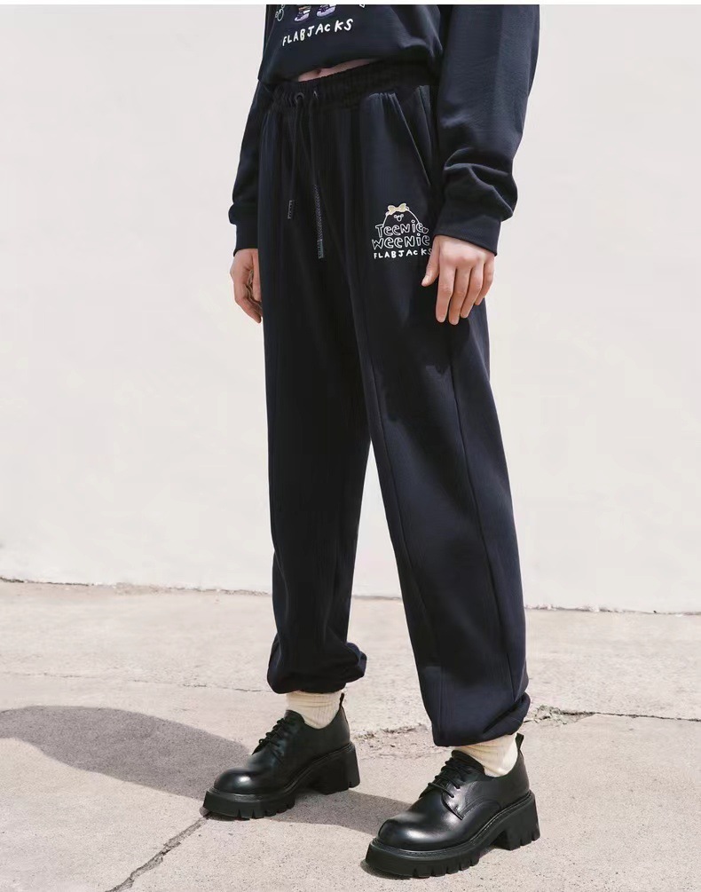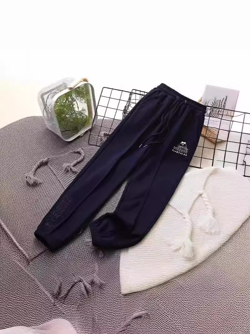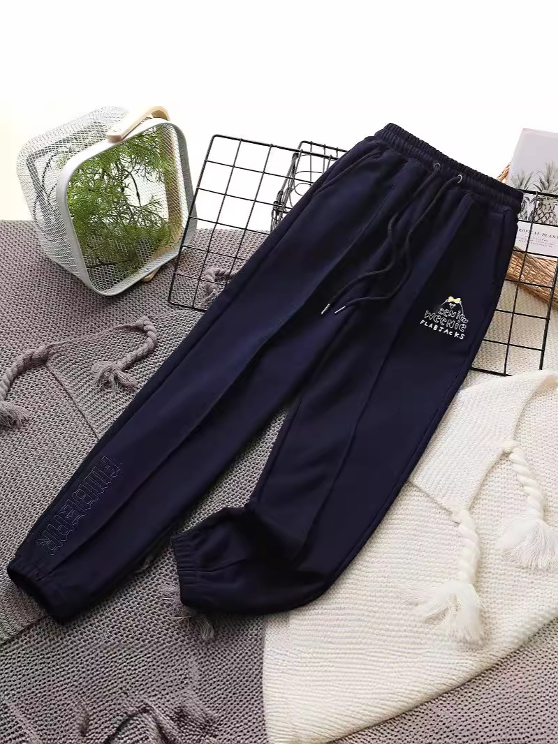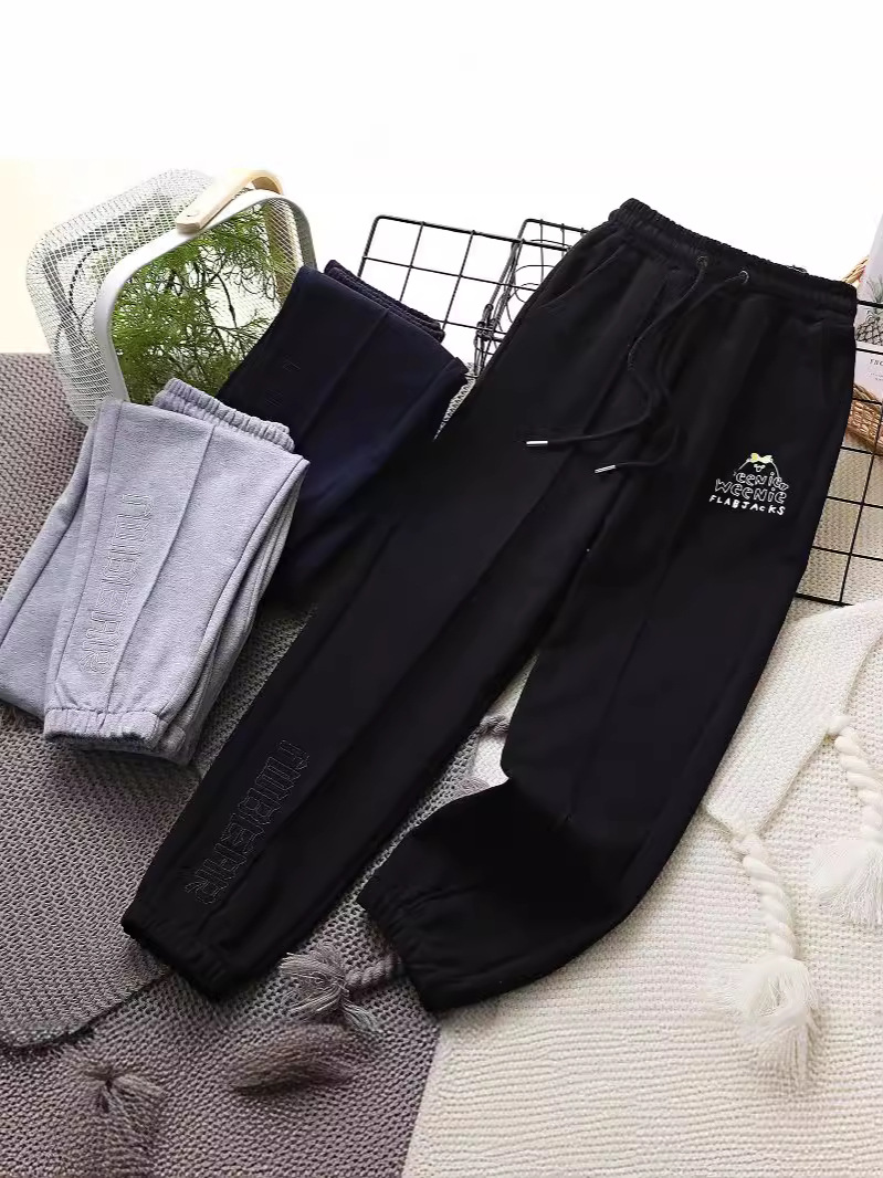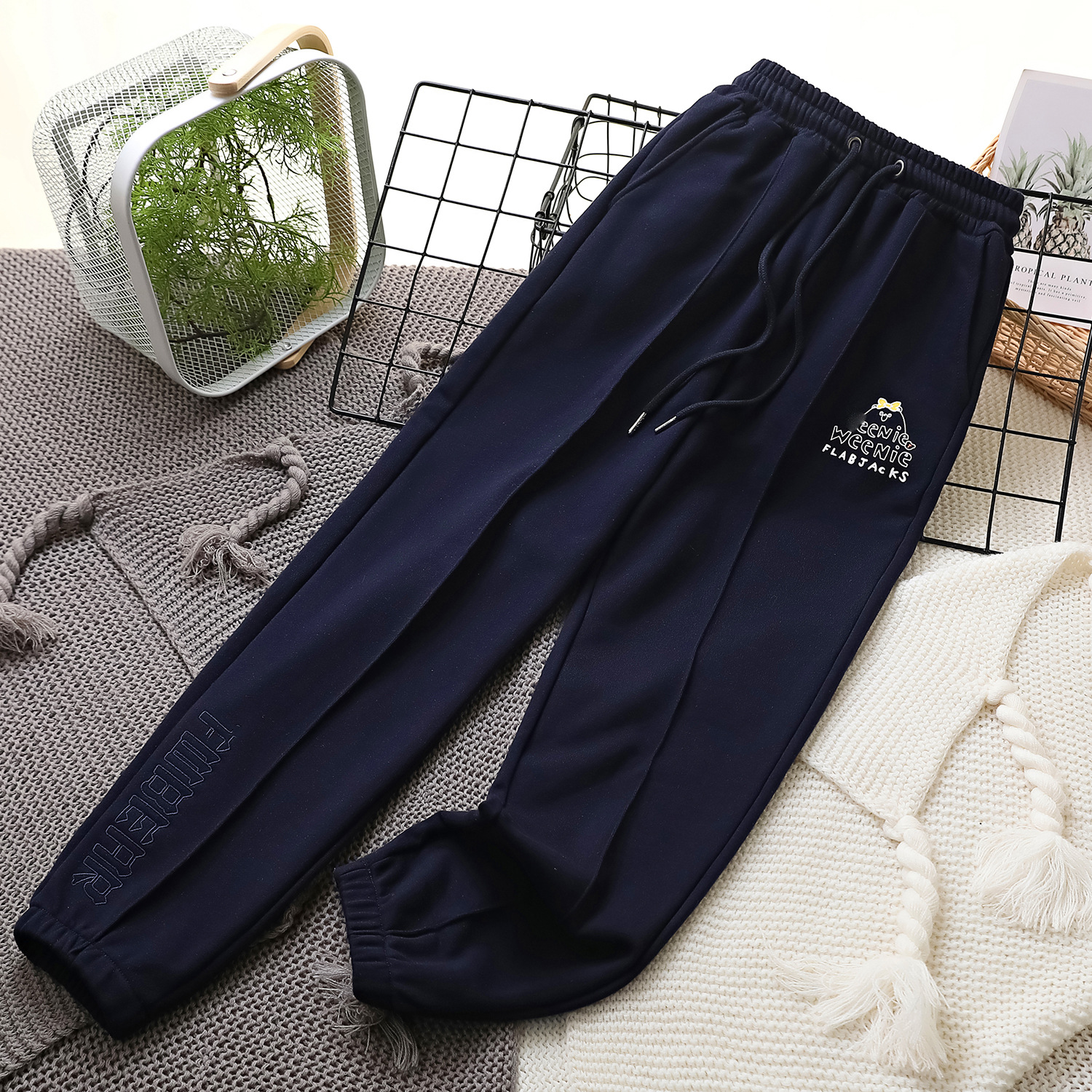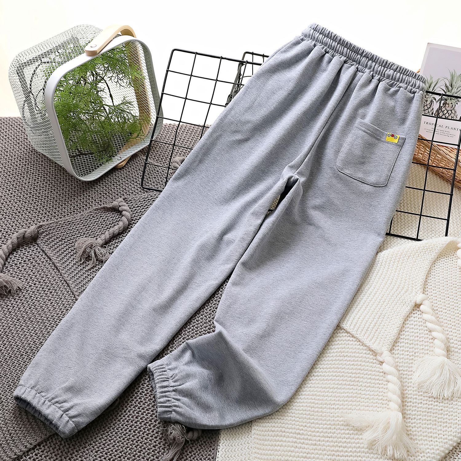 欧美款男女卫裤刺绣小狐狸百搭束腿裤松紧腰高腰裤宽松外穿打底裤