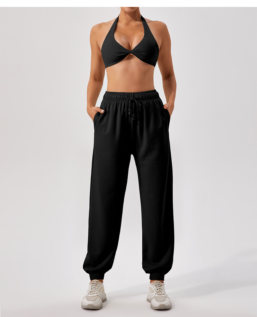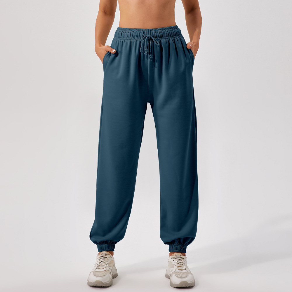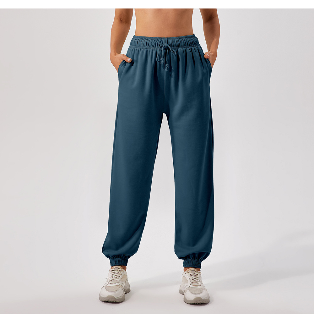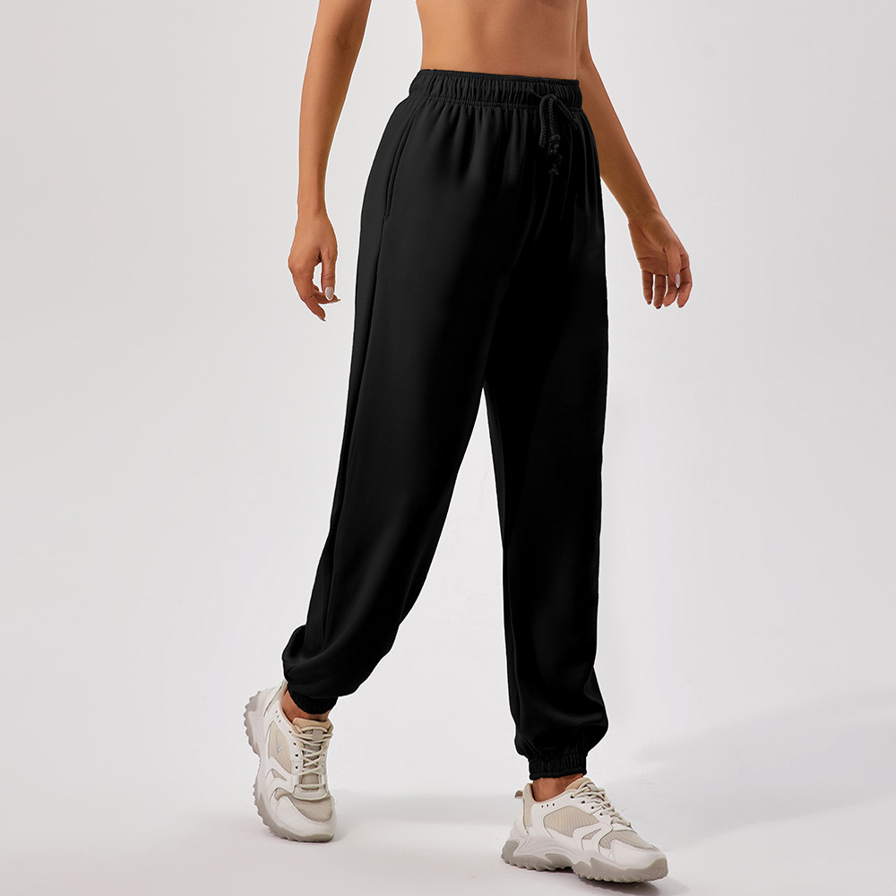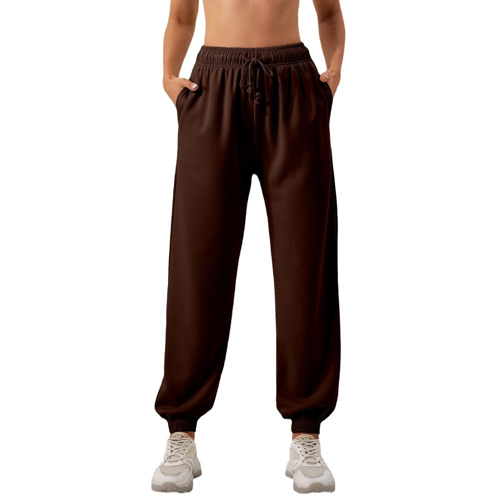 欧美跨境秋冬高腰卫裤女宽松直筒裤运动裤休闲跑步百搭外出束腿裤